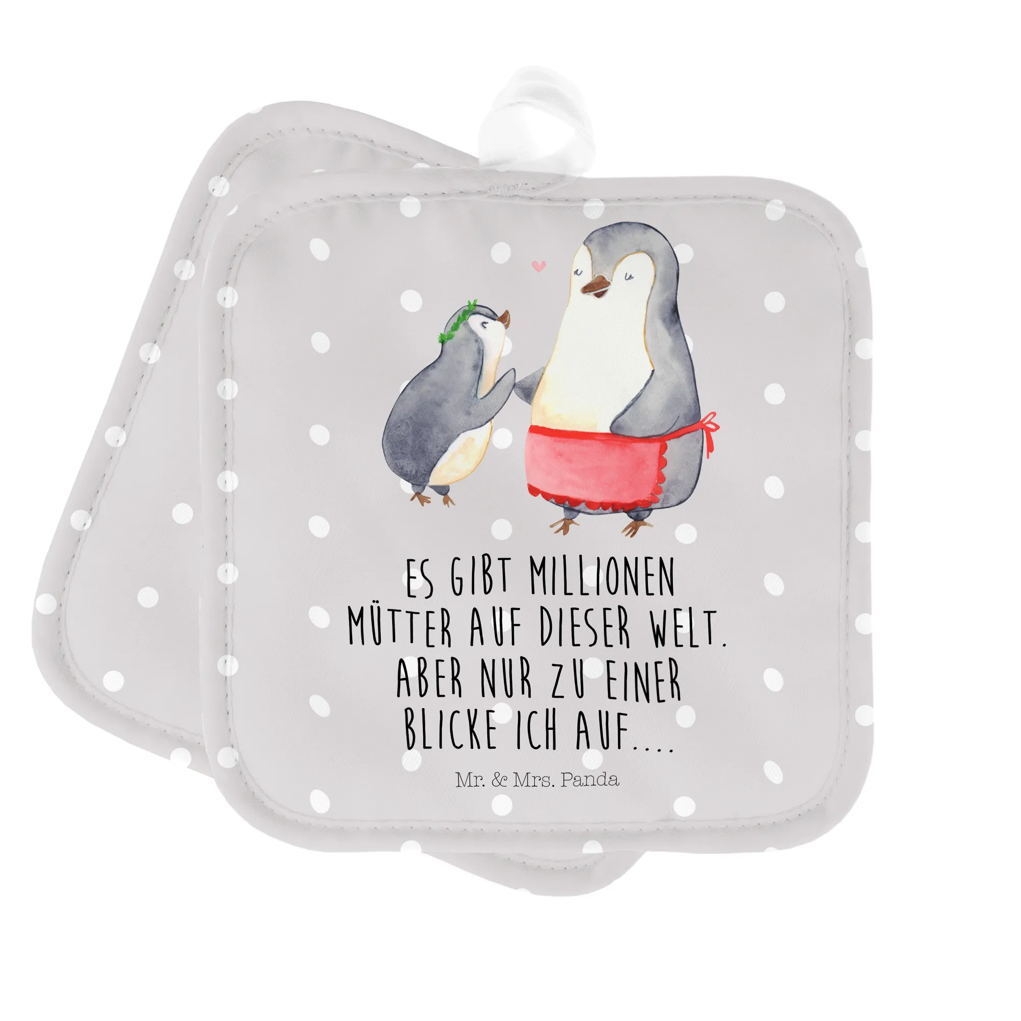 Entdecke die zauberhaften 2er Set Topflappen mit dem süßen Motiv "Pinguin mit Kind" von Mr. & Mrs. Panda! Diese hochwertigen Topflappen sind nicht nur äußerst praktisch in der Küche, sondern auch ein liebevolles Geschenk für all die Mütter, die du in deinem Leben wertschätzt. Egal ob zum Muttertag, Geburtstag oder einfach, um "Danke" zu sagen - dieses Set ist immer eine gute Idee!