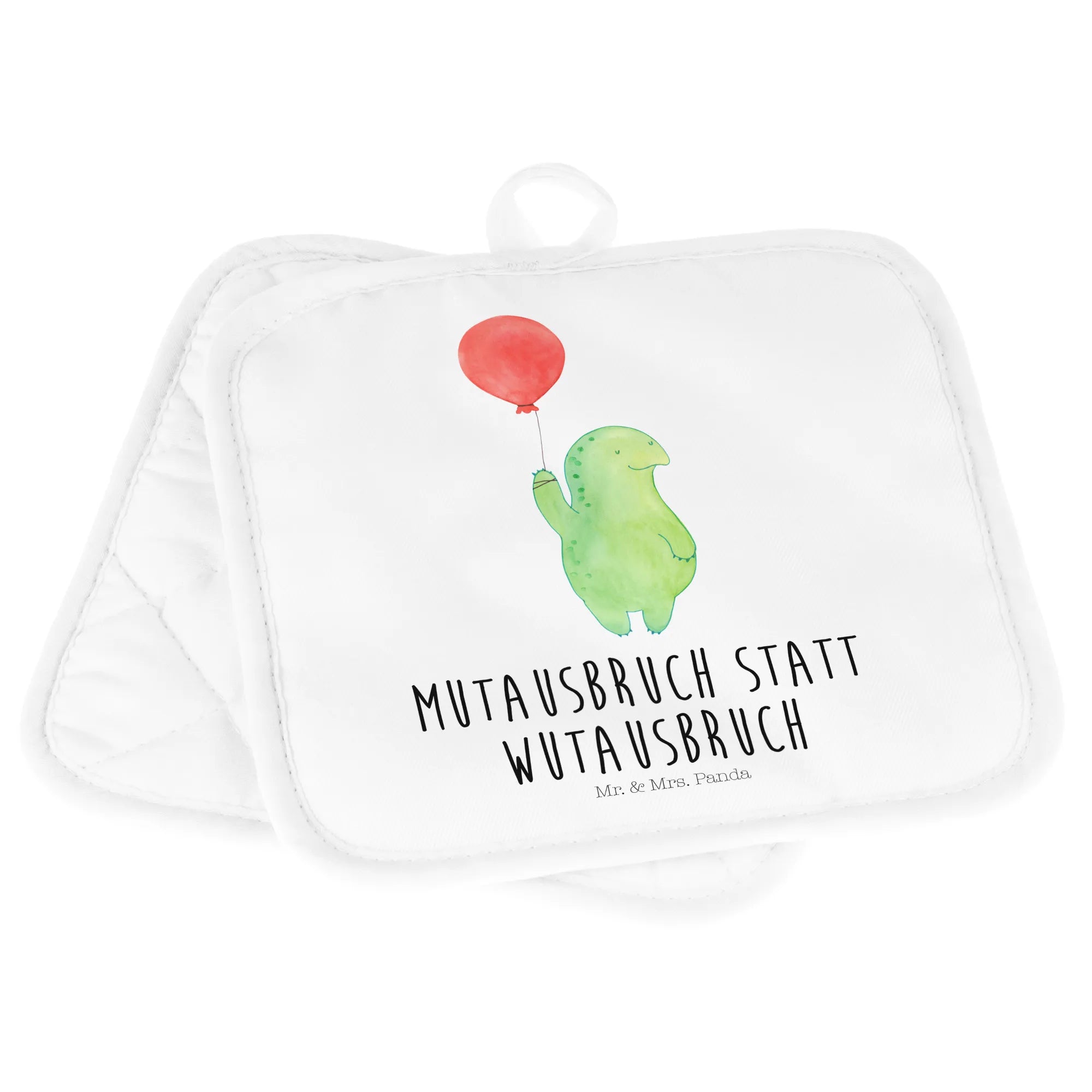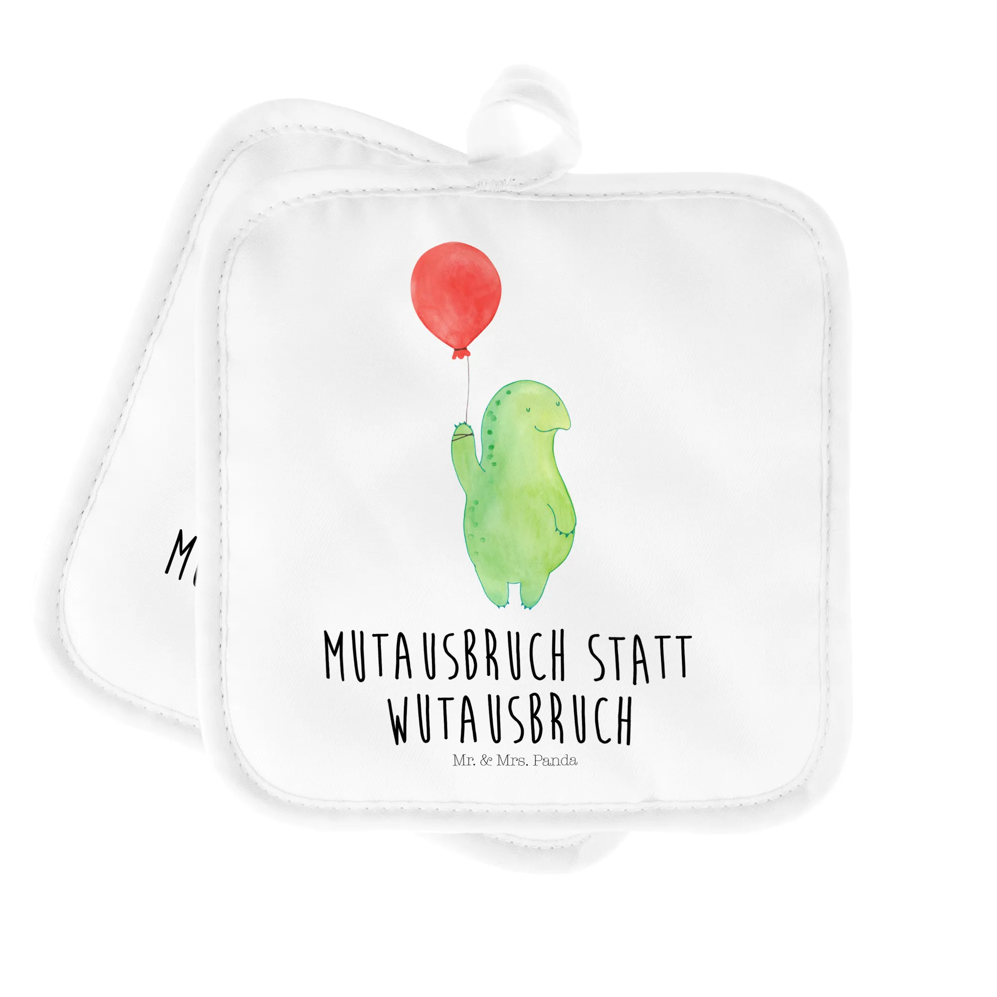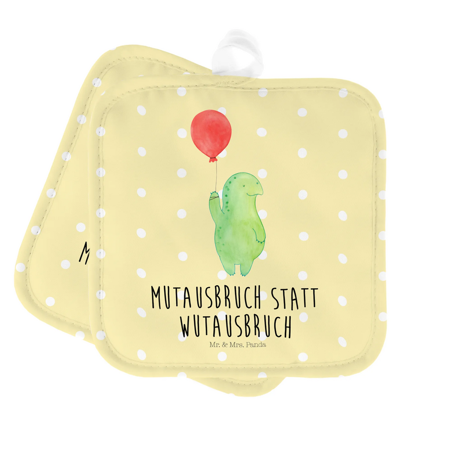 2er Set Topflappen Schildkröte Luftballon - mit Spruch - Gelb Pastell