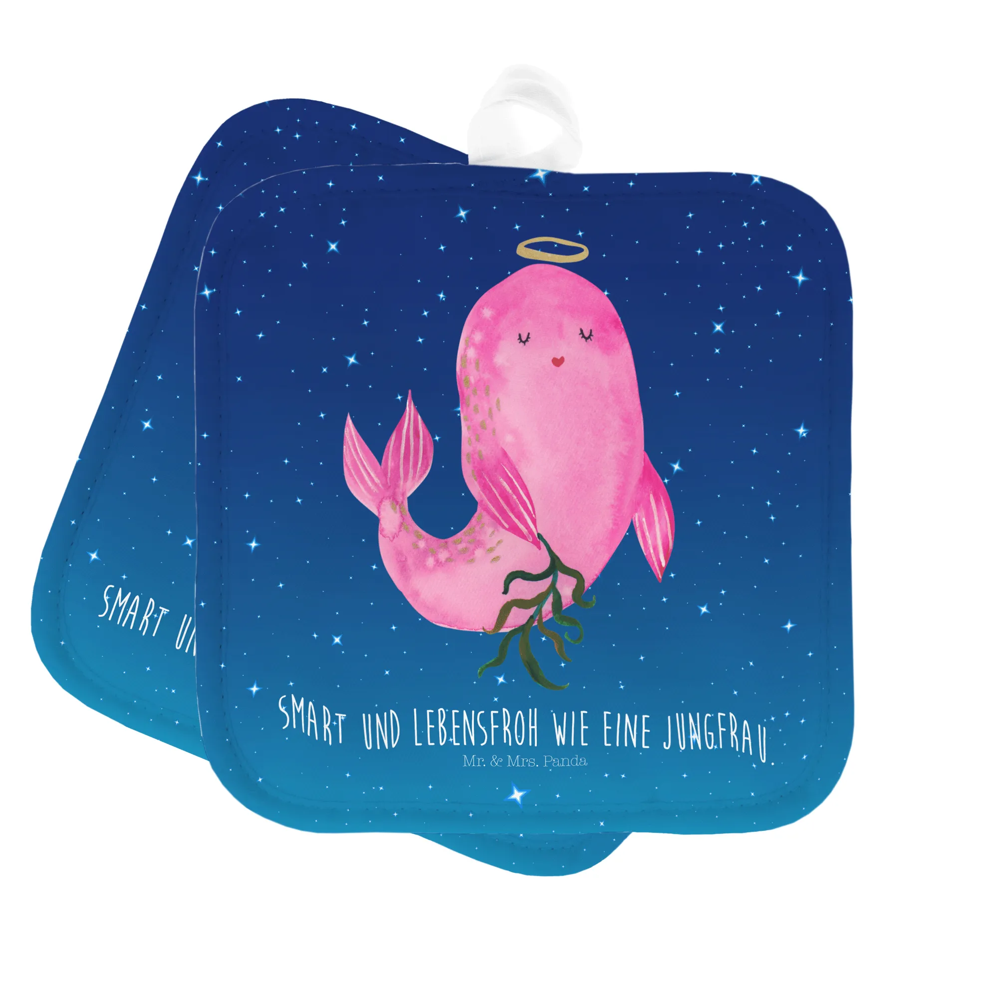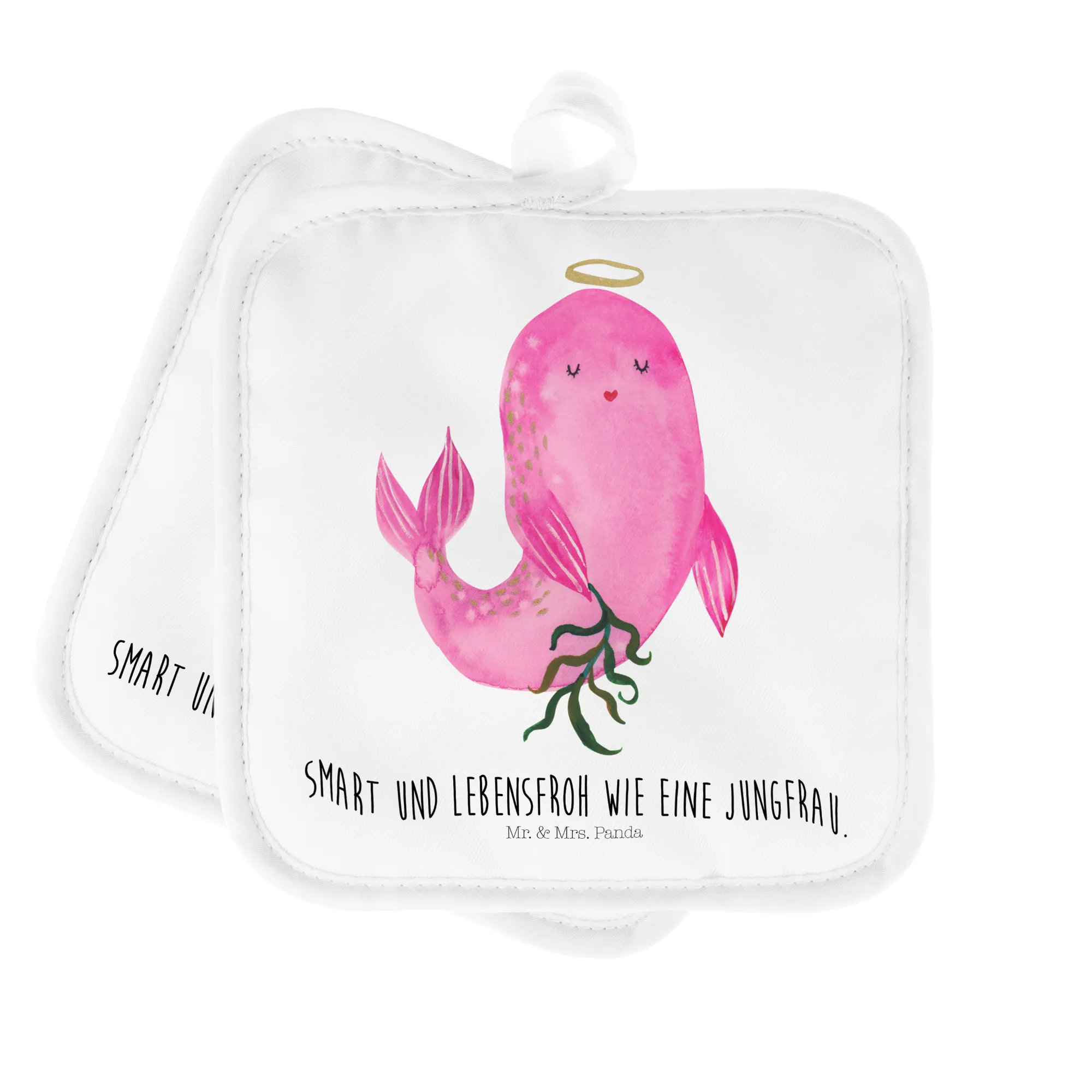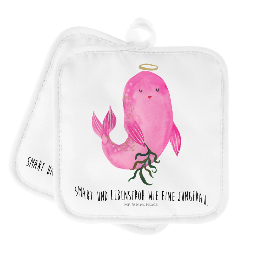 2er Set Topflappen Sternzeichen Jungfrau - mit Spruch - Weiß