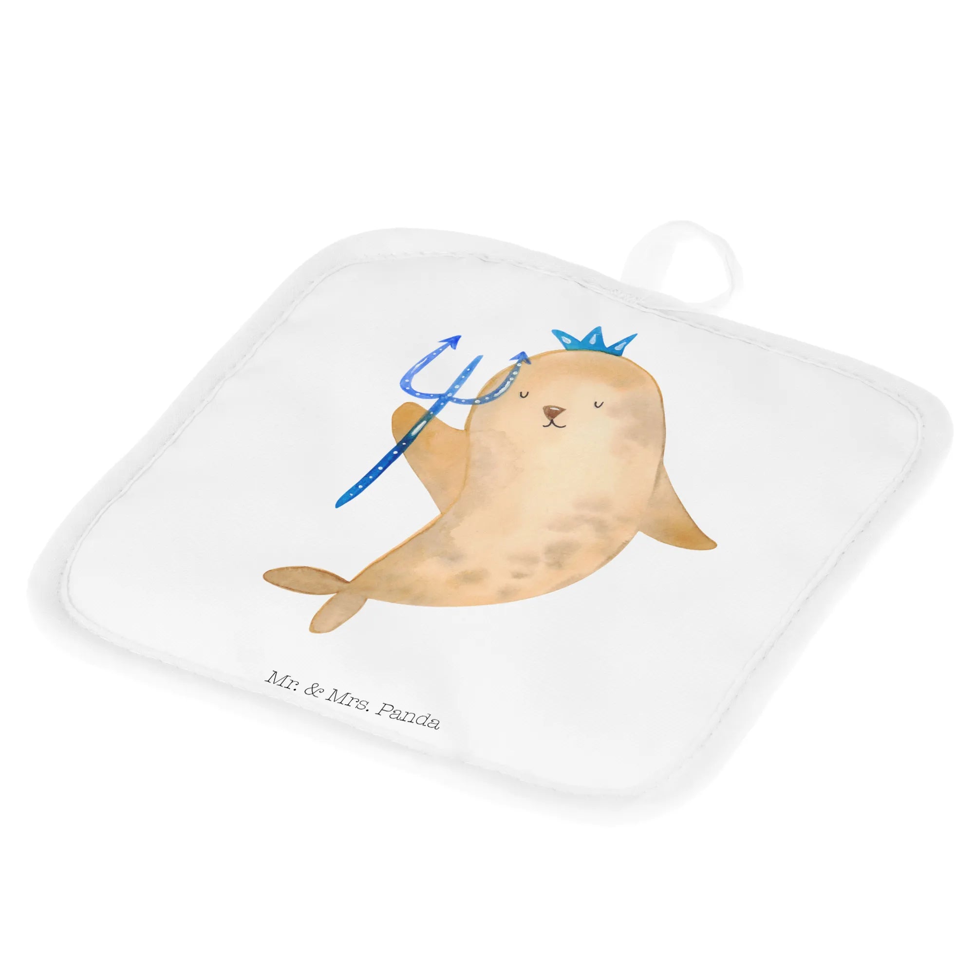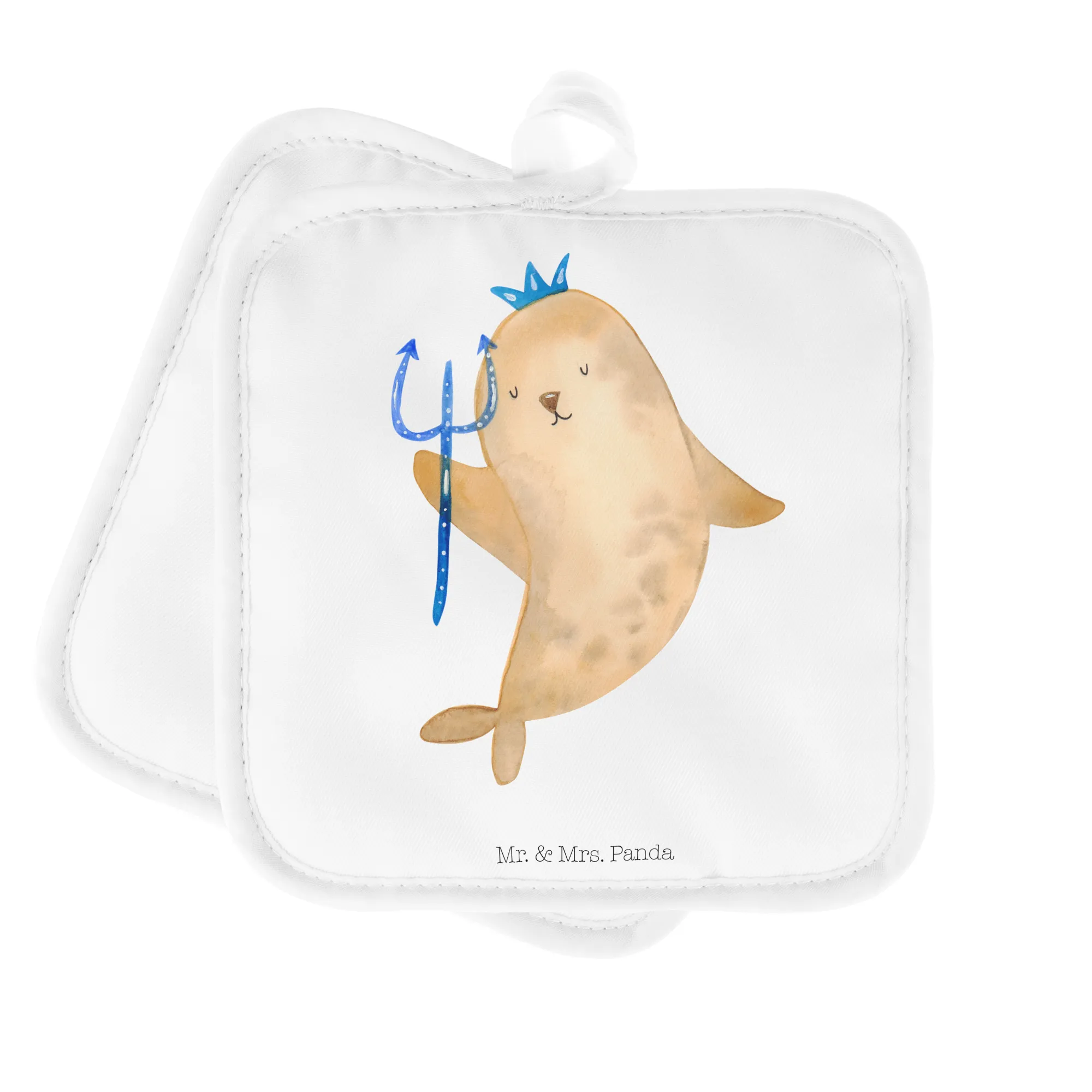 Die Topflappen sind hochwertig bedruckt mit einem süßen, handgezeichneten Motiv, das eine Robbe mit Krone und Zepter zeigt – ganz im Stil des Wassermanns. Sie messen 170 mm x 170 mm und sind aus strapazierfähigem 100% Polyester gefertigt, das die Hitze hervorragend isoliert. Damit bietet unser Topflappen-Set nicht nur einen hohen praktischen Wert, sondern auch eine Portion Humor und Lebensfreude für deine Küche.