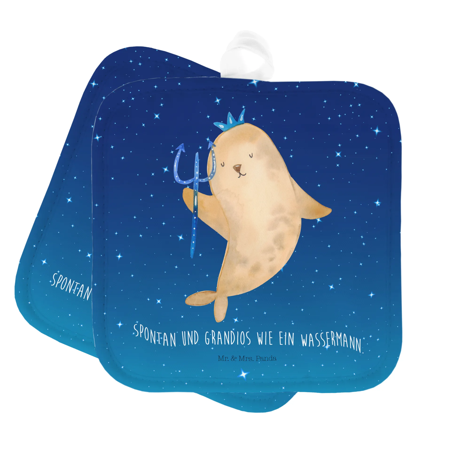 Entdecke das perfekte Geschenk für Freunde und Familie mit unserem 2er Set Topflappen im bezaubernden Wassermann-Motiv von Mr. & Mrs. Panda! Diese zwei hochwertigen Topflappen sind nicht nur praktische Küchenhelfer, sondern auch ein liebevolles Accessoire, das das Sternzeichen Wassermann auf charmante Weise zelebriert. Mit dem Spruch "Spontan und grandios wie ein Wassermann" bringt jeder Blick auf diese Topflappen ein Lächeln in dein Gesicht!