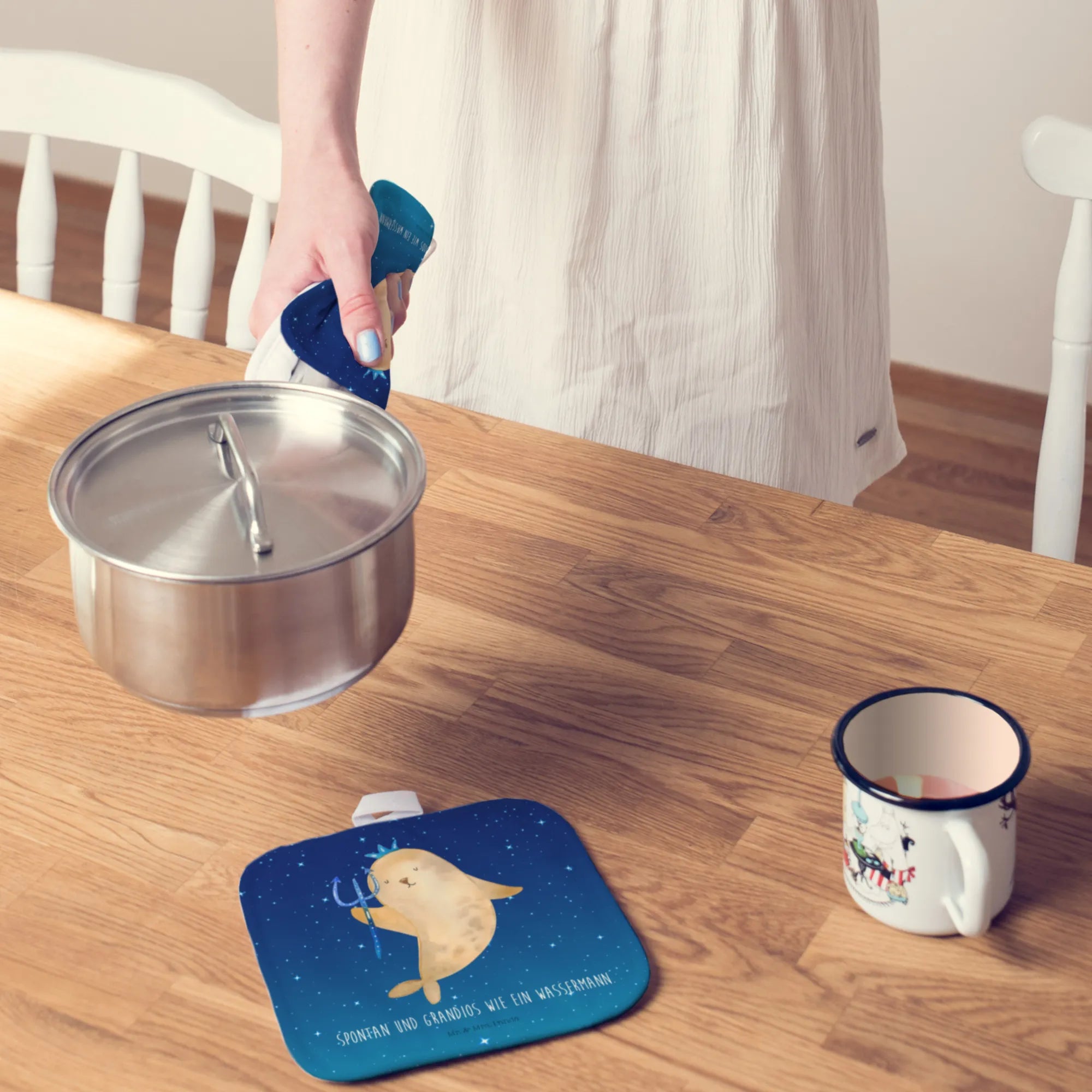 Schenke Freude und Farbe in deine Küche! Ob für die eigene Küche, als Einweihungsgeschenk oder als lustiges Mitbringsel – dieses Topflappen Set sorgt immer für gute Stimmung und ist der perfekte Begleiter beim Kochen. Lass dich auch von den weiteren Motiven unserer Sternzeichen Kollektion inspirieren und entdecke die Vielfalt an Geschenken für alle Tierkreiszeichen! Diese süßen Topflappen sind die ideale Ergänzung für jeden Wassermann verbunden mit einem Lächeln. Schöne Topflappen, die an die Freunde oder die eigene Persönlichkeit erinnern, während man die Küche rockt!