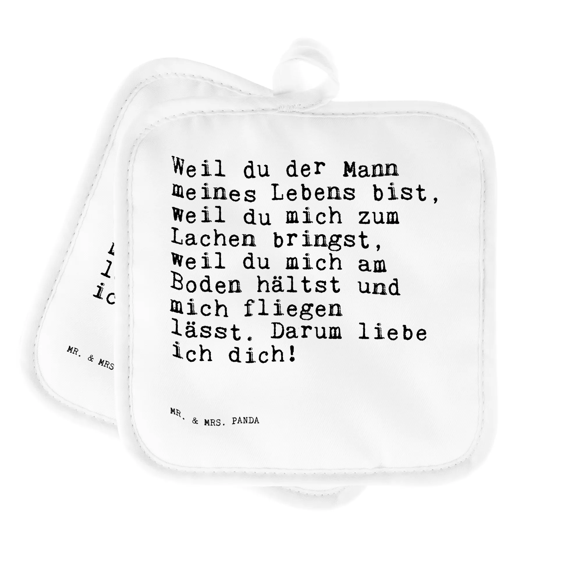 2er Set Topflappen Sprüche und Zitate Weil du der Mann meines Lebens bist, weil du mich zum Lachen bringst, weil du mich am Boden hältst und mich fliegen lässt. Darum liebe ich dich!