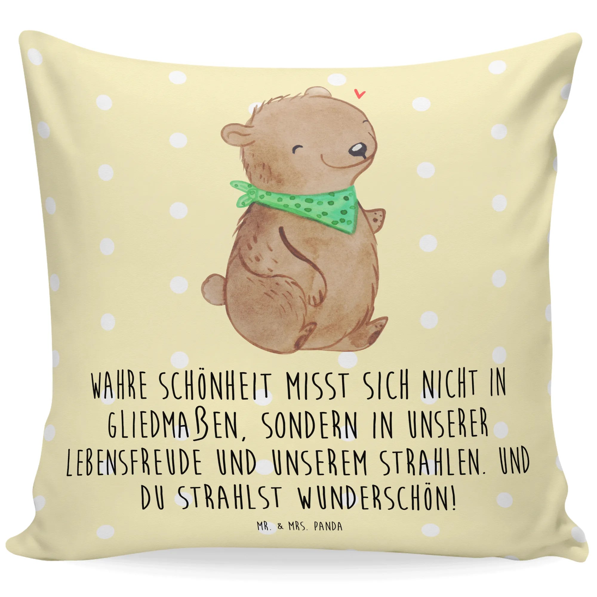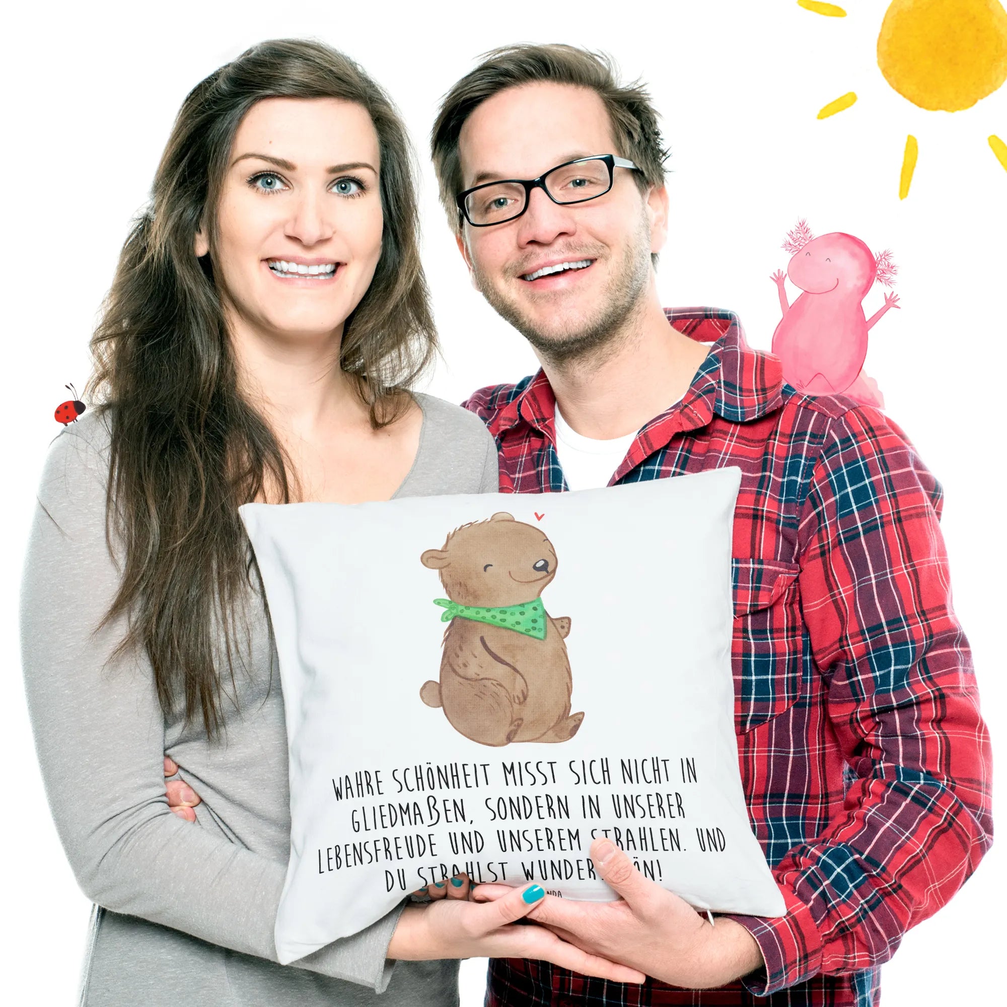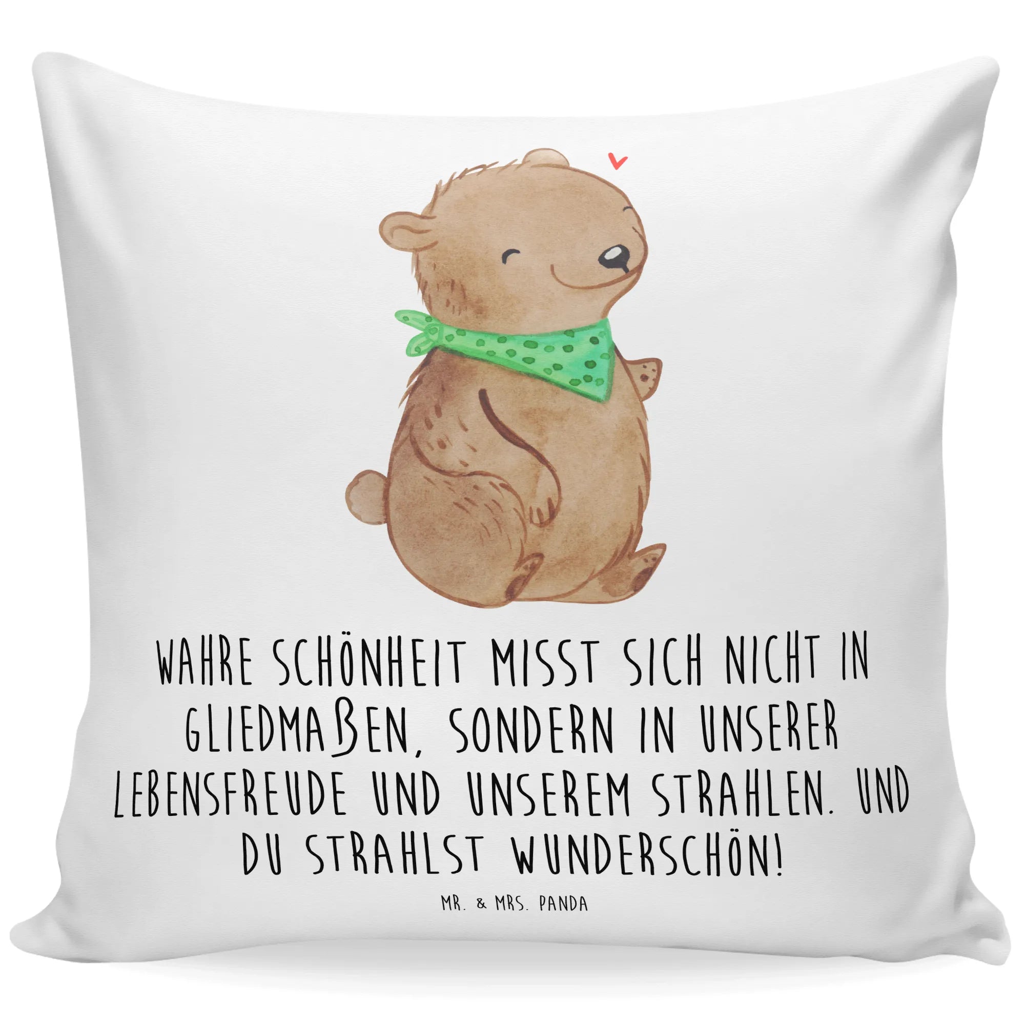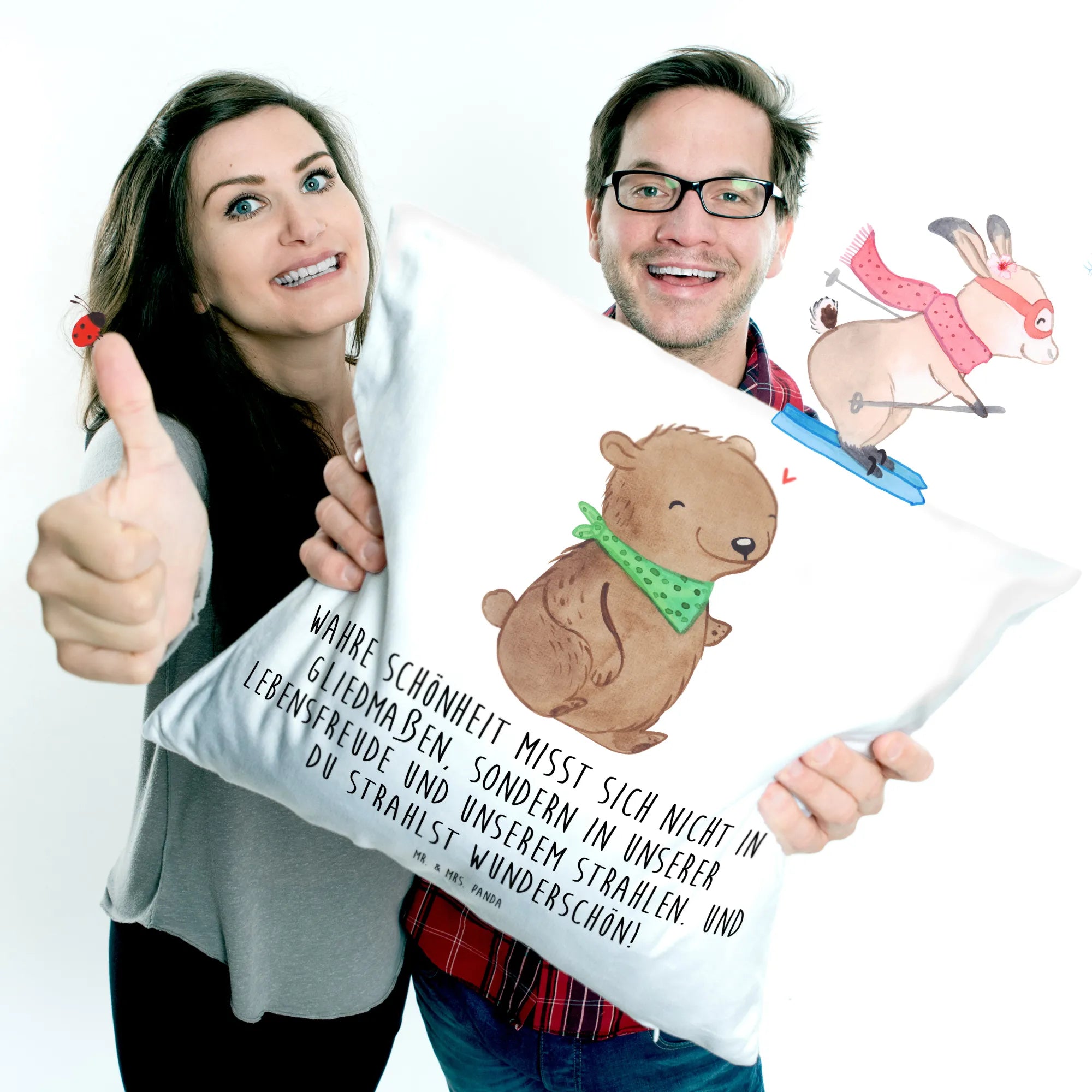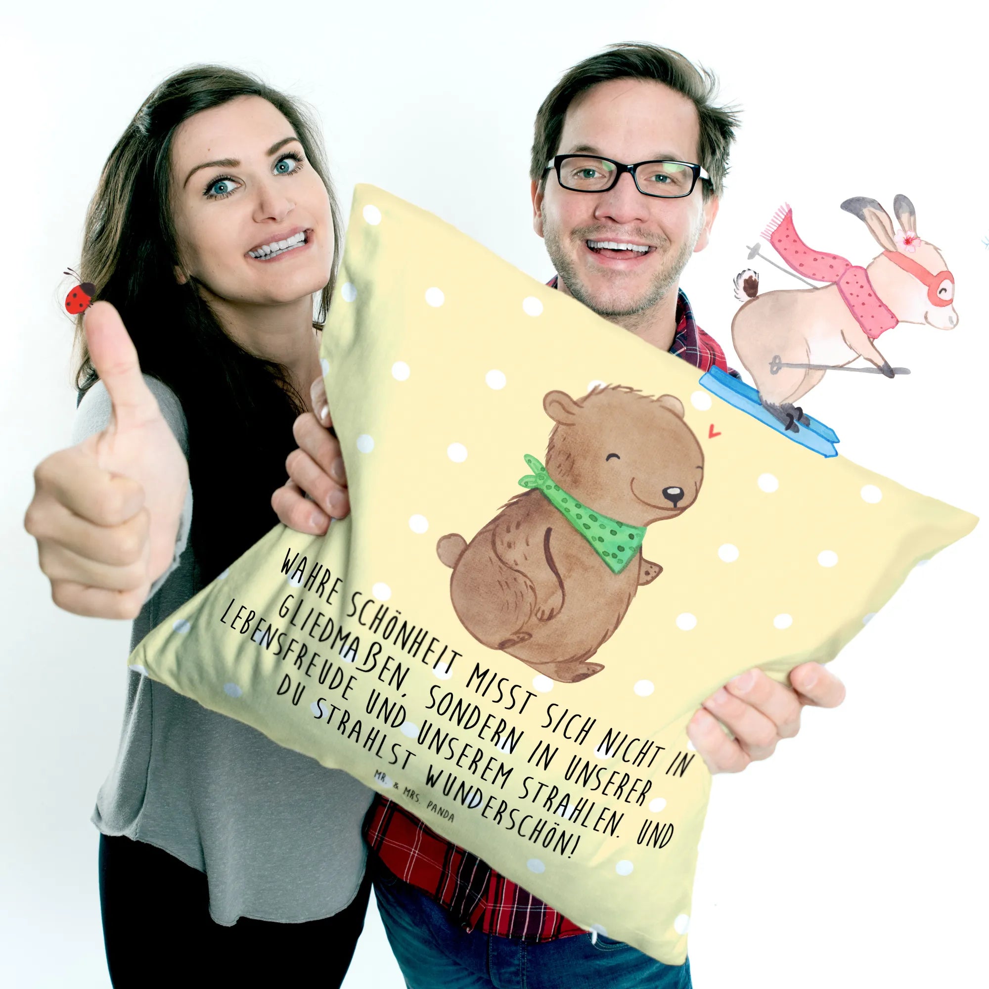 Das 40x40 Kissen von Mr. & Mrs. Panda mit dem Muster Bär Dysmelie aus der Kollektion Tiere mit Superkräften ist das perfekte Geschenk für besondere Menschen, die ihren Alltag mit einem Handicap meistern. Dieses Kissen bringt nicht nur eine liebevolle Botschaft mit, sondern auch eine wunderbare Ausstattung, die zum Wohlfühlen einlädt. Der Kissenbezug aus superflauschiger Mikrofaser ist angenehm weich und kann unkompliziert in der Waschmaschine bei maximal 30° C gereinigt werden, damit die Farben strahlend schön bleiben.