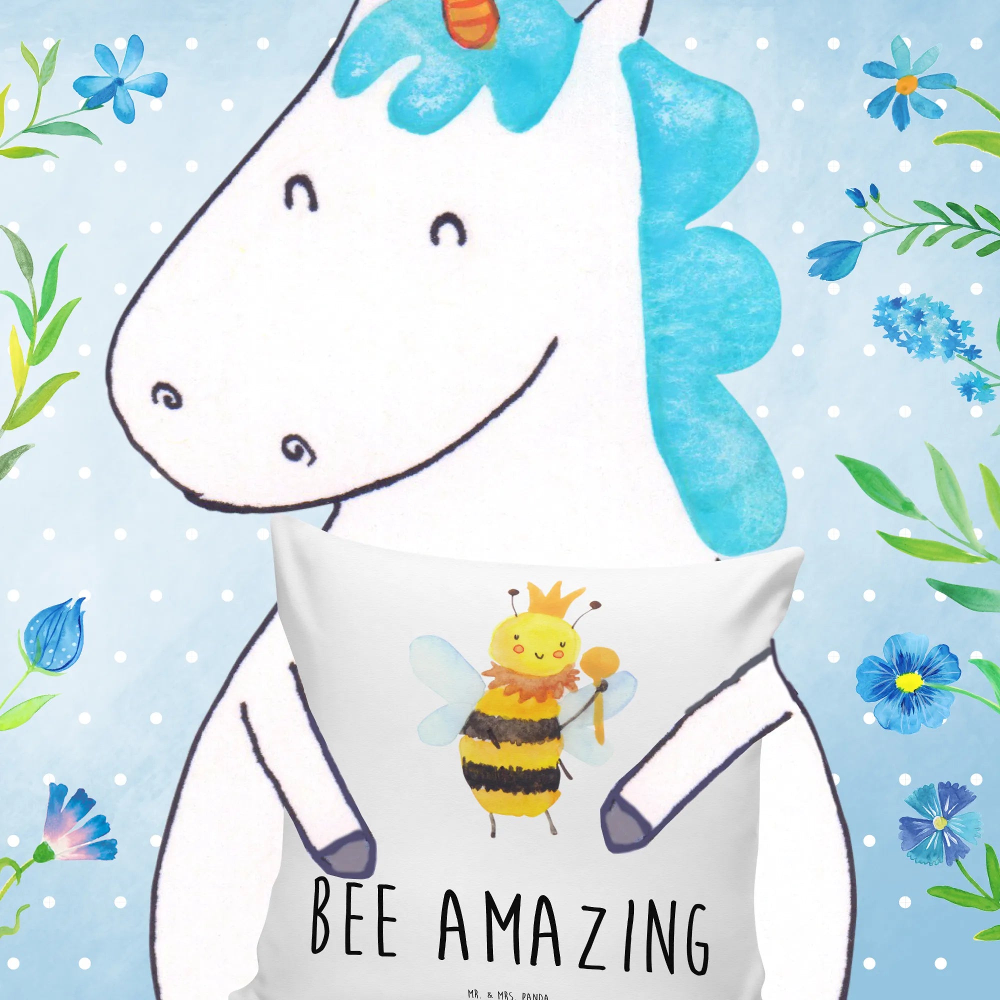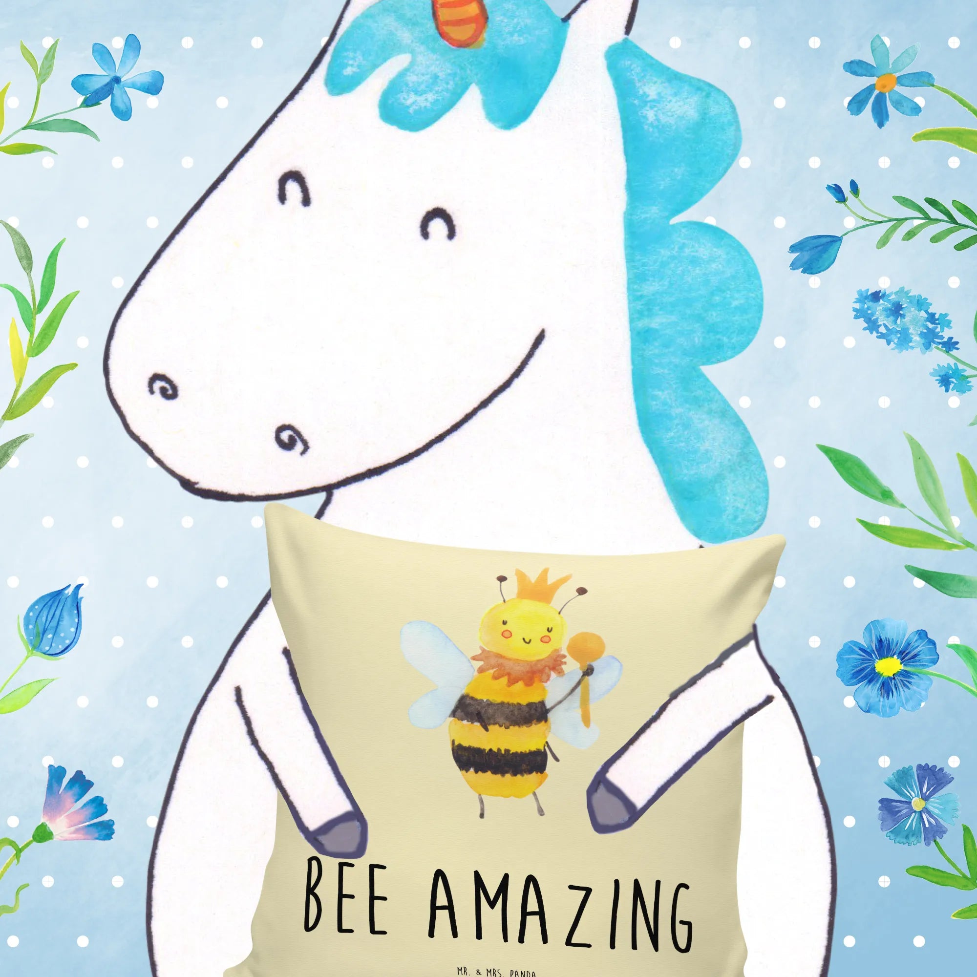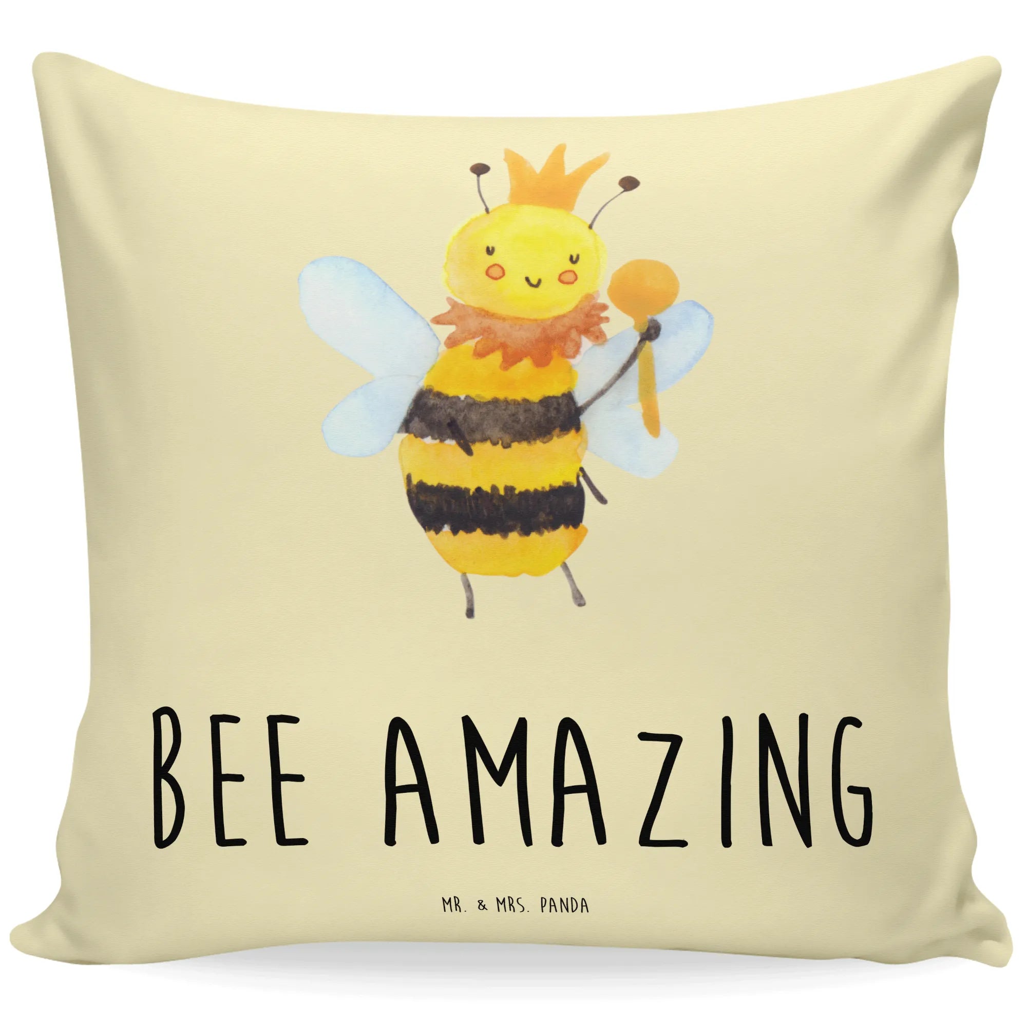 Mit der Botschaft „Bee amazing“ verkörpert das Motiv auf eine lustige und charmante Weise die Königin aller Bienen. Dieses Kissen ist nicht nur für Imker oder Naturfreunde, sondern für alle, die ein Stückchen Lebensfreude ins eigene Heim holen möchten. Die Bienen Kollektion von Mr. & Mrs. Panda ist eine liebevolle Sammlung von originellen Designs, handgezeichnet mit Aquarellfarben. Jedes Kissen erzählt eine eigene Geschichte und zaubert ein Lächeln auf die Gesichter der Menschen, die es sehen.