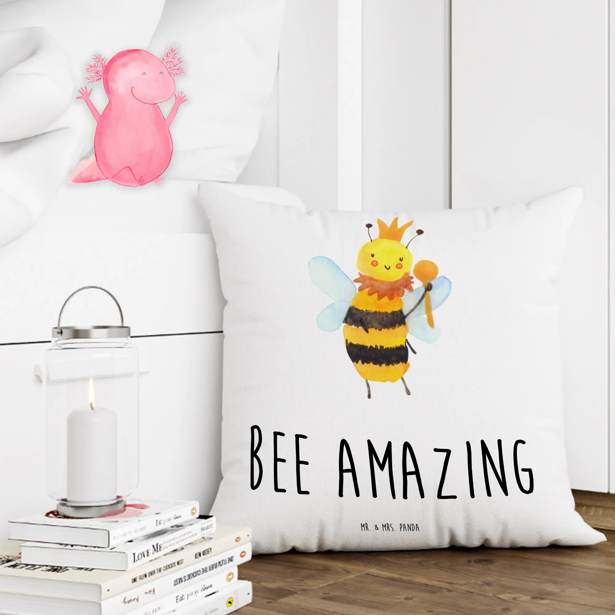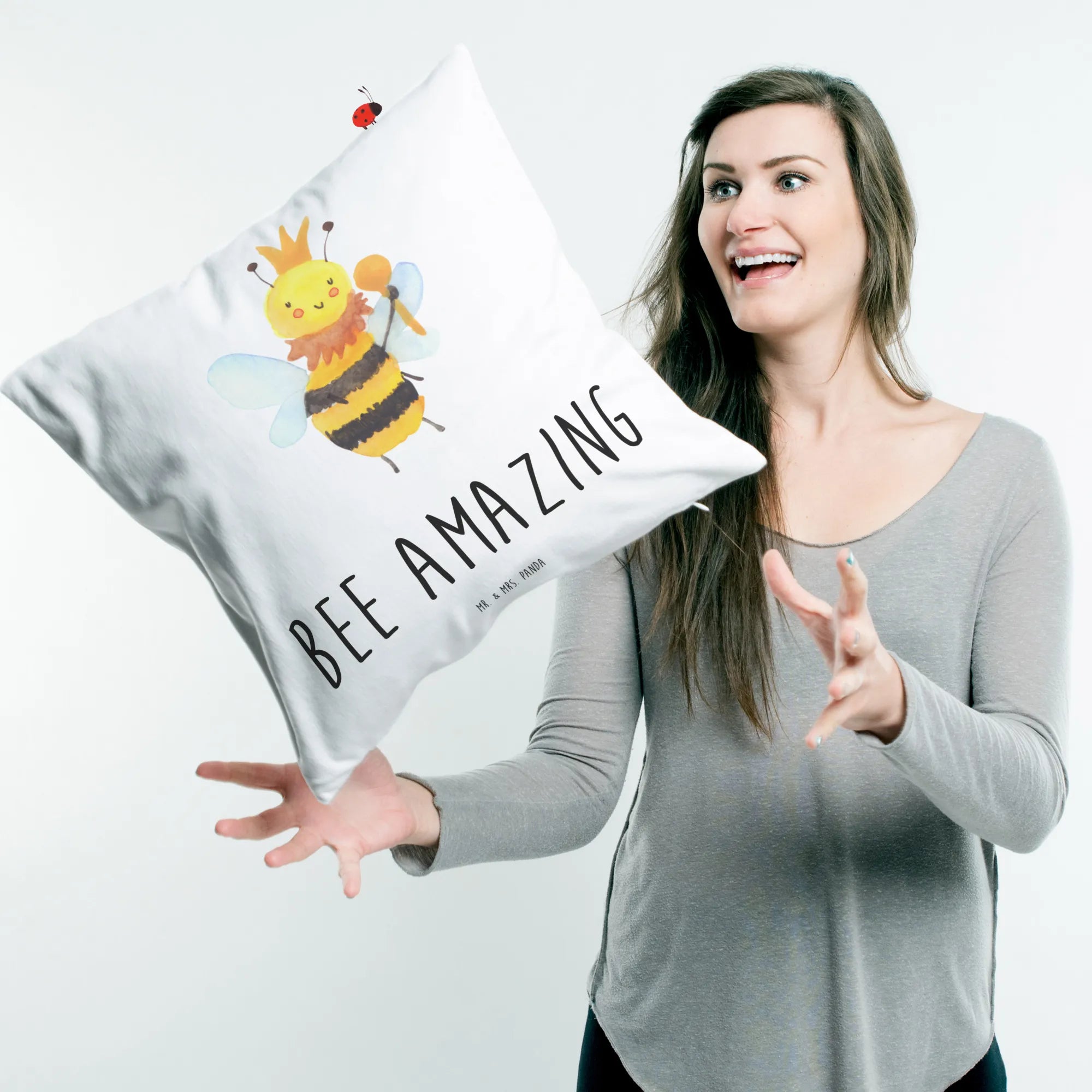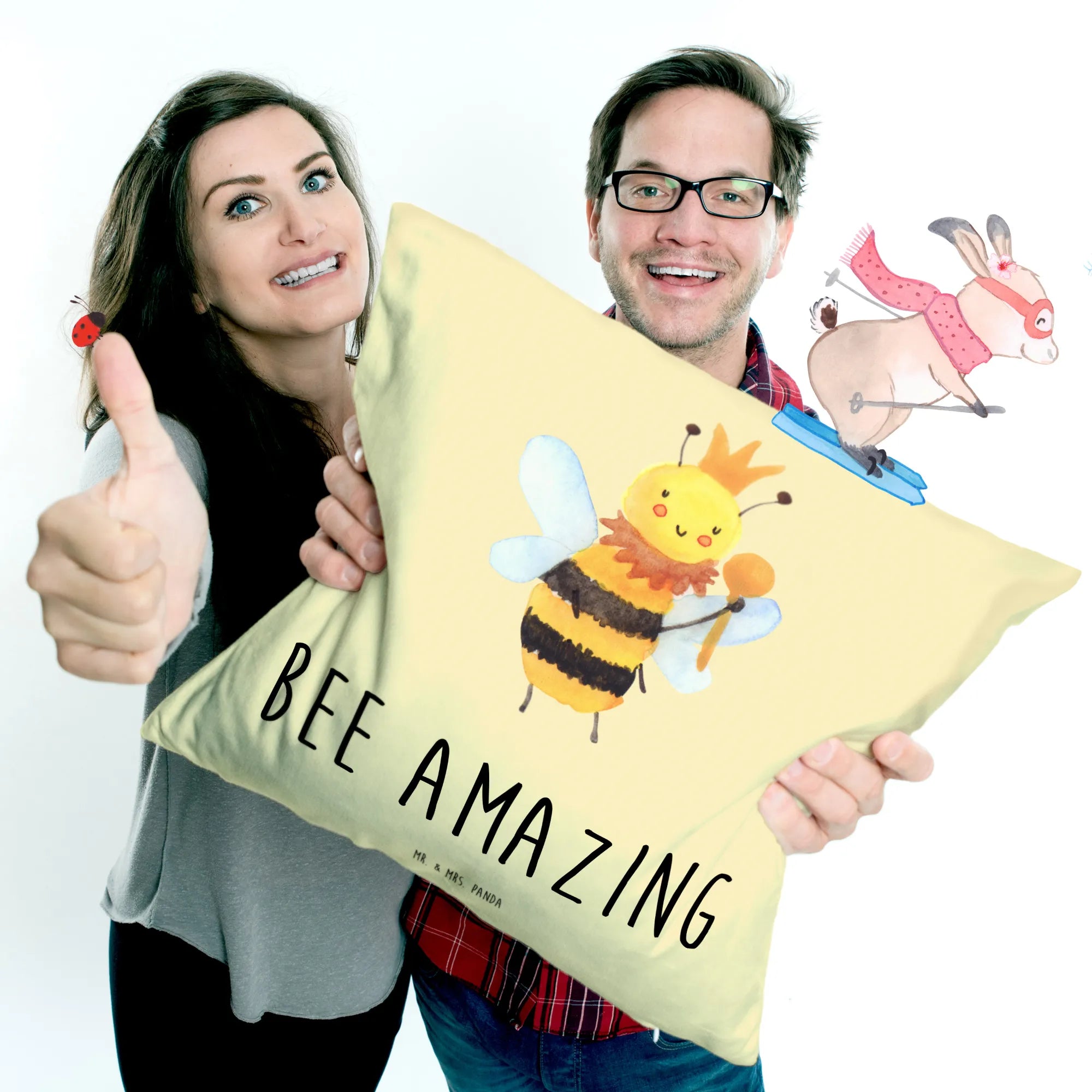 Mit der Botschaft „Bee amazing“ verkörpert das Motiv auf eine lustige und charmante Weise die Königin aller Bienen. Dieses Kissen ist nicht nur für Imker oder Naturfreunde, sondern für alle, die ein Stückchen Lebensfreude ins eigene Heim holen möchten. Die Bienen Kollektion von Mr. & Mrs. Panda ist eine liebevolle Sammlung von originellen Designs, handgezeichnet mit Aquarellfarben. Jedes Kissen erzählt eine eigene Geschichte und zaubert ein Lächeln auf die Gesichter der Menschen, die es sehen.