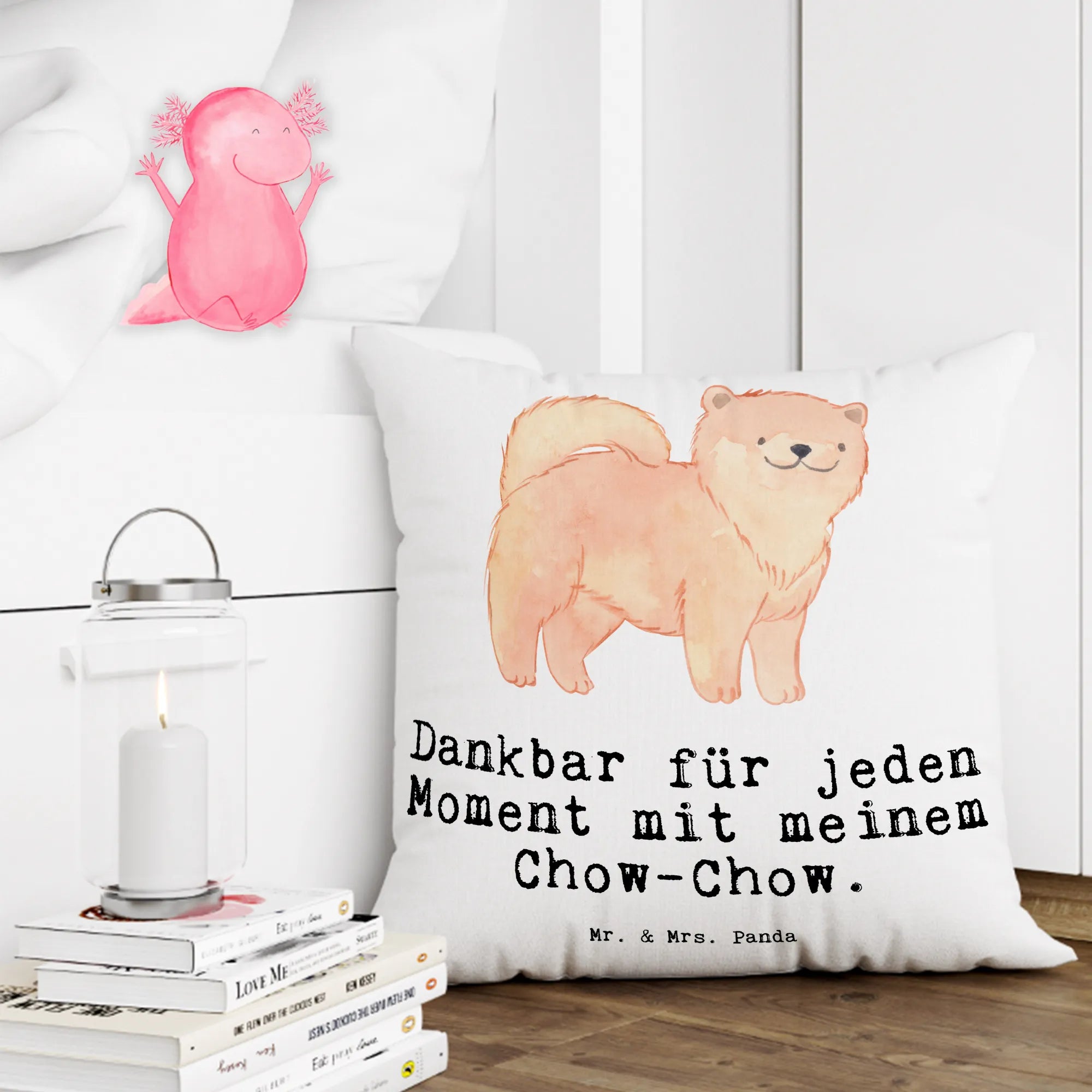 Das perfekte Geschenk für Hundeliebhaber: unser 40x40 Kissen mit dem bezaubernden Motiv 'Chow-Chow Moment' von Mr. & Mrs. Panda! Dieses wunderschöne, kuschelige Kissen aus superflauschiger Mikrofaser verzaubert nicht nur jeden Raum, sondern erzählt auch die liebenswertesten Geschichten über Deinen treuen Vierbeiner. Es ist mit einem strahlenden, handgezeichneten Chow-Chow versehen, der in warmen, sanften Farben strahlt. Ein Hund, der entspannt lächelt – das ist die pure Freude, die dieses Kissen ausstrahlt! Der Slogan 'Dankbar für jeden Moment mit meinem Chow-Chow' bringt es auf den Punkt und lässt das Herz eines jeden Hundebesitzers höher schlagen.