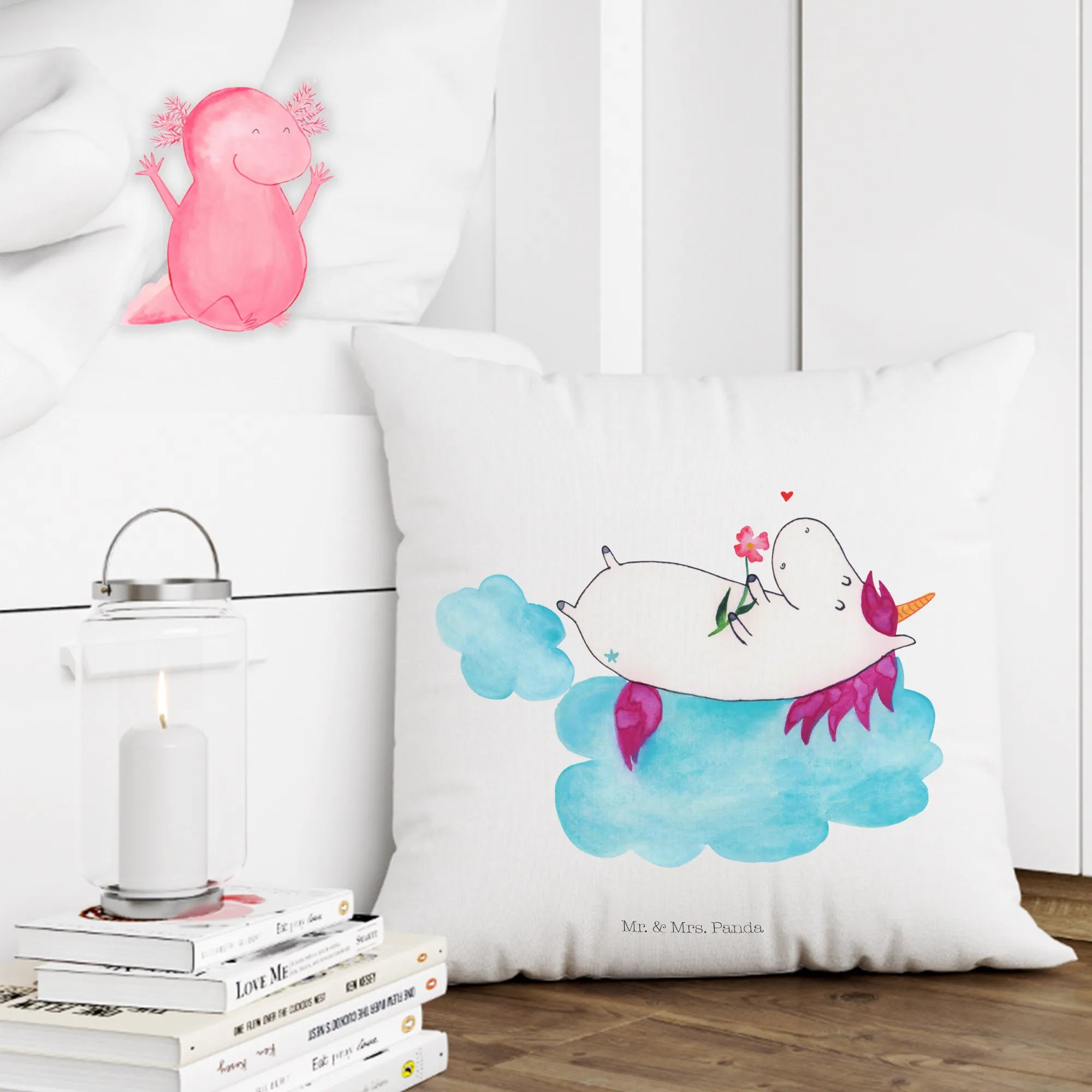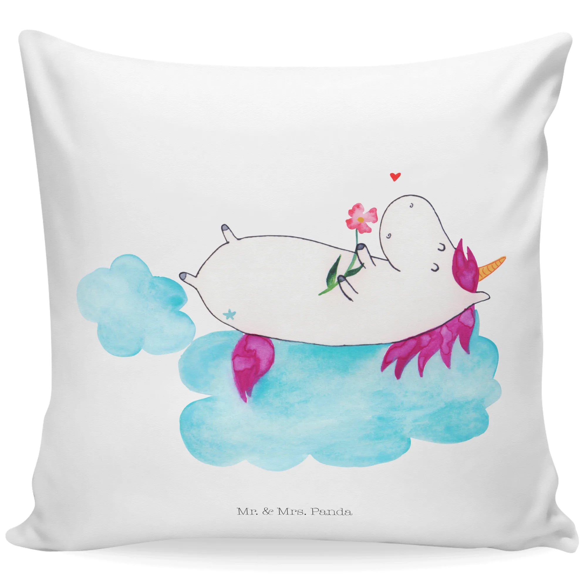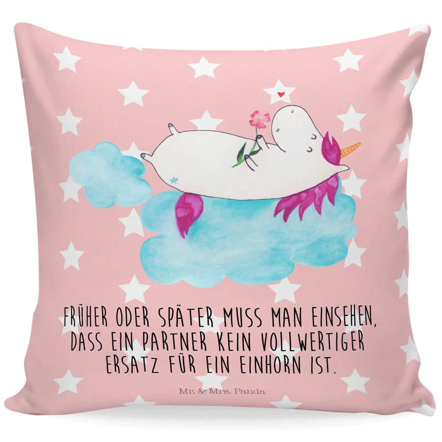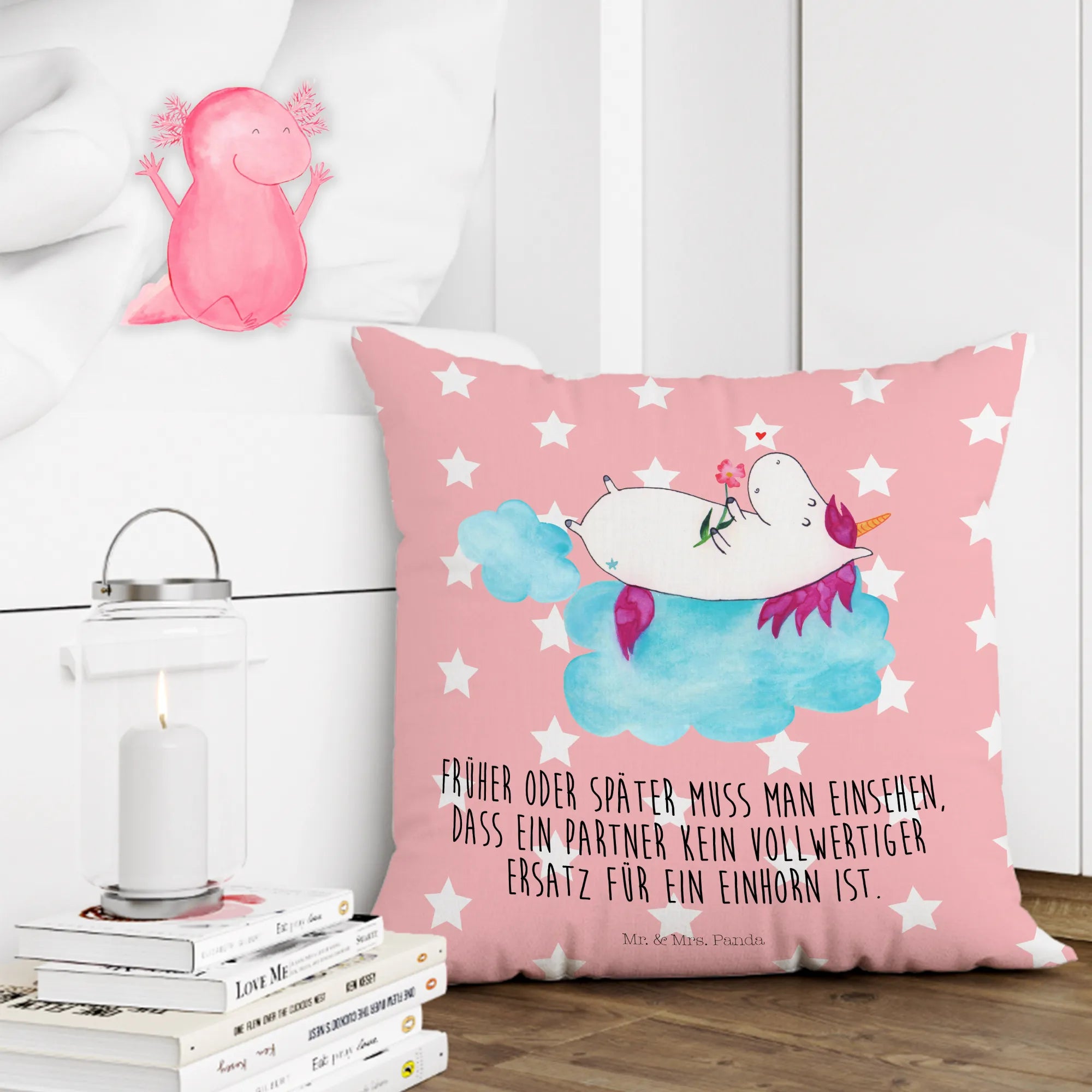 Das 40x40 Kissen "Einhorn verliebt auf Wolke" aus der zauberhaften Einhorn-Kollektion von Mr. & Mrs. Panda ist nicht nur ein Blickfang, sondern auch das perfekte Geschenk für alle Einhorn-Liebhaber!