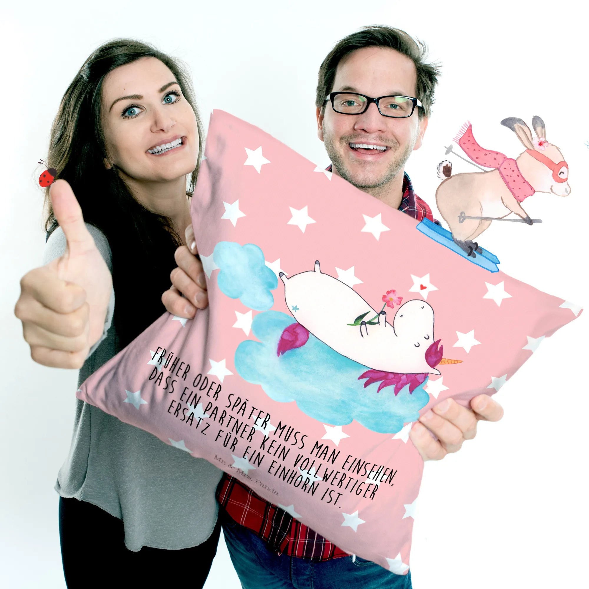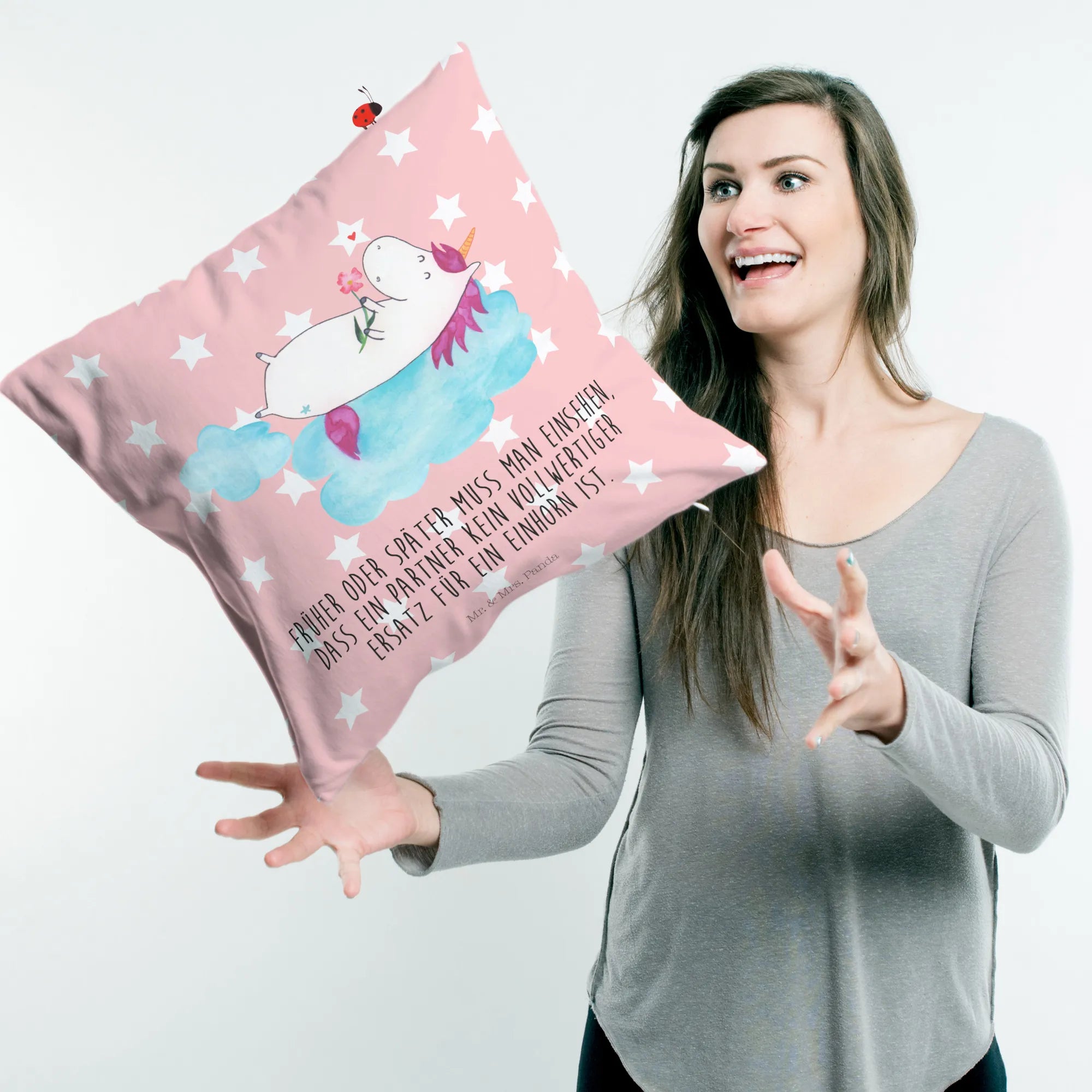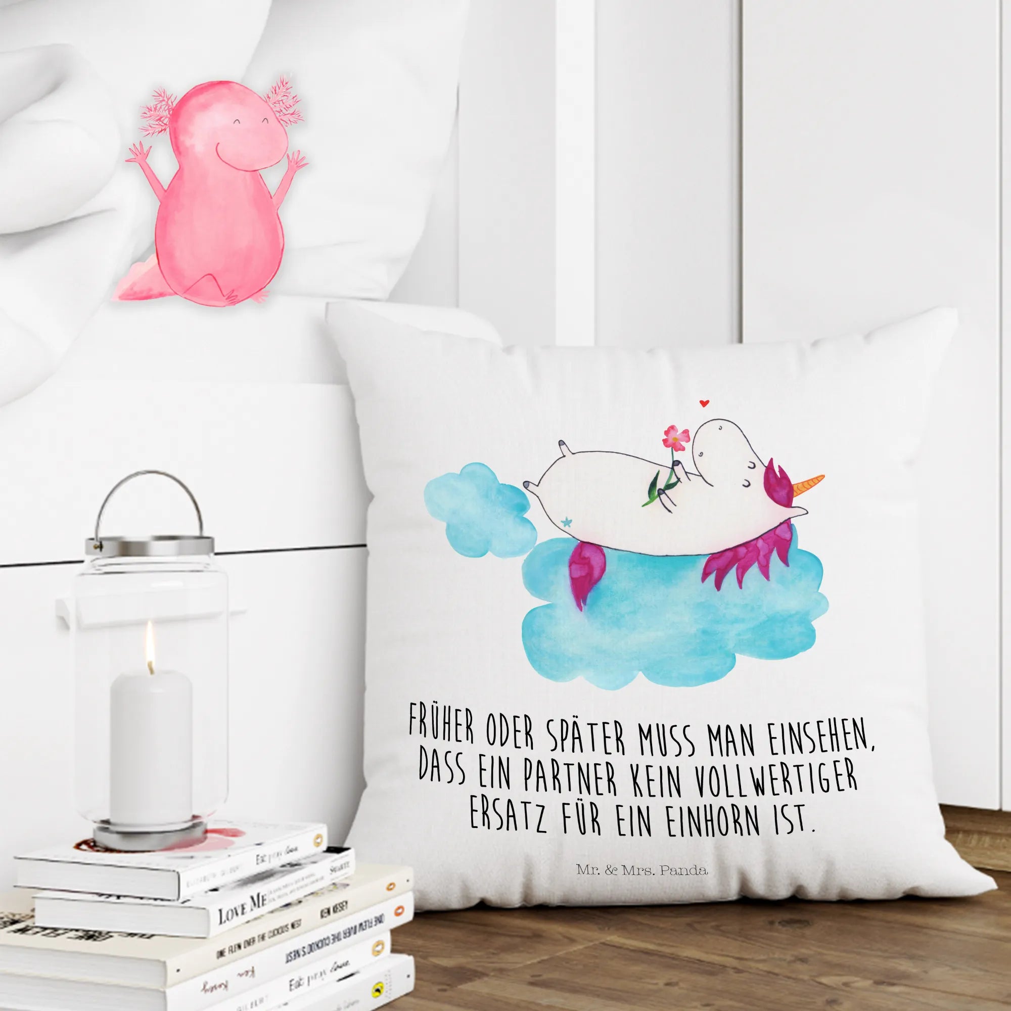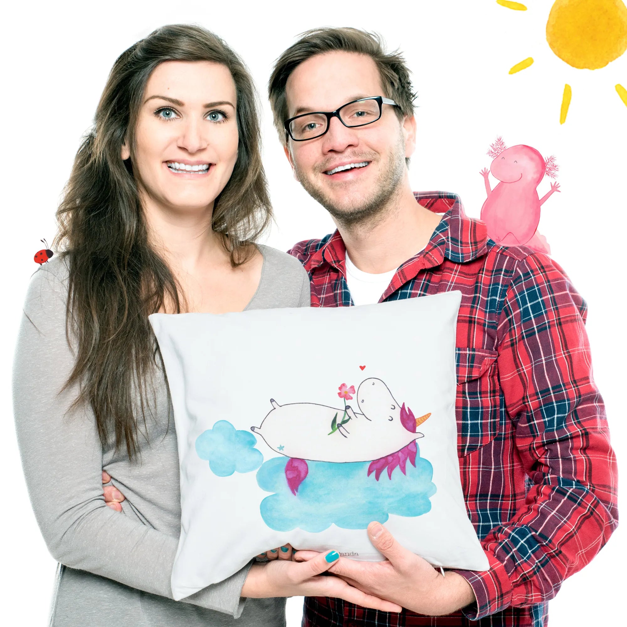 Das 40x40 Kissen "Einhorn verliebt auf Wolke" aus der zauberhaften Einhorn-Kollektion von Mr. & Mrs. Panda ist nicht nur ein Blickfang, sondern auch das perfekte Geschenk für alle Einhorn-Liebhaber!