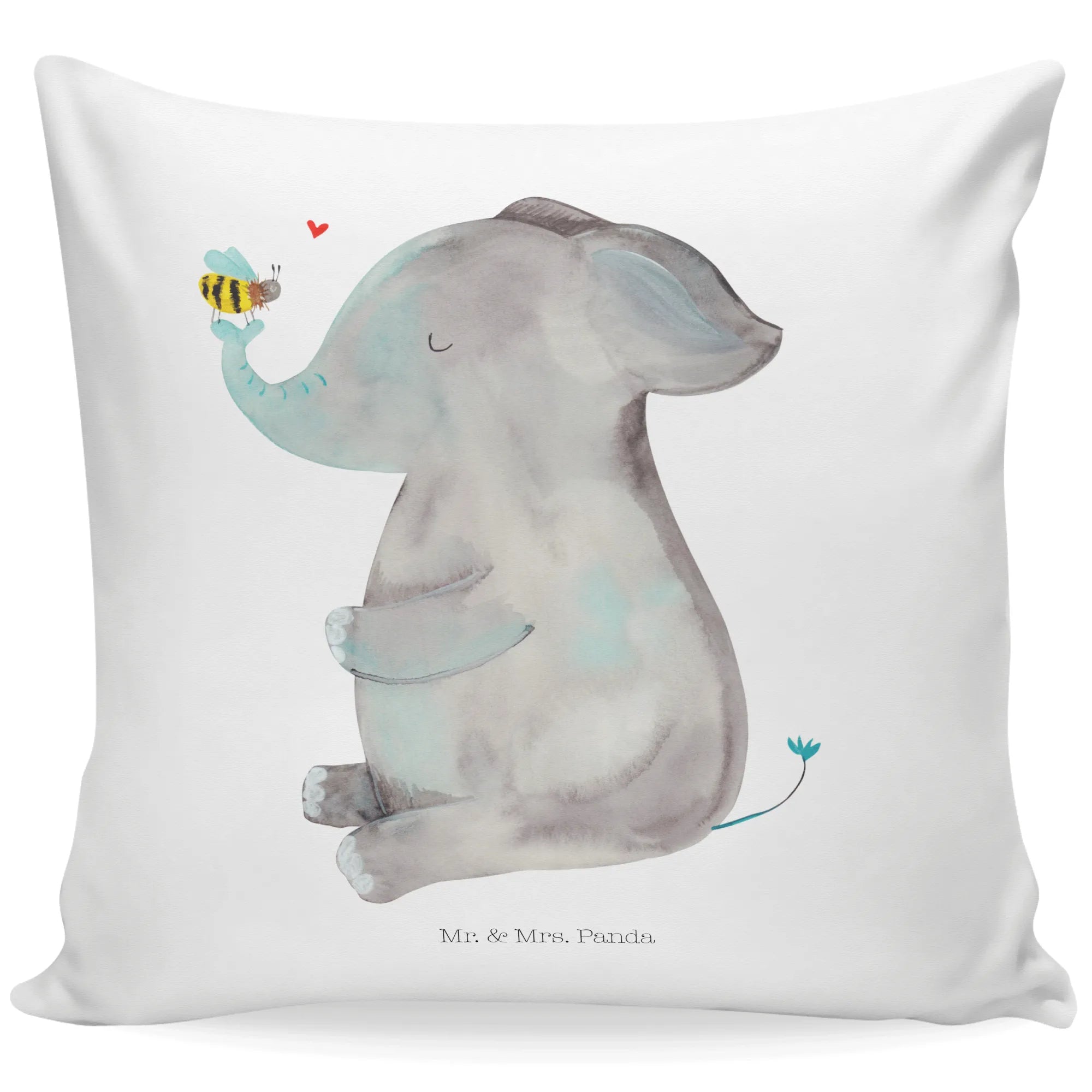 40x40 Kissen Elefant Biene - mit Spruch - Weiß