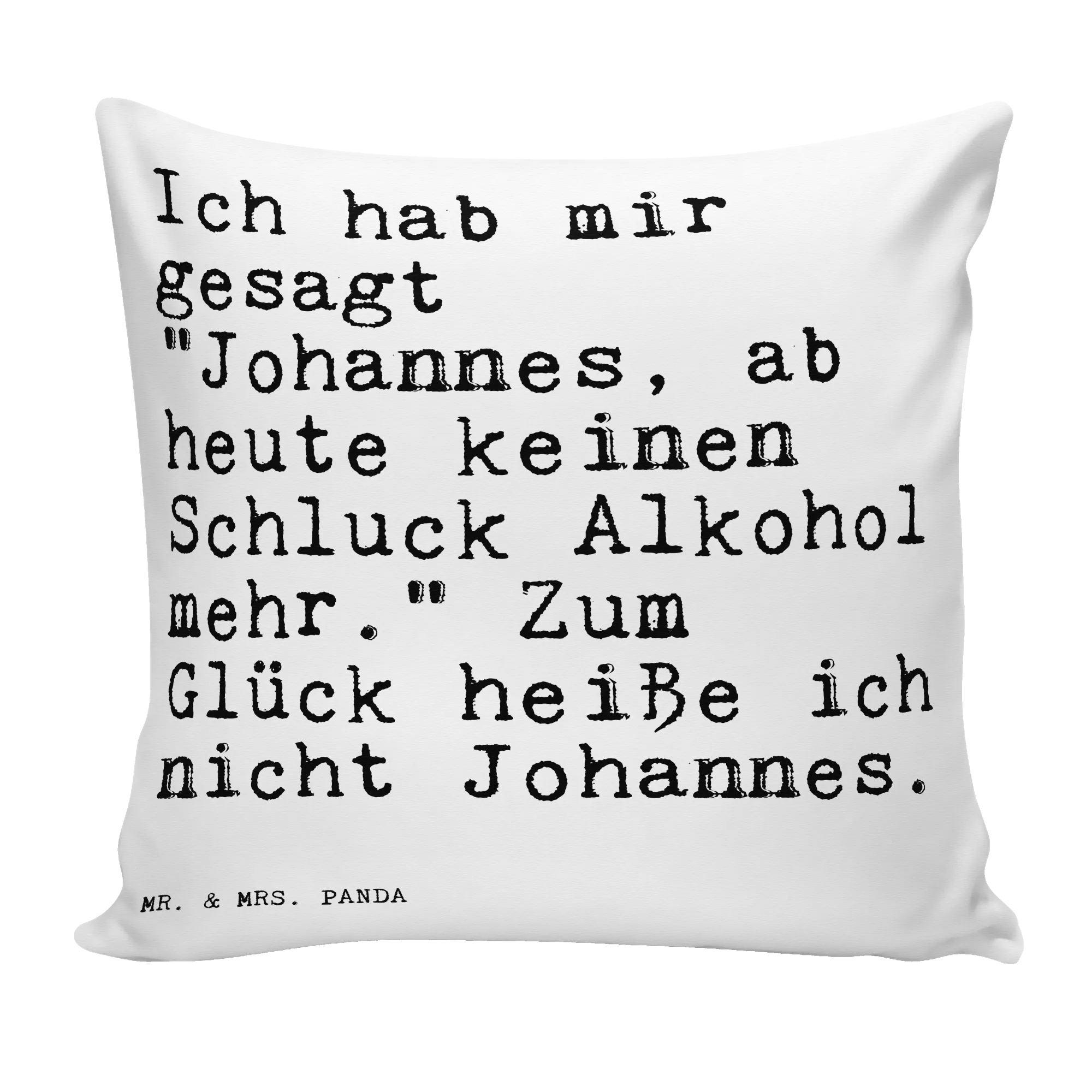 Das Kissen mit dem Spruch "Ich hab mir gesagt 'Johannes, ab heute keinen Schluck Alkohol mehr.' Zum Glück heiße ich nicht Johannes." ist das perfekte Geschenk für alle, die Humor und Gemütlichkeit lieben. Egal ob für den besten Freund, einen Kumpel oder einfach für dich selbst – dieses 40x40 Kissen von Mr. & Mrs. Panda sorgt für ein Lächeln im Gesicht und eine gemütliche Atmosphäre im Wohnzimmer oder Schlafzimmer.