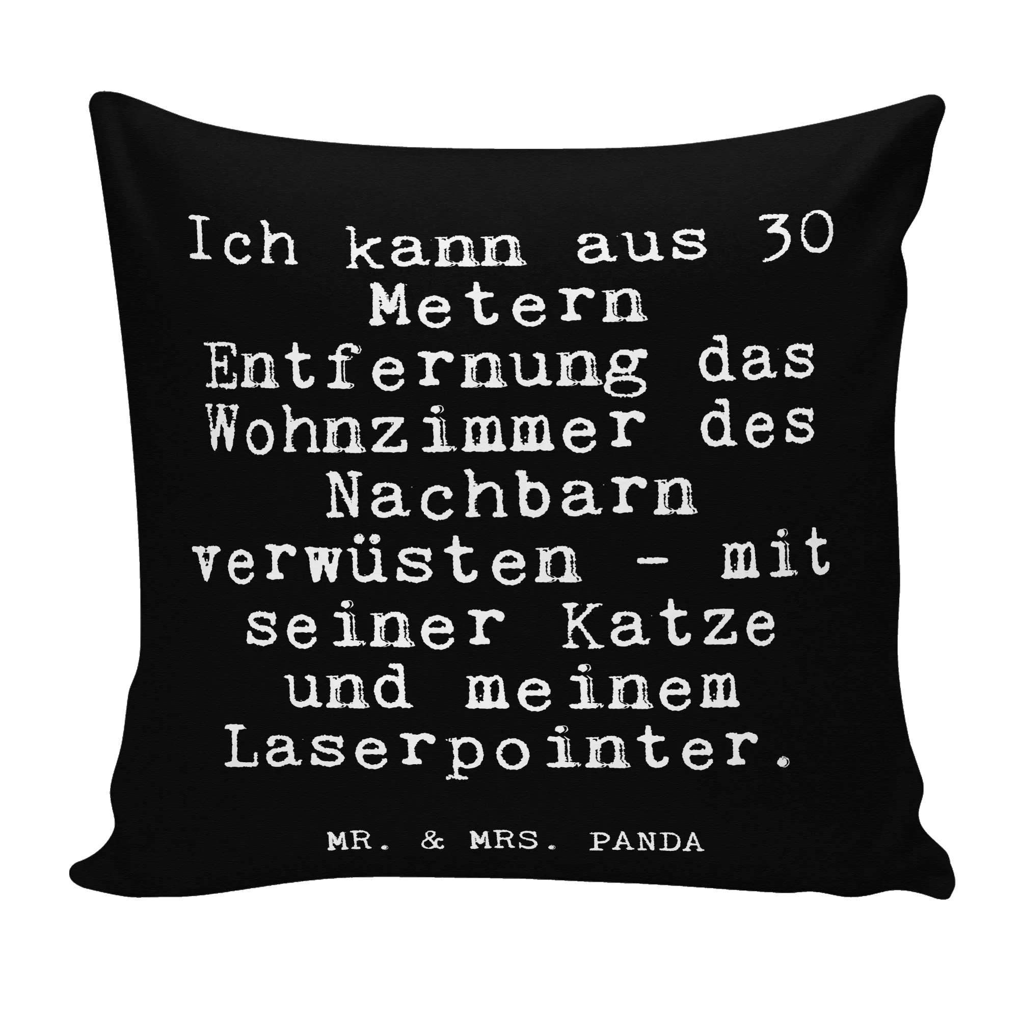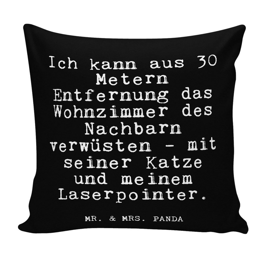 Du suchst nach dem perfekten Geschenk für einen Katzenliebhaber? Dann ist das Kissen mit dem witzigen Spruch "Ich kann aus 30 Metern Entfernung das Wohnzimmer des Nachbarn verwüsten - mit seiner Katze und meinem Laserpointer" genau das Richtige!