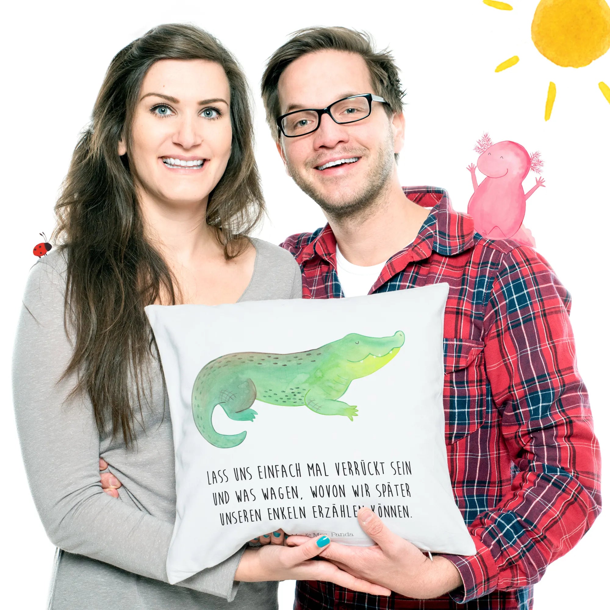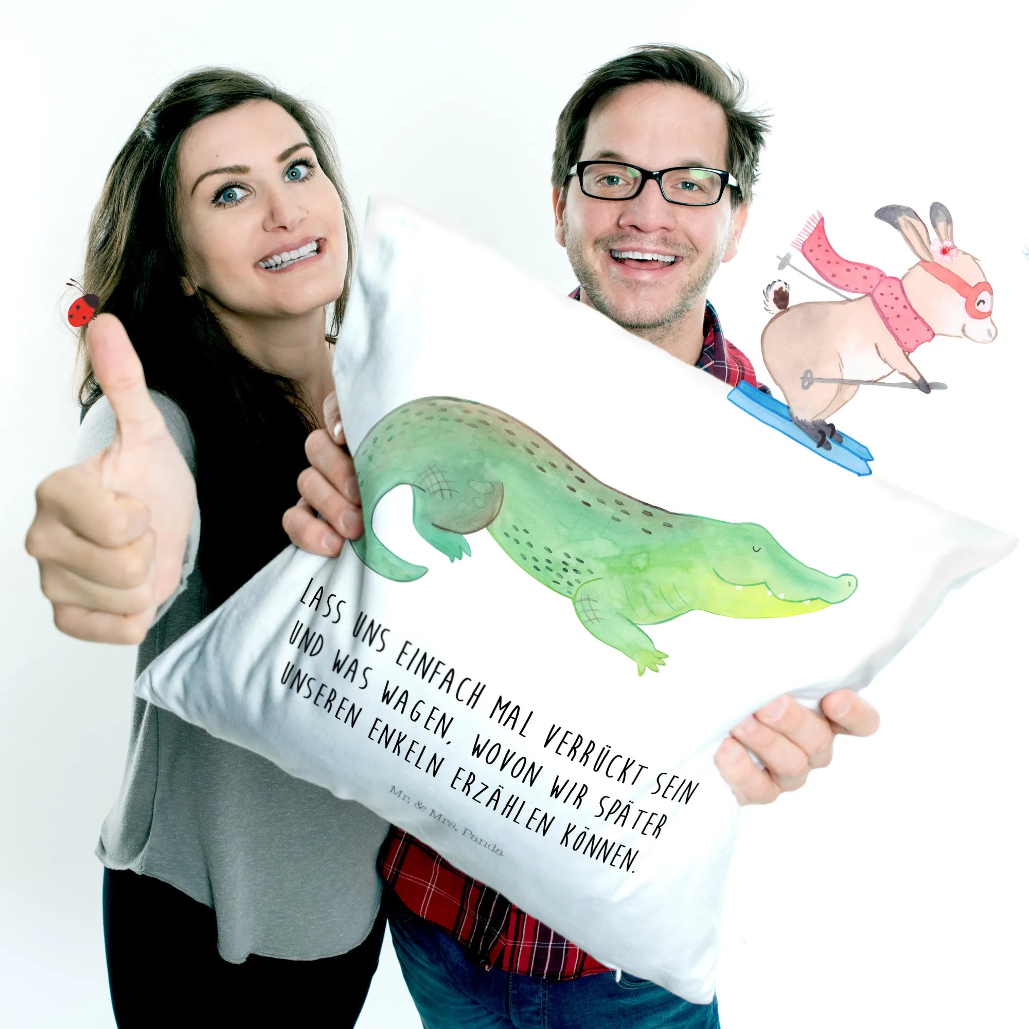 Entspanne dich und lasse die Sorgen des Alltags hinter dir mit unserem wundervollen 40x40 Kissen von Mr. & Mrs. Panda! Dieses einzigartige Kissen mit dem bezaubernden Krokodil-Motiv bringt die richtige Portion Abenteuerlust in dein Zuhause.