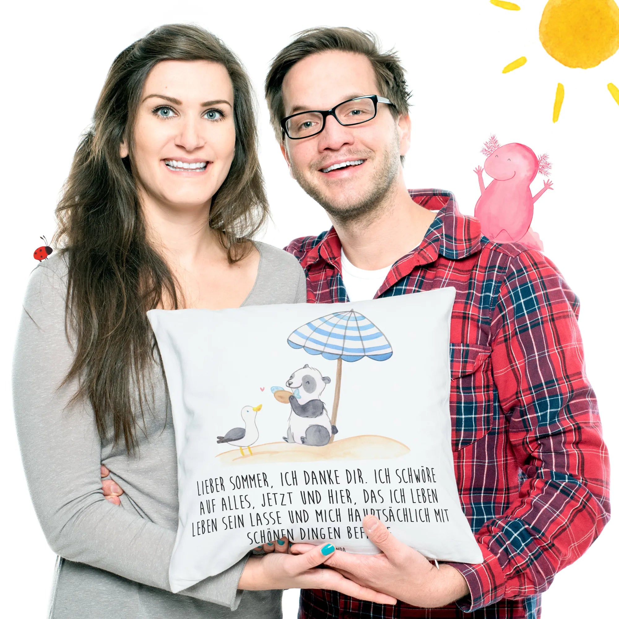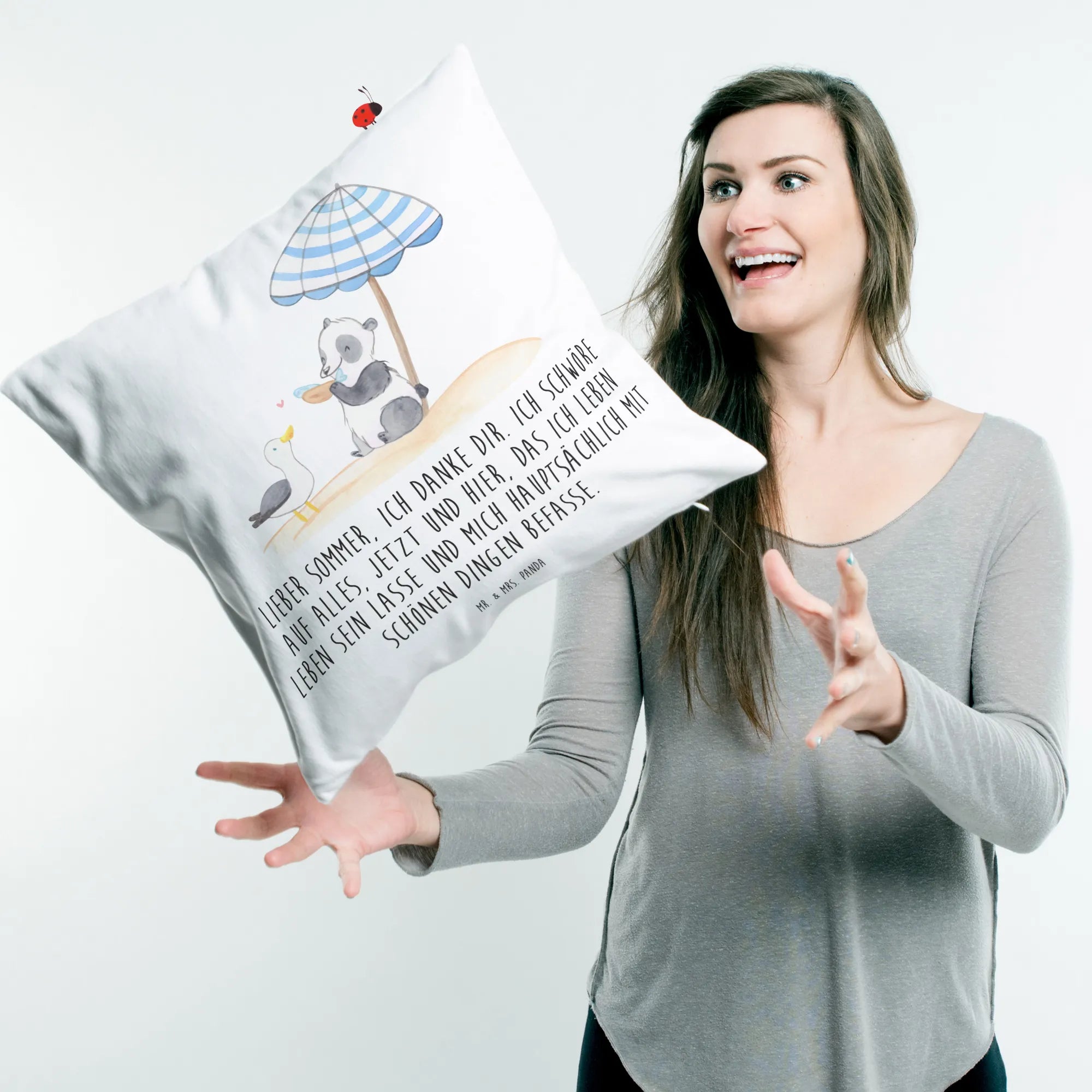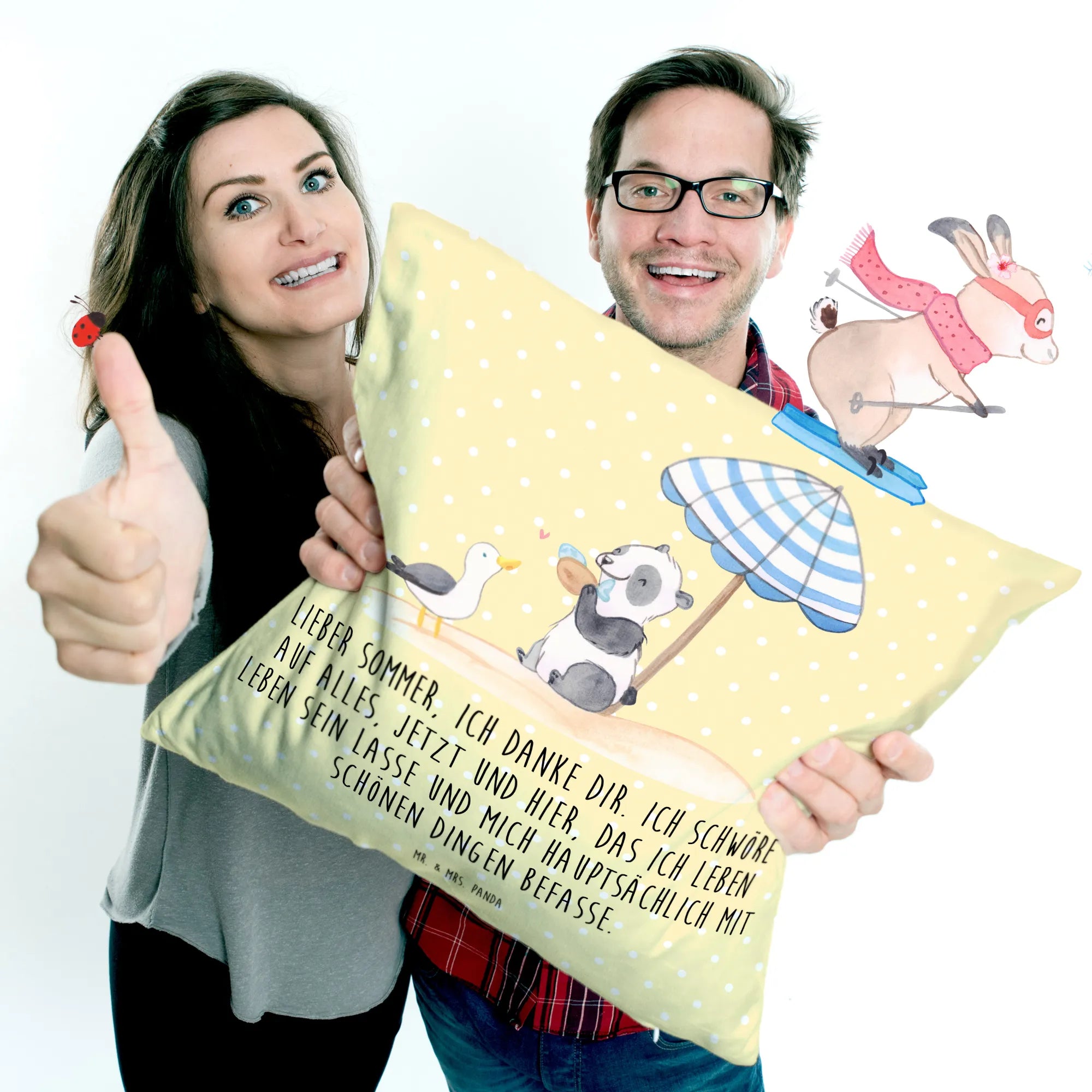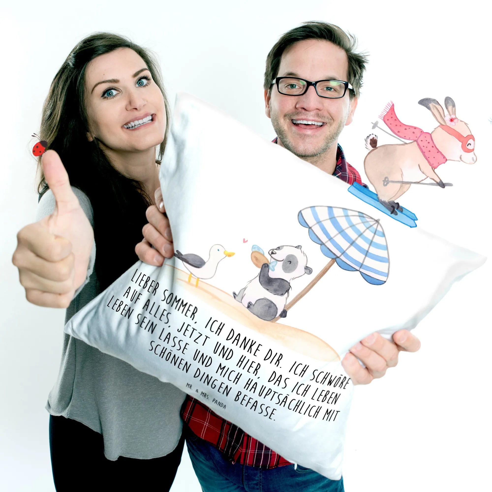 Das 40x40 Kissen von Mr. & Mrs. Panda ist das perfekte Accessoire für dein Zuhause, besonders in der warmen Jahreszeit! Es bringt Sommergefühle in jeden Raum und ist ein toller Blickfang. Bedruckt mit dem wunderbaren Slogan "Lieber Sommer, ich danke dir..." schenkt es dir und deinen Gästen ein Lächeln und erinnert dich an all die wunderschönen Momente, die der Sommer mit sich bringt.
