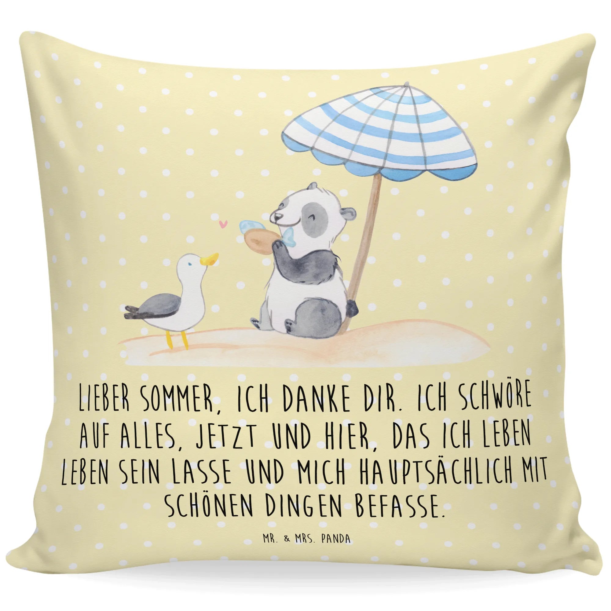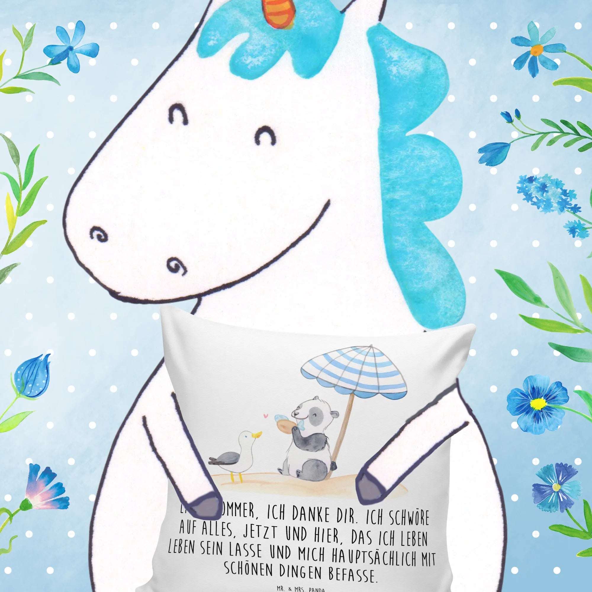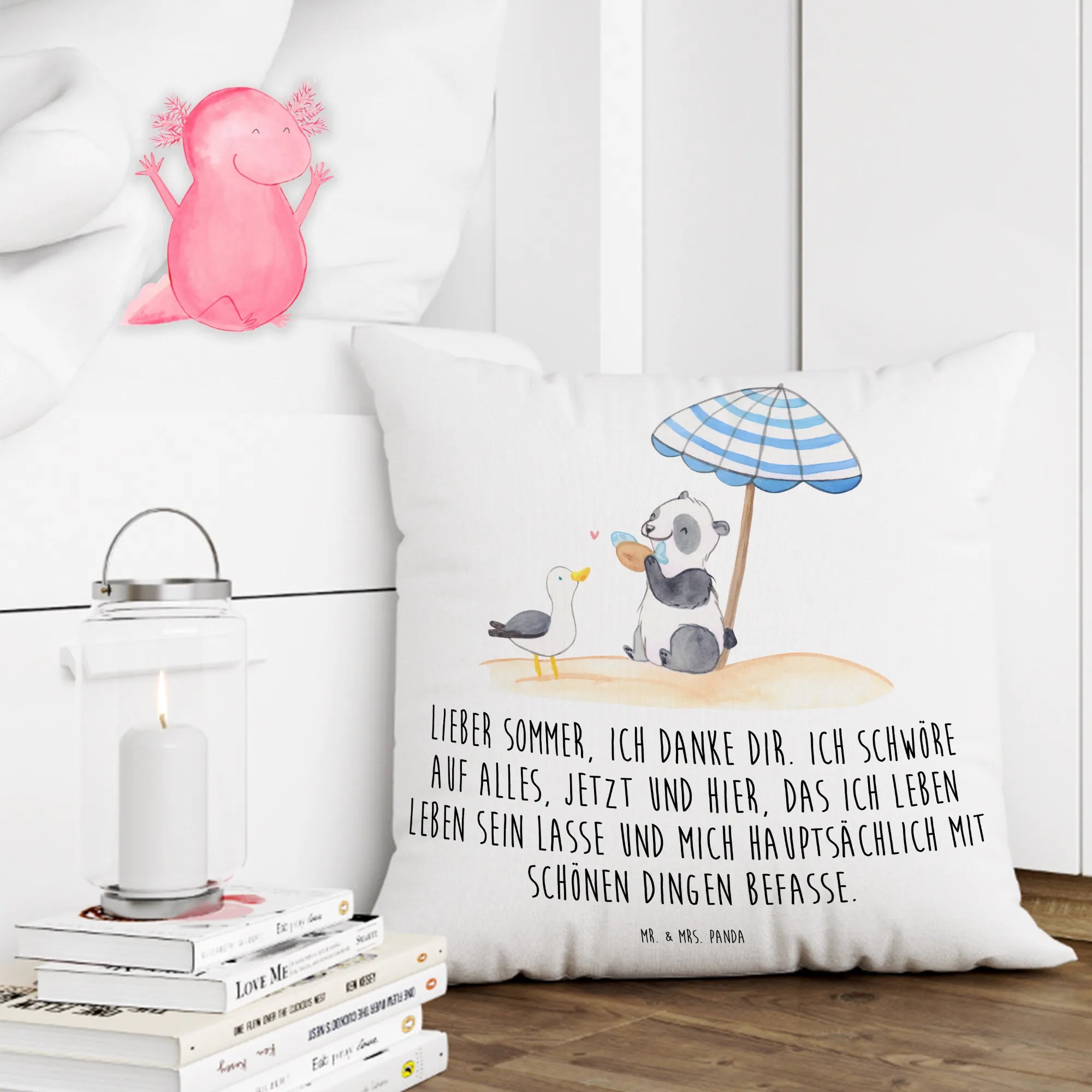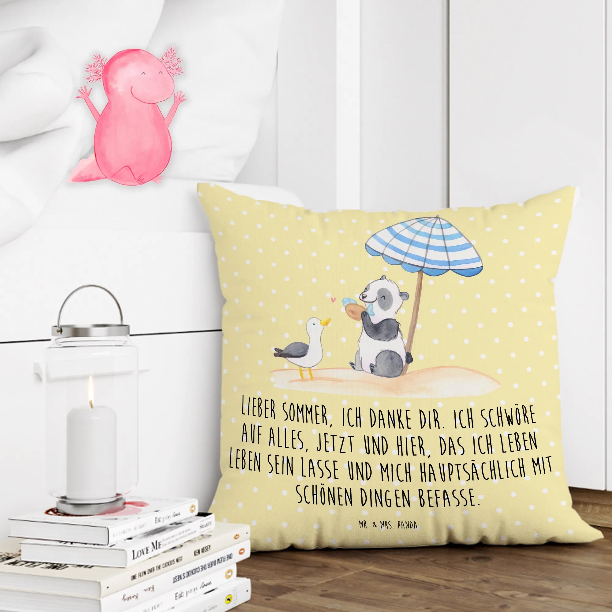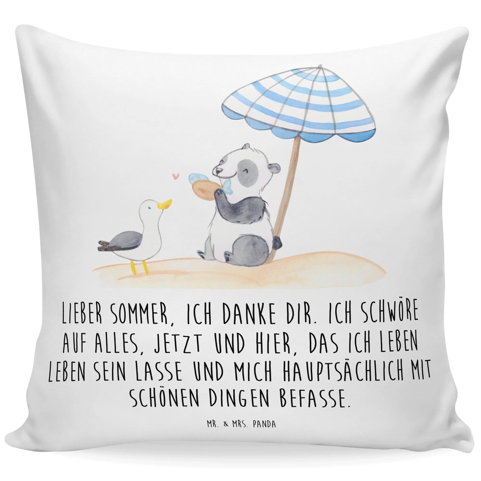 Das 40x40 Kissen von Mr. & Mrs. Panda ist das perfekte Accessoire für dein Zuhause, besonders in der warmen Jahreszeit! Es bringt Sommergefühle in jeden Raum und ist ein toller Blickfang. Bedruckt mit dem wunderbaren Slogan "Lieber Sommer, ich danke dir..." schenkt es dir und deinen Gästen ein Lächeln und erinnert dich an all die wunderschönen Momente, die der Sommer mit sich bringt.