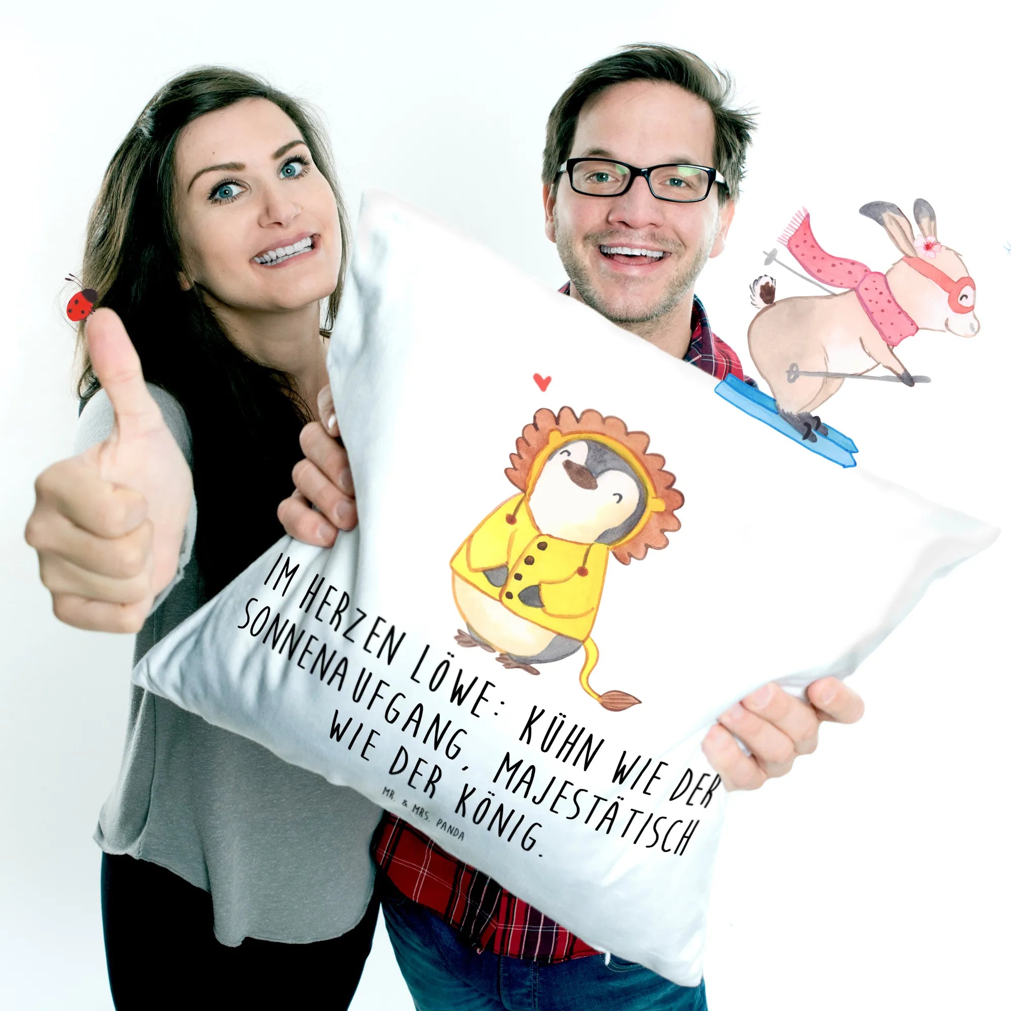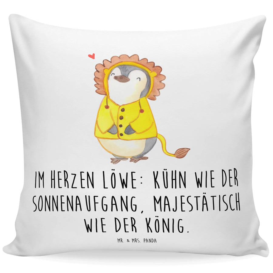 Entdecke das zauberhafte 40x40 Kissen von Mr. & Mrs. Panda mit dem wunderschönen Löwen-Motiv aus der Kollektion Sternzeichen! Dieses Dekokissen ist nicht nur ein echter Hingucker, sondern auch das perfekte Geschenk für alle Löwen-Geborenen. Der flauschige Kissenbezug ist mit dem Slogan "Im Herzen Löwe: Kühn wie der Sonnenaufgang, majestätisch wie der König" versehen und fängt das stolze Wesen des Löwen wunderbar ein.