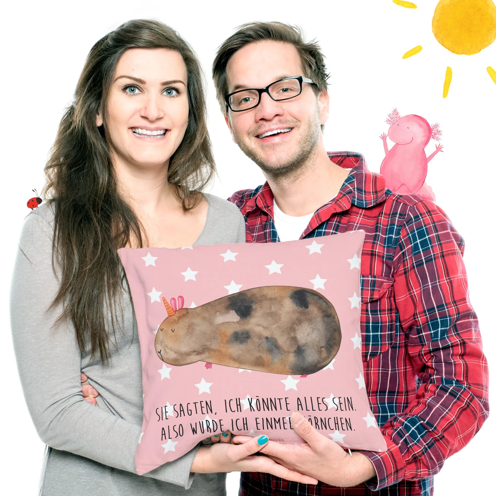 Das 40x40 Kissen mit dem einzigartigen Motiv "Meerhörnchen" aus der Einhorn-Kollektion von Mr. & Mrs. Panda ist das perfekte Geschenk für alle, die die magische Welt der Einhörner und die süßen Meerschweinchen lieben. Mit seinem liebevoll gestalteten Design und dem sprudelnden Spruch "Sie sagten, ich könnte alles sein. Also wurde ich ein Meerhörnchen." bringt dieses Kissen den Zauber und die Freude direkt in dein Zuhause.
