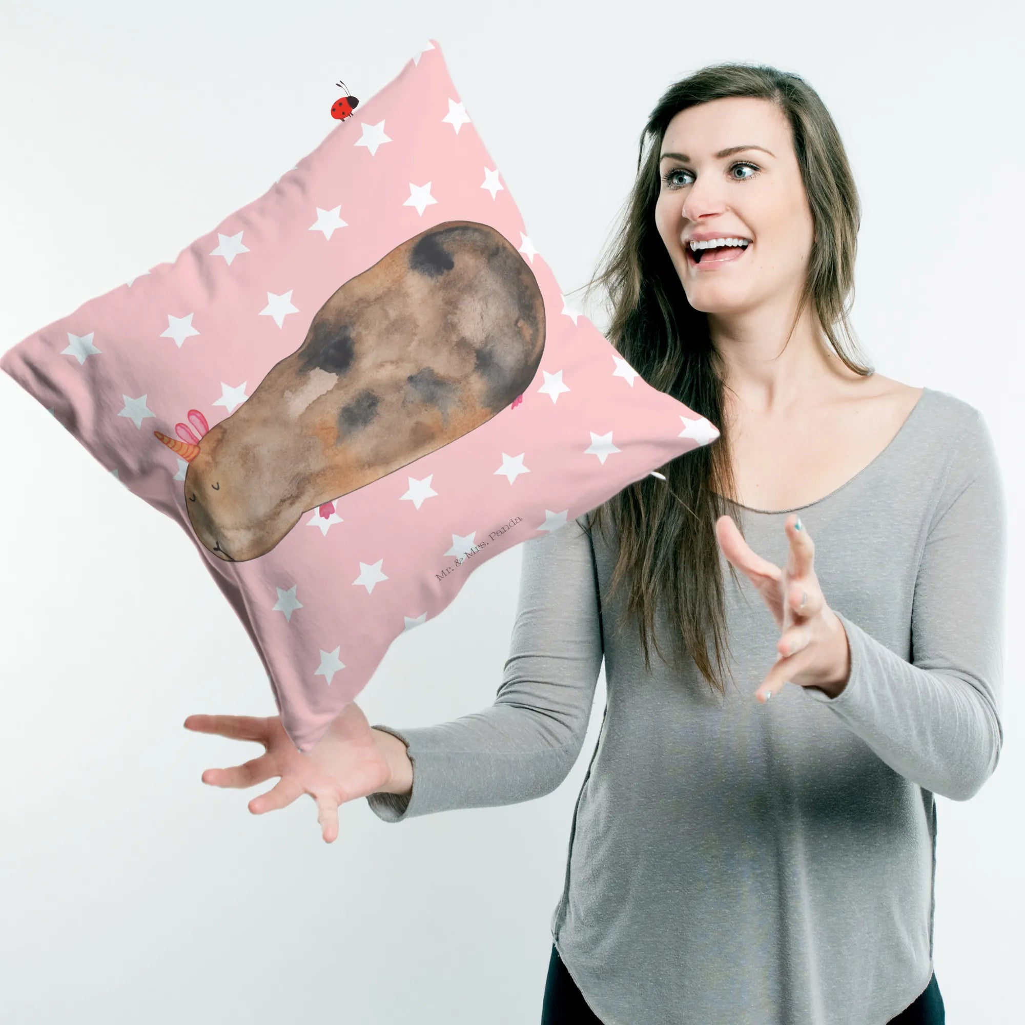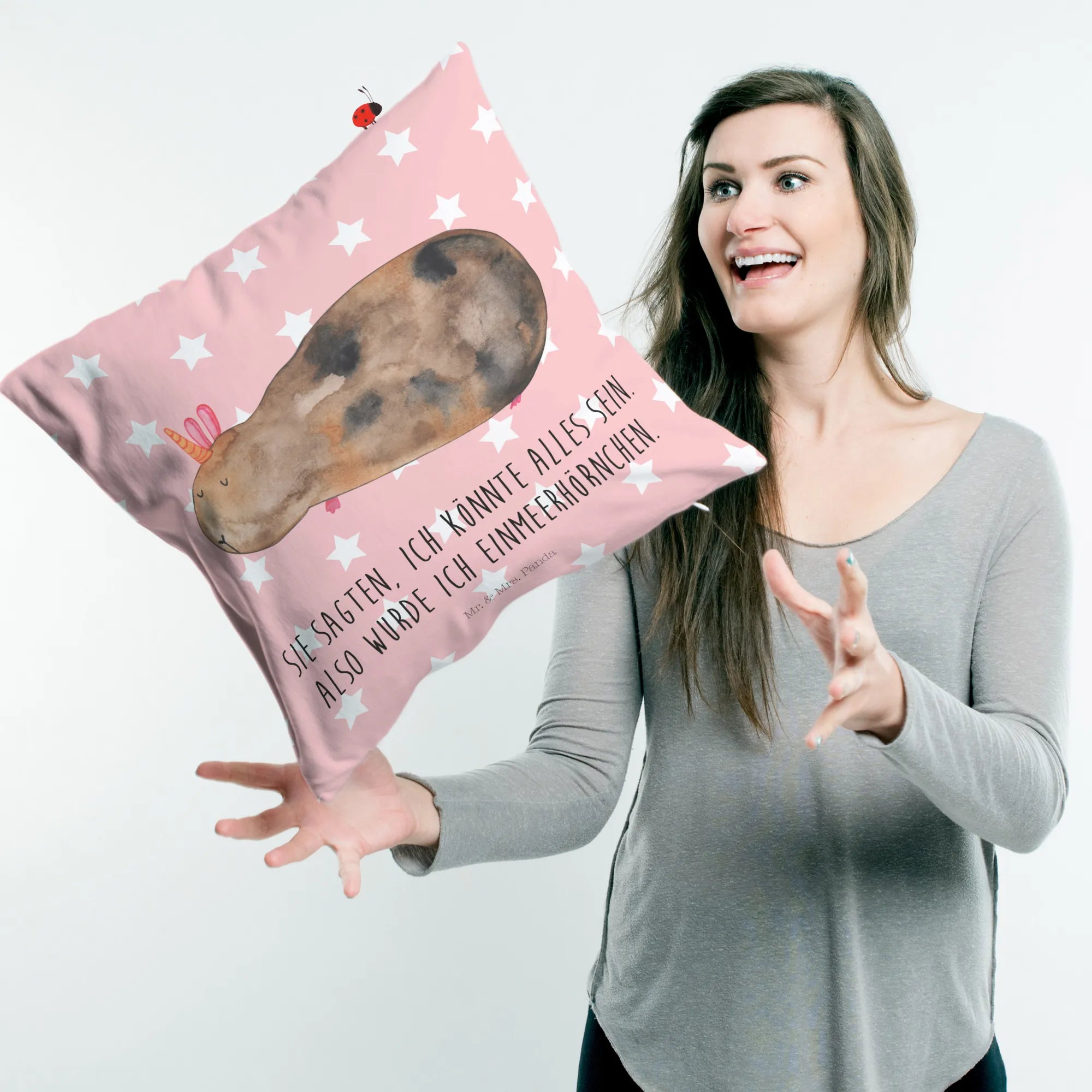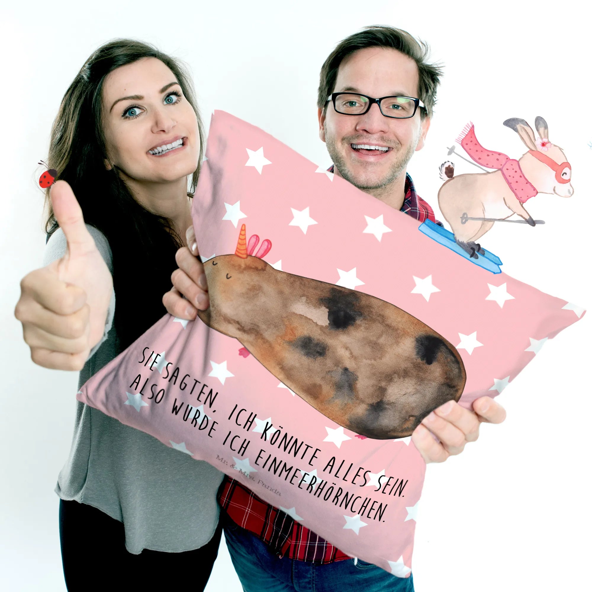 Wenn du auf der Suche nach einem einzigartigen Geschenk für einen Geburtstag, ein Fest oder einfach nur so bist, wird dieses Kissen die Herzen deiner Liebsten im Sturm erobern. Alle Designs von Mr. & Mrs. Panda sind handgezeichnet und zeugen von viel Liebe zum Detail. Verschenke Freude und Kuschelkomfort mit diesem zauberhaften Kissen – ein wahrhaft magisches Geschenk!