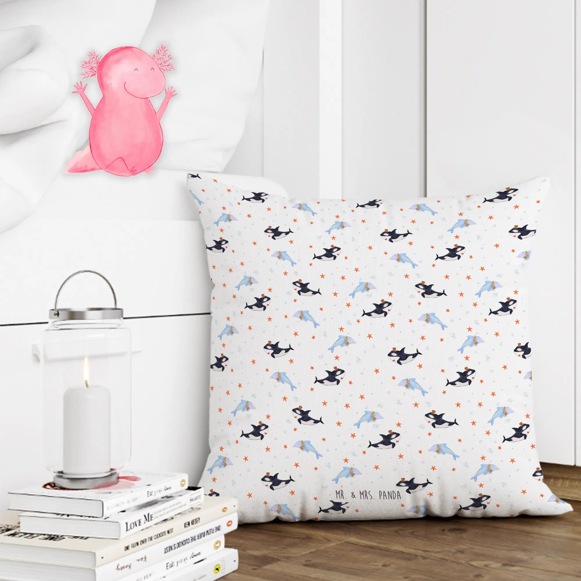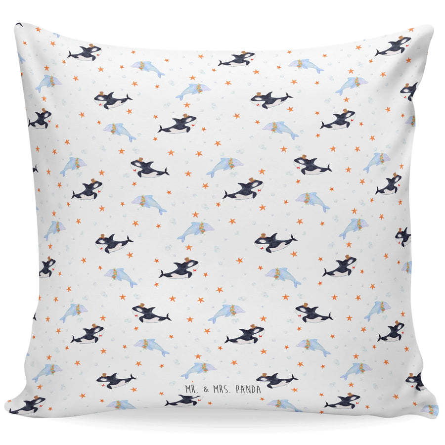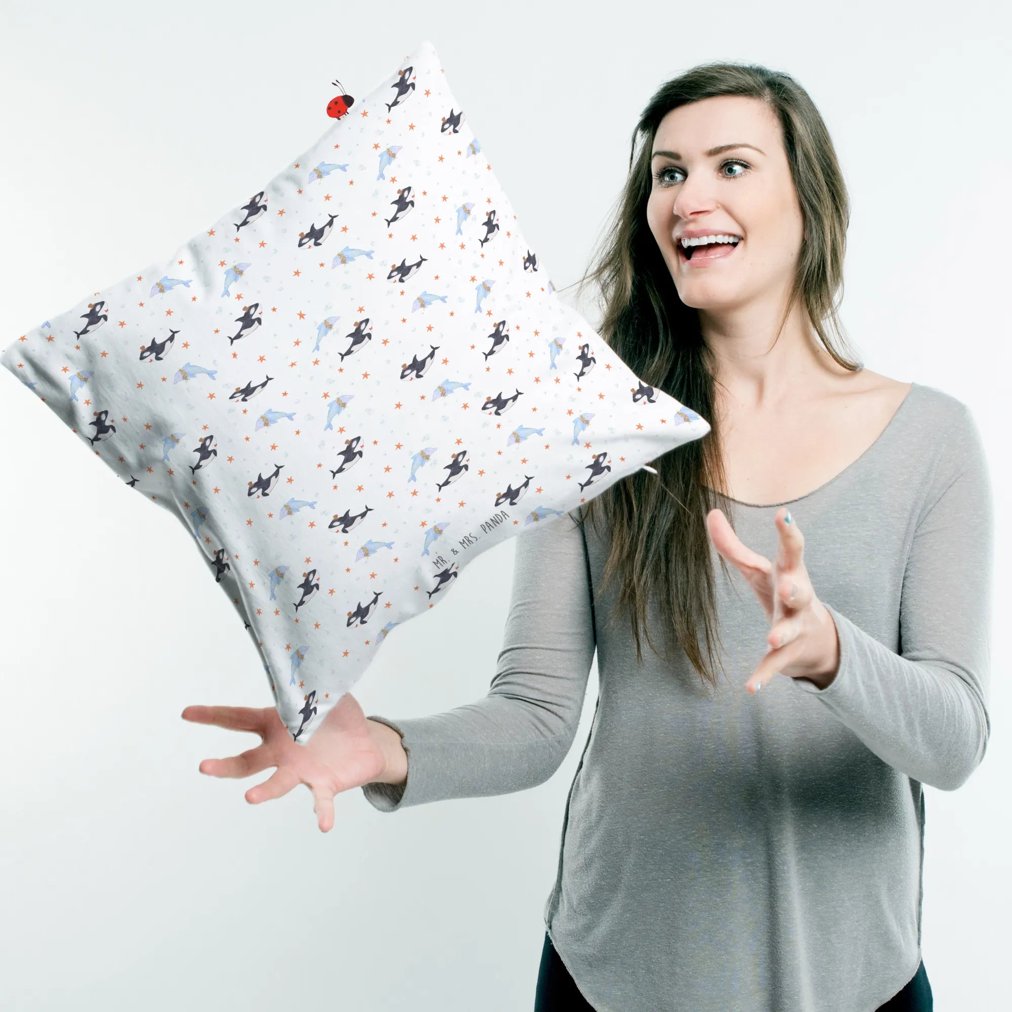 Entdecke das zauberhafte 40x40 Kissen mit dem unglaublichen Orca Zylinder aus der Meerestiere Kollektion von Mr. & Mrs. Panda!