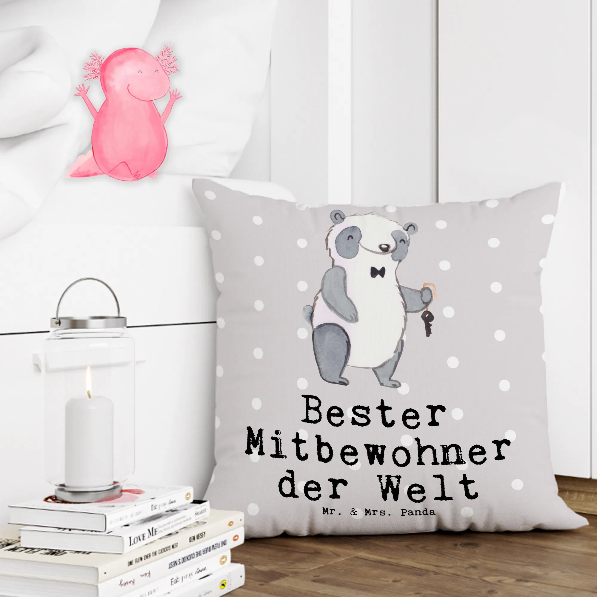 40x40 Kissen Panda Bester Mitbewohner der Welt - Weiß