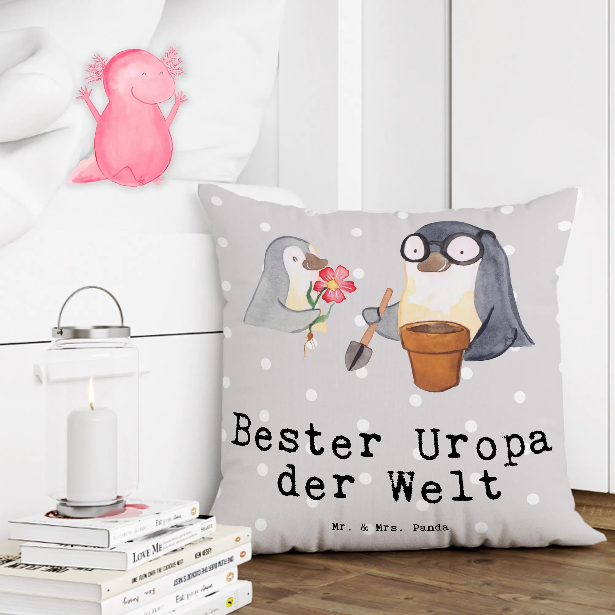 Verschenke ein Stück Liebe mit dem einzigartigen Kissen "Bester Uropa der Welt" von Mr. & Mrs. Panda! Dieses zauberhafte 40x40 Kissen ist nicht nur ein wunderbares Dekorationsstück für das Wohnzimmer oder das Schlafzimmer, sondern auch ein ganz besonderes Dankeschön für den besten Großvater, den man sich vorstellen kann.