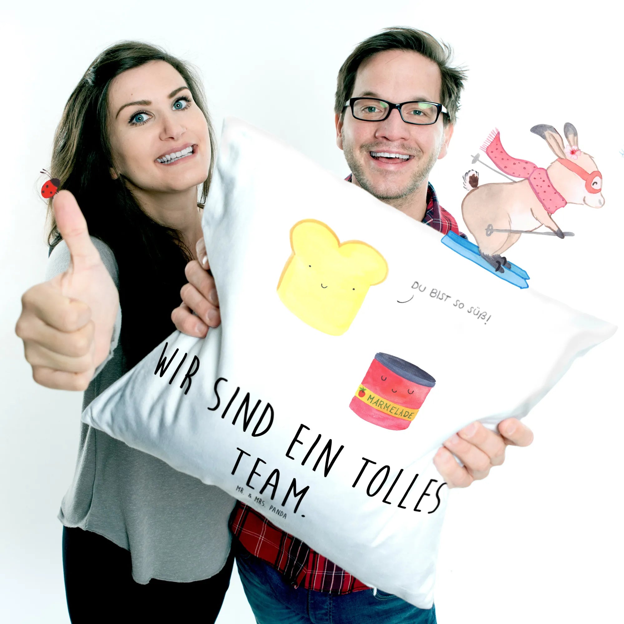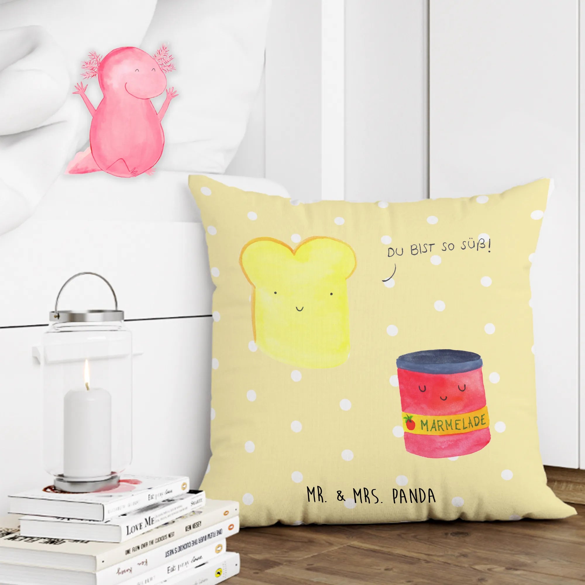 Stells dir vor: ein Toast und eine Marmelade, die füreinander bestimmt sind! Mit einem charmanten Design, das von Mrs. Panda liebevoll mit Aquarell gezeichnet wurde, ist dieses Kissen ein ideales Dekorationselement für dein Sofa, Bett oder als gemütlicher Begleiter im Sessel. Egal ob für dich selbst oder als Geschenk für einen lieben Freund – dieses Kissen macht überall eine gute Figur.