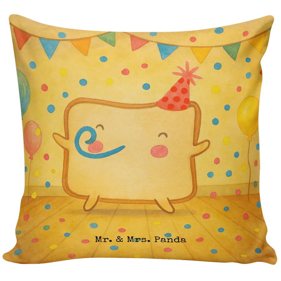 Verschenke Nähe, Freude und ein bisschen Party-Stimmung – mit dem Mr. & Mrs. Panda Toast Party 40x40 Kissen, dem kleinen, großen Geschenk für deine Liebsten.