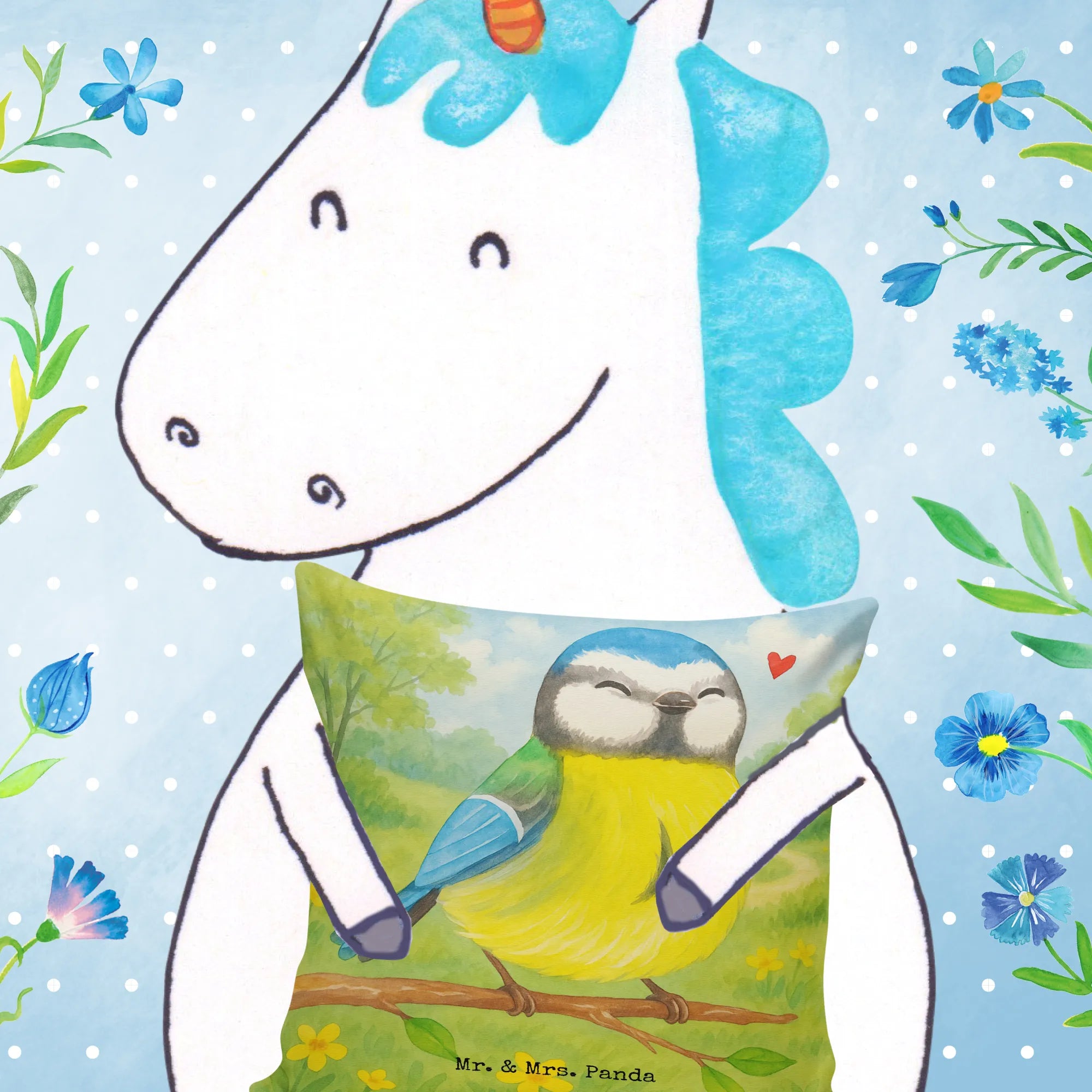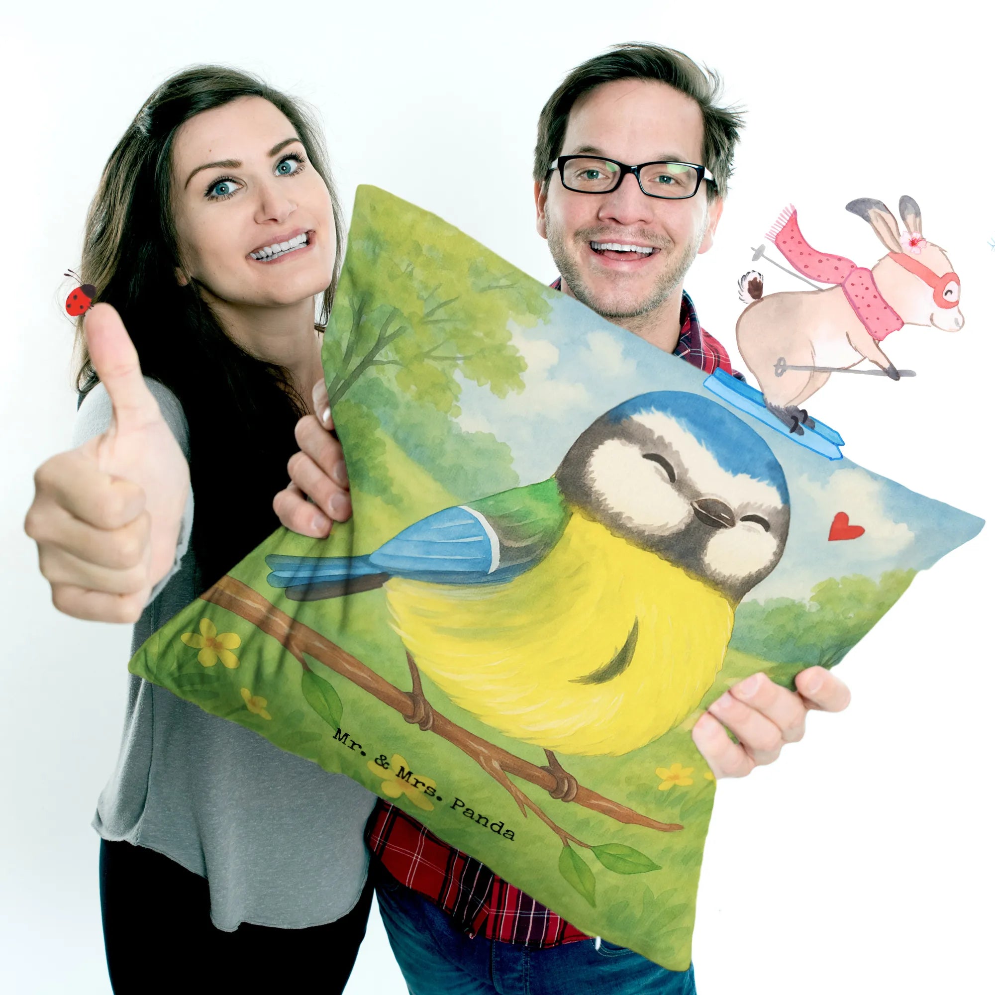 Mit dem zauberhaften 40x40 Kissen Vogel Blaumeise aus der Ostern - Kollektion von Mr. & Mrs. Panda holst du dir ein Stück Frühling aufs Sofa. Die liebevoll gezeichnete Blaumeise sitzt fröhlich auf einem Ast und verleiht deinem Wohnbereich sofort Leichtigkeit und gute Laune. Dieses Dekokissen eignet sich wunderbar als Sofakissen, Zierkissen oder gemütliches Kopfkissen.