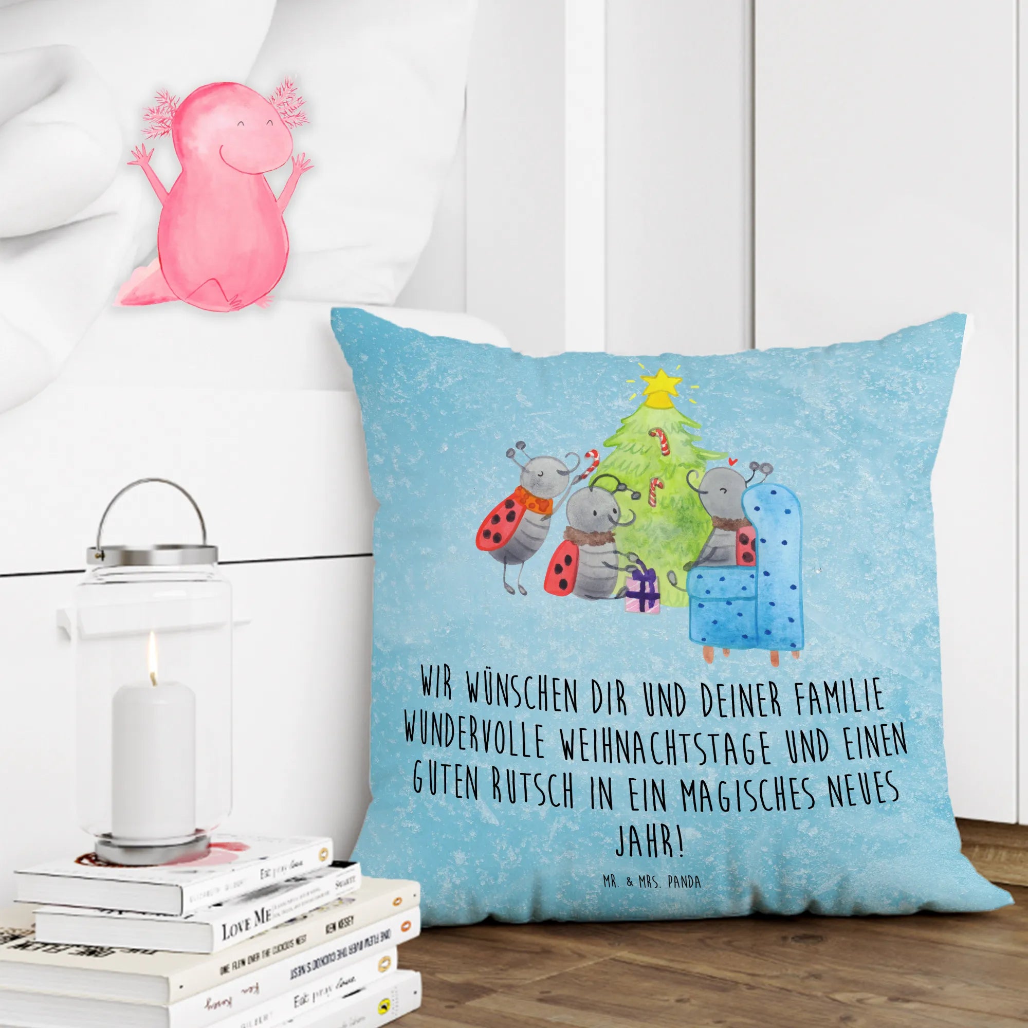 Das perfekte Kissen für die kalte Jahreszeit! Die Kissenhülle "Weihnachten Smörle" von Mr. & Mrs. Panda ist ein absoluter Hingucker und bringt Weihnachtsstimmung in dein Zuhause. Mit einem zauberhaften Motiv zeigt die Kissenhülle glückliche Marienkäfer, die einen Tannenbaum schmücken und Geschenke auspacken. Diese fröhlichen Wesen versetzen dich in eine gemütliche, märchenhafte Stimmung, ganz wie in der Kindheit.
