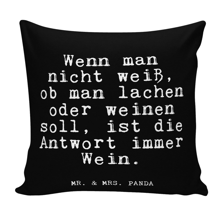 Verschenke Freude und Gemütlichkeit mit unserem bezaubernden 40x40 Kissen von Mr. & Mrs. Panda! Dieses liebevoll gestaltete Kissen ist nicht nur ein echter Hingucker, sondern auch ein hervorragendes Komfort-Element für dein Zuhause. Es trägt den witzigen Spruch: "Wenn man nicht weiß, ob man lachen oder weinen soll, ist die Antwort immer Wein." – genau das richtige Motto für alle, die das Leben mit einem Augenzwinkern betrachten. Ob für Dich selbst oder als Geschenk für Deine Freundin, Deinen Freund oder den Partner – dieses Kissen ist die perfekte Wahl für jede Gelegenheit!
