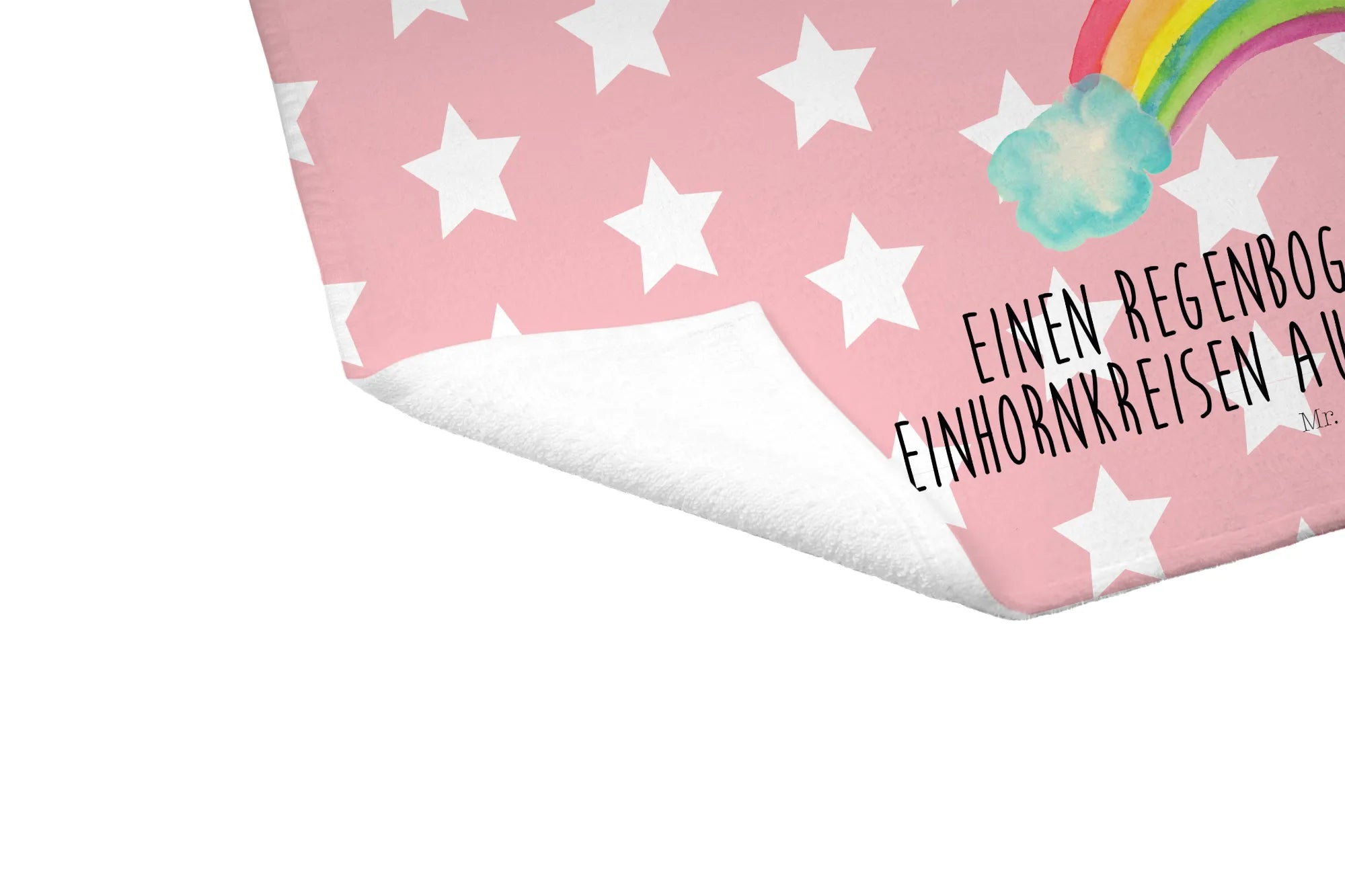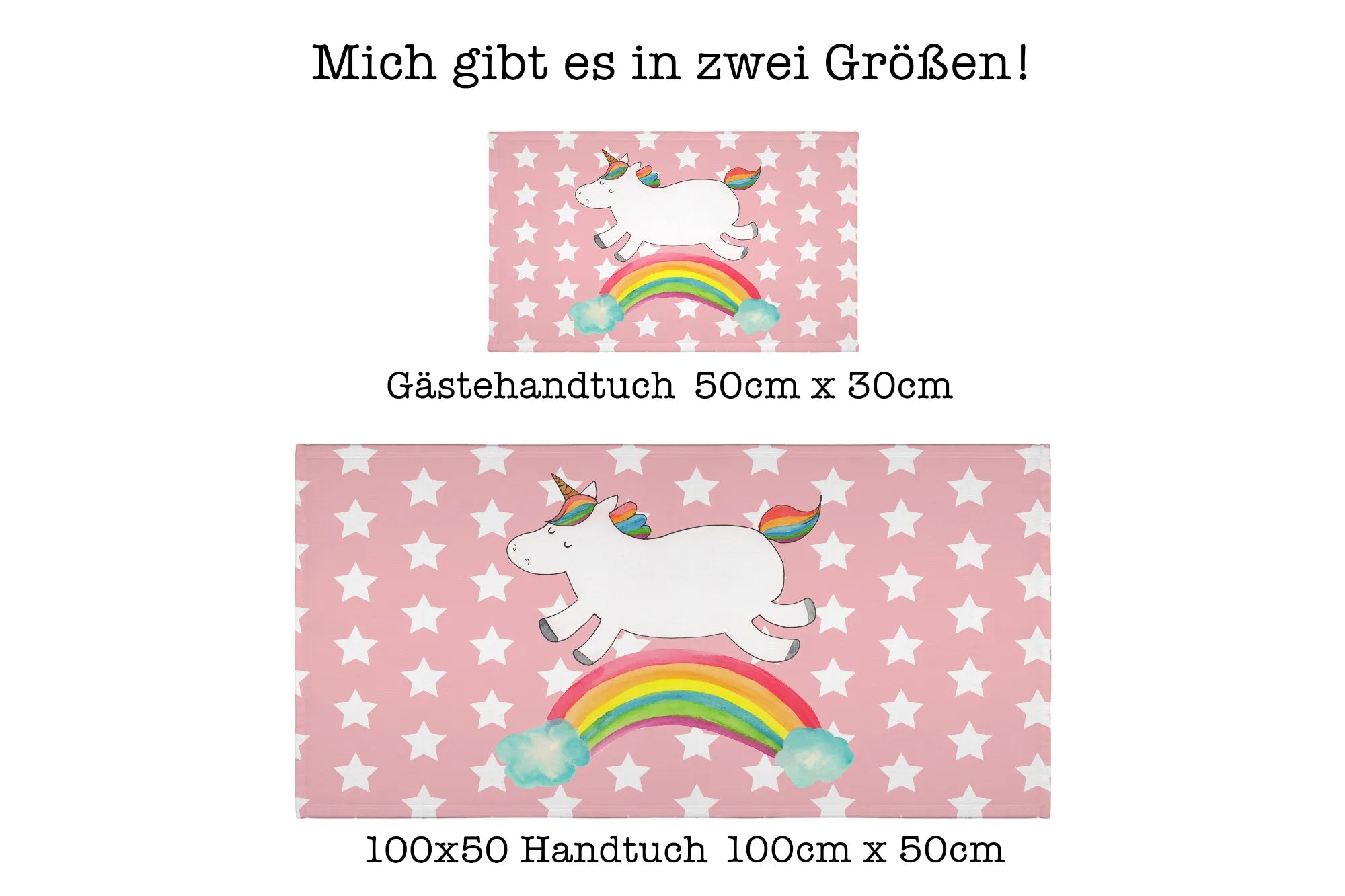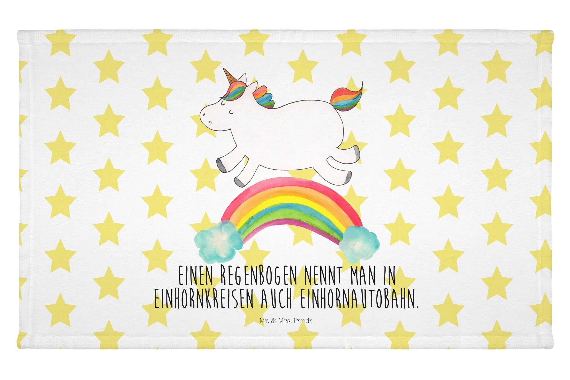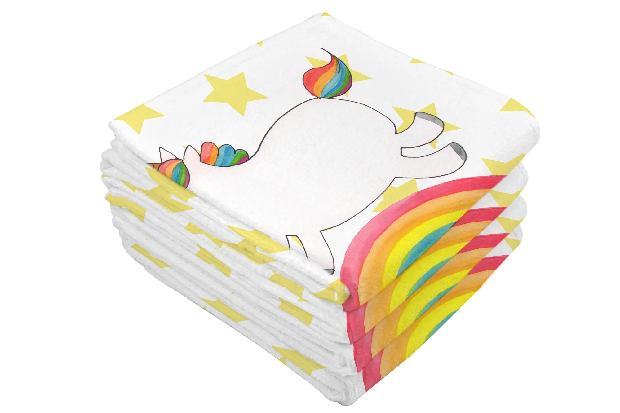 Suchst du das perfekte Geschenk für Freunde oder Familie, die die magische Welt der Einhörner lieben? Unser zauberhaftes Gästehandtuch mit dem aufmunternden Motiv "Einhorn Regenbogen" aus der Einhorn - Kollektion von Mr. & Mrs. Panda ist genau das Richtige!