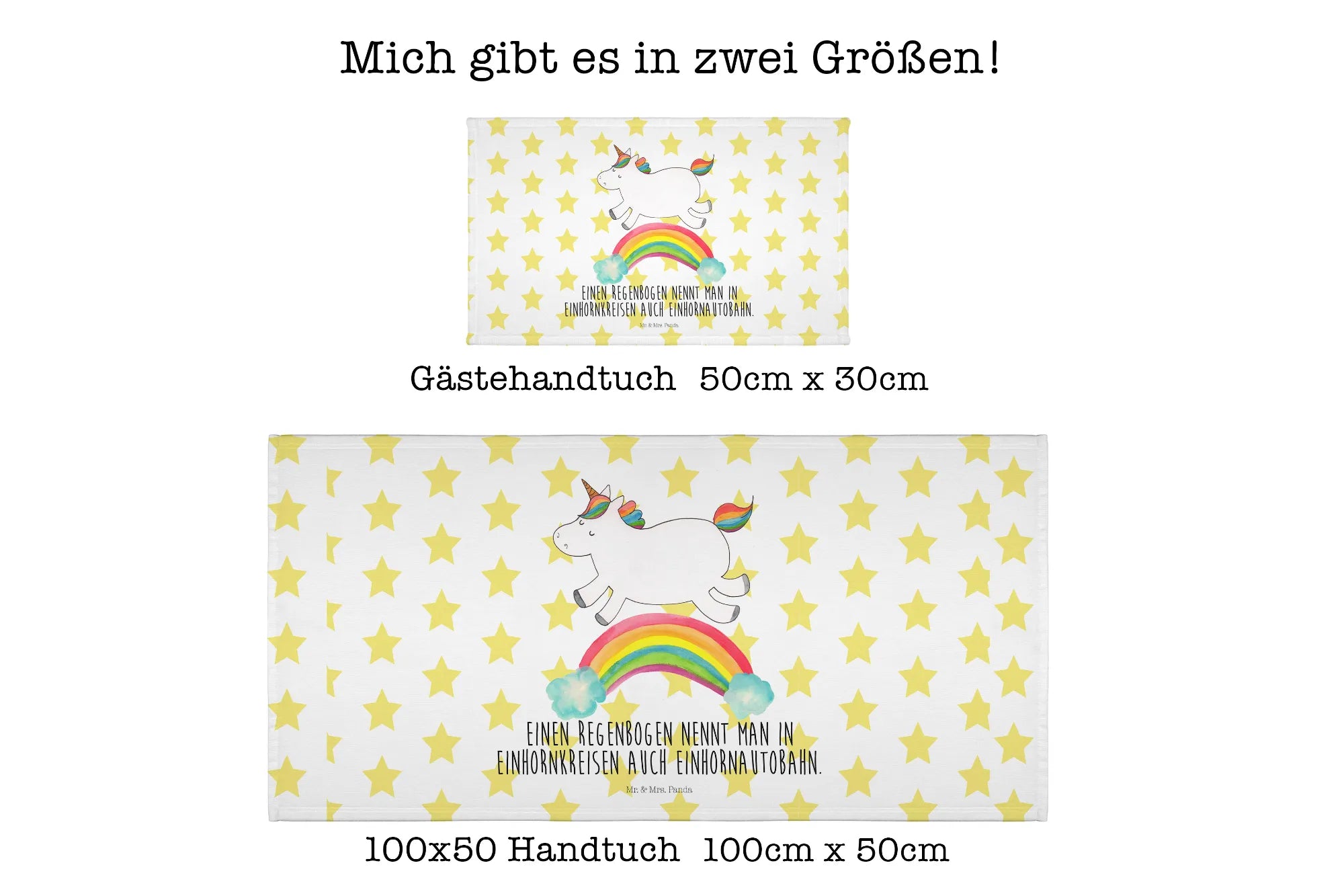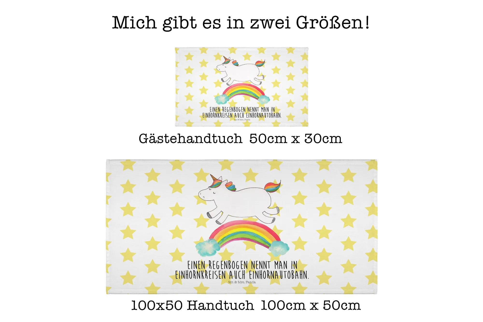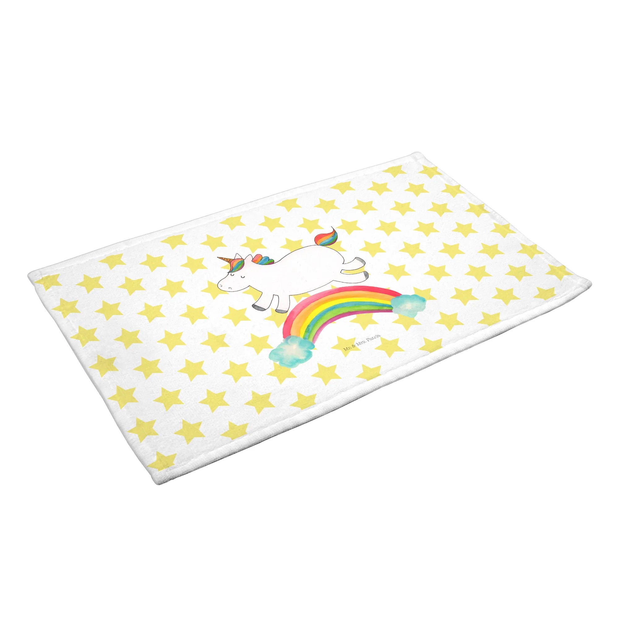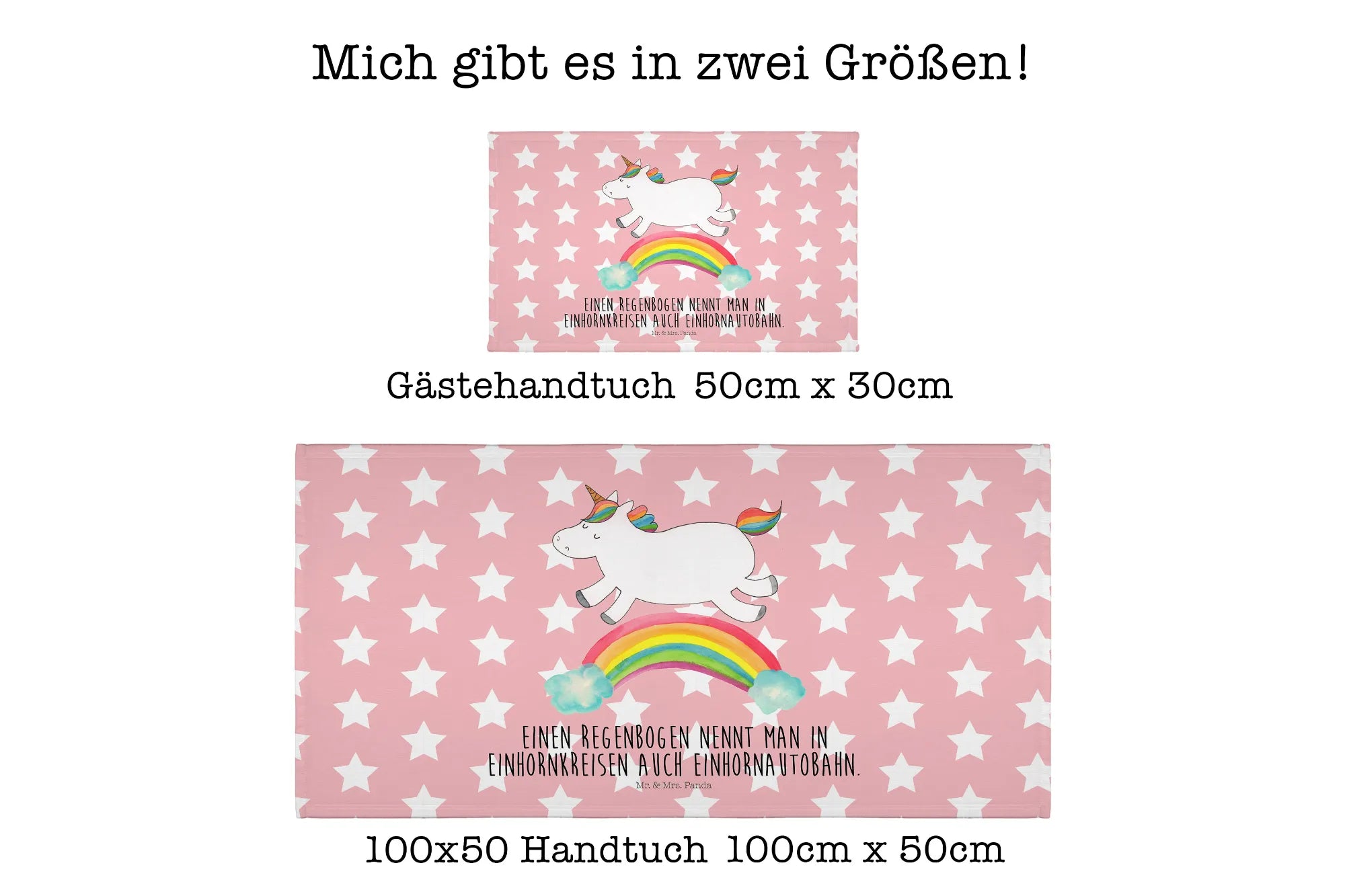 Suchst du das perfekte Geschenk für Freunde oder Familie, die die magische Welt der Einhörner lieben? Unser zauberhaftes Gästehandtuch mit dem aufmunternden Motiv "Einhorn Regenbogen" aus der Einhorn - Kollektion von Mr. & Mrs. Panda ist genau das Richtige!