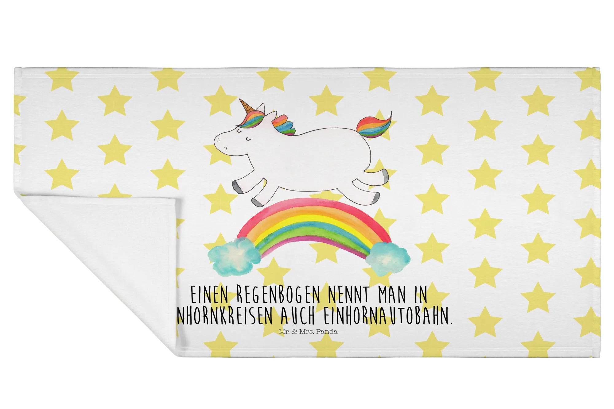 Du suchst nach dem perfekten Geschenk für Kinder oder Einhorn-Fans? Unser super weiches 50 x 100 Handtuch mit dem zauberhaften Einhorn-Regenbogen-Motiv aus der Einhorn-Kollektion von Mr. & Mrs. Panda ist da genau richtig!