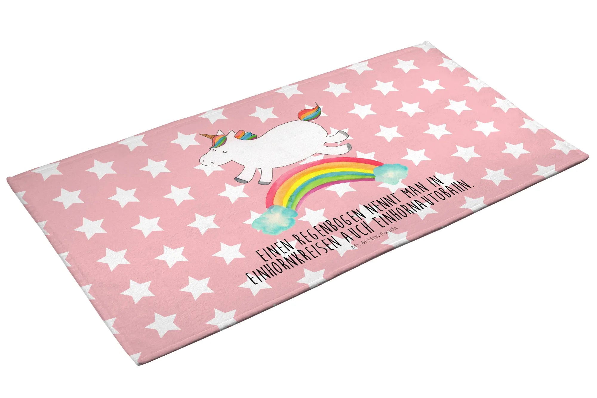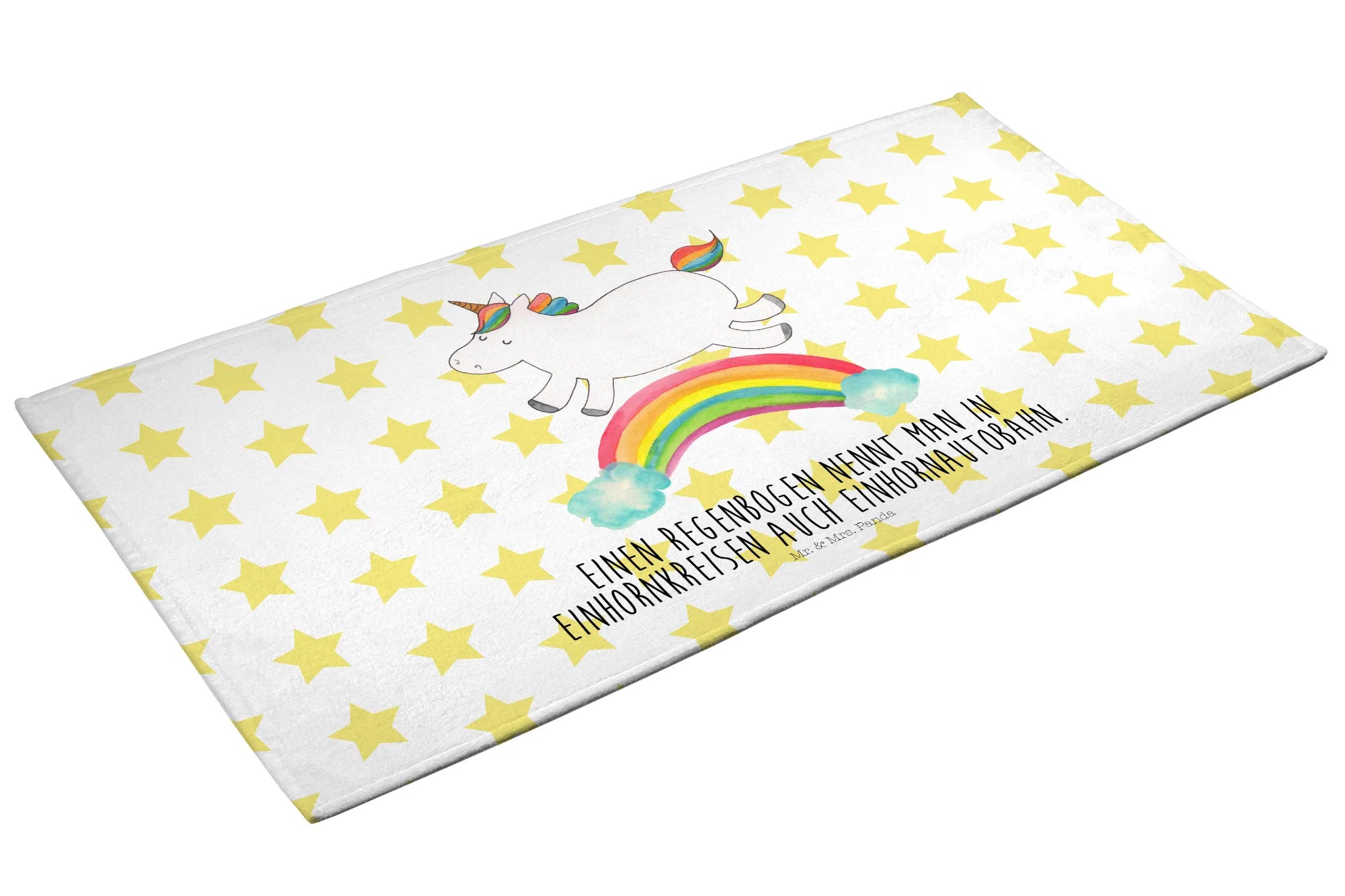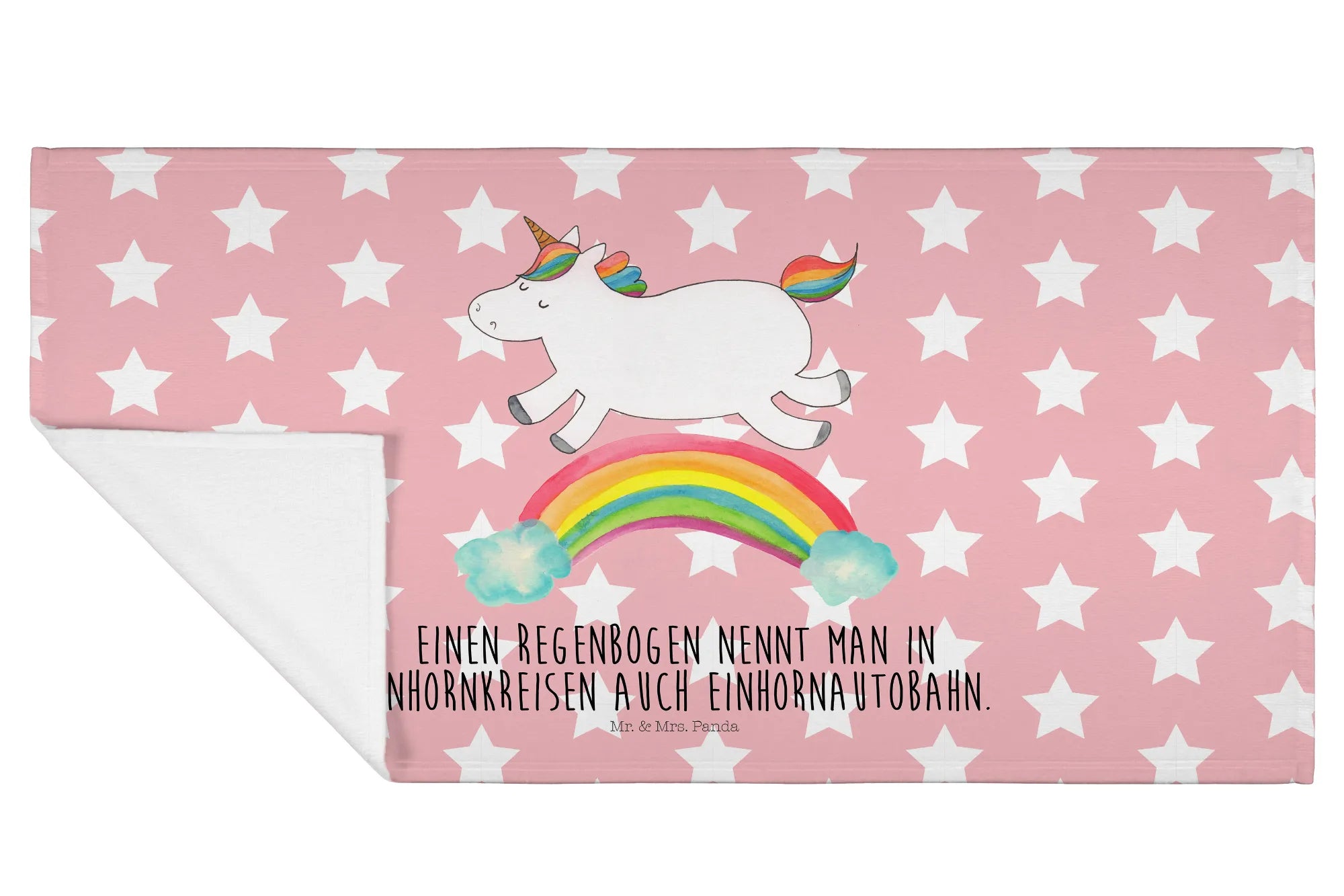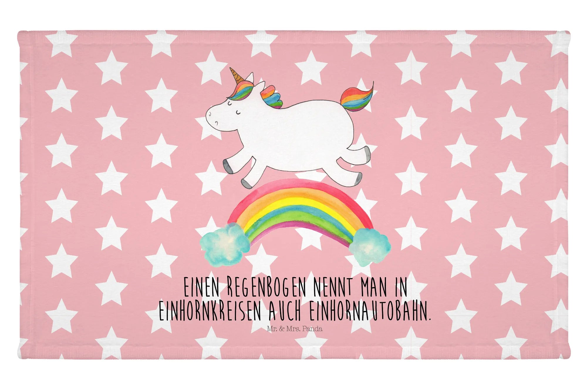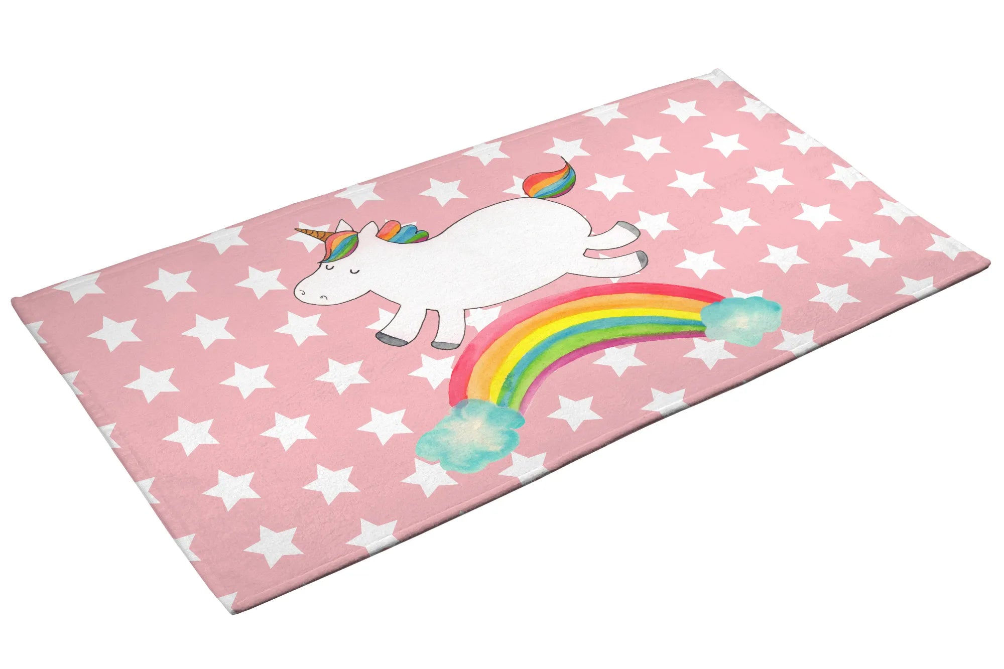 Du suchst nach dem perfekten Geschenk für ein Einhorn-Liebhaber oder einfach nach einer tollen Ergänzung für dein Badezimmer? Das flauschige 50 x 100 Handtuch mit dem zauberhaften Einhorn-Regenbogen-Motiv aus der Einhorn-Kollektion von Mr. & Mrs. Panda ist genau das, was du brauchst! Dieses hochwertige Handtuch ist nicht nur ein praktisches Accessoire, sondern bringt auch eine große Portion Freude in jeden Raum. Mit seinen strahlenden Farben und dem liebevoll gestalteten Motiv erhellt es jeden Tag und sorgt für gute Laune. Die kleine Einhornfigur, die fröhlich über einen Regenbogen flitzt, stellt sicher, dass du und deine Kinder beim Abtrocknen immer ein Lächeln im Gesicht habt.