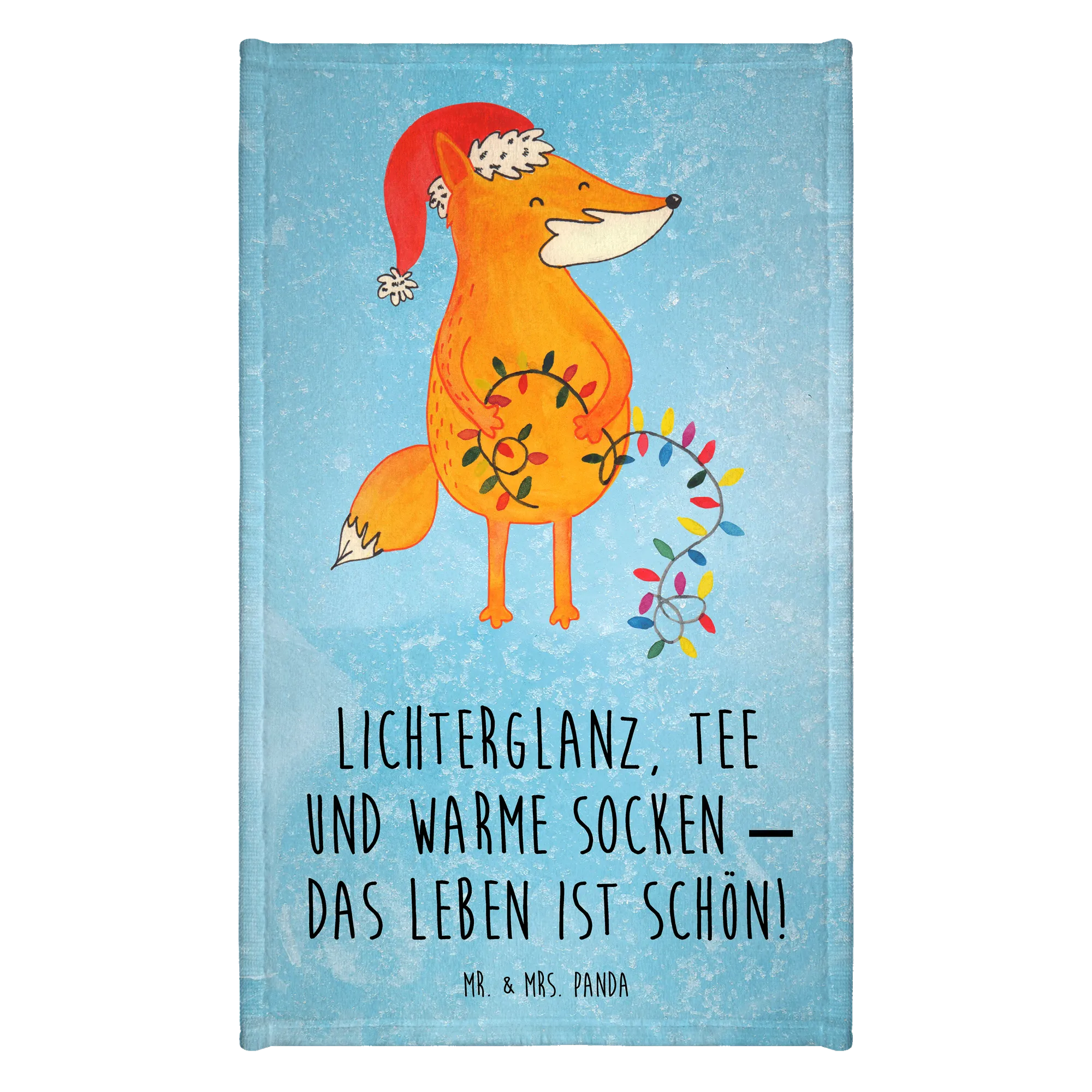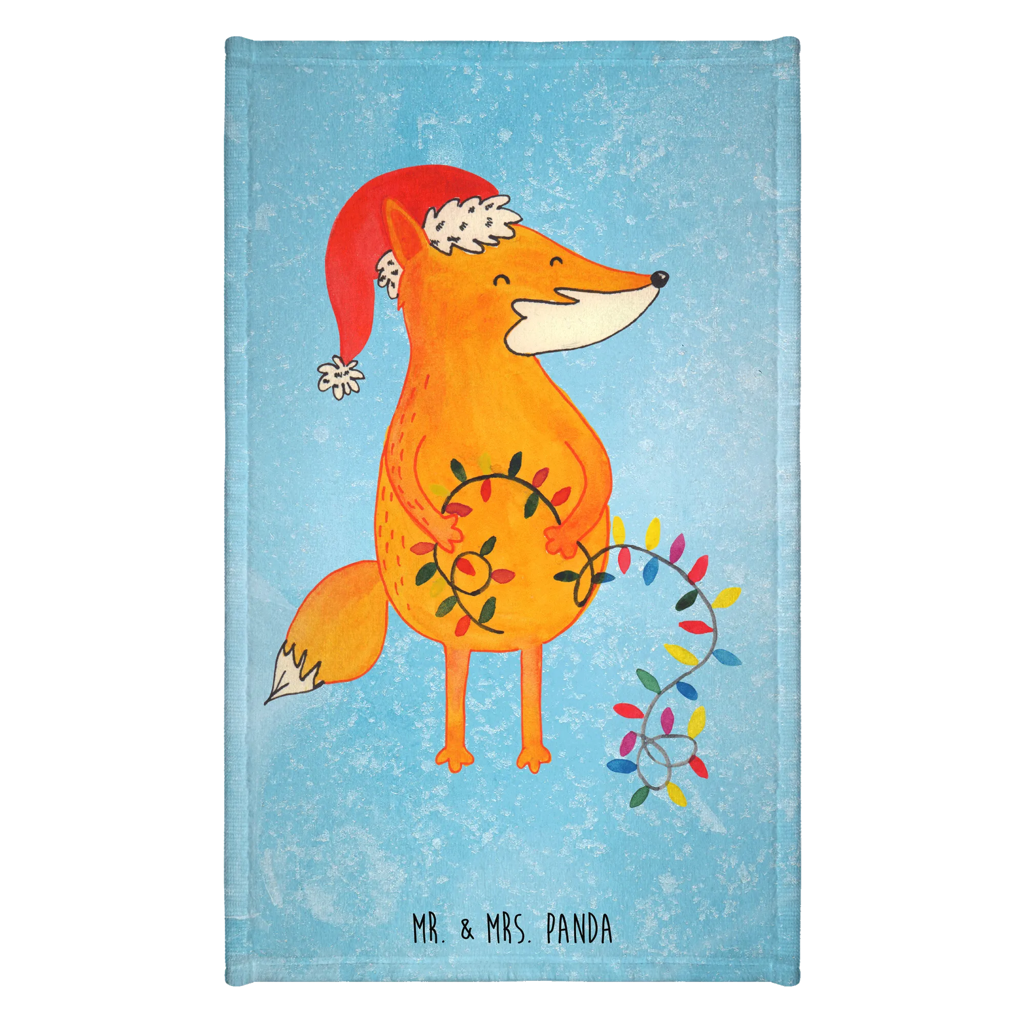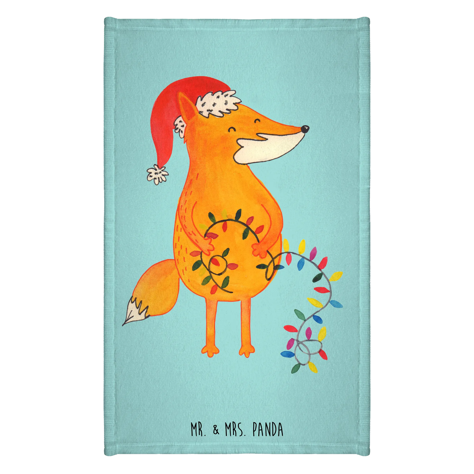 Das Gästehandtuch "Fuchs Weihnachten" aus der zauberhaften Winter Kollektion von Mr. & Mrs. Panda ist das perfekte Geschenk für die Weihnachtszeit. Es bringt nicht nur Freude ins Badezimmer, sondern verbreitet auch eine festliche Stimmung. Mit einem freudig wirkenden Fuchs, der eine weihnachtliche Kappe trägt und mit einer bunten Lichterkette spielt, ist dieses handgezeichnete Design ein echter Hingucker. Der Fuchs in warmen Orange-Tönen wird von zarten, grünen Blättern und roten Beeren umrahmt, die an festliche Girlanden erinnern.