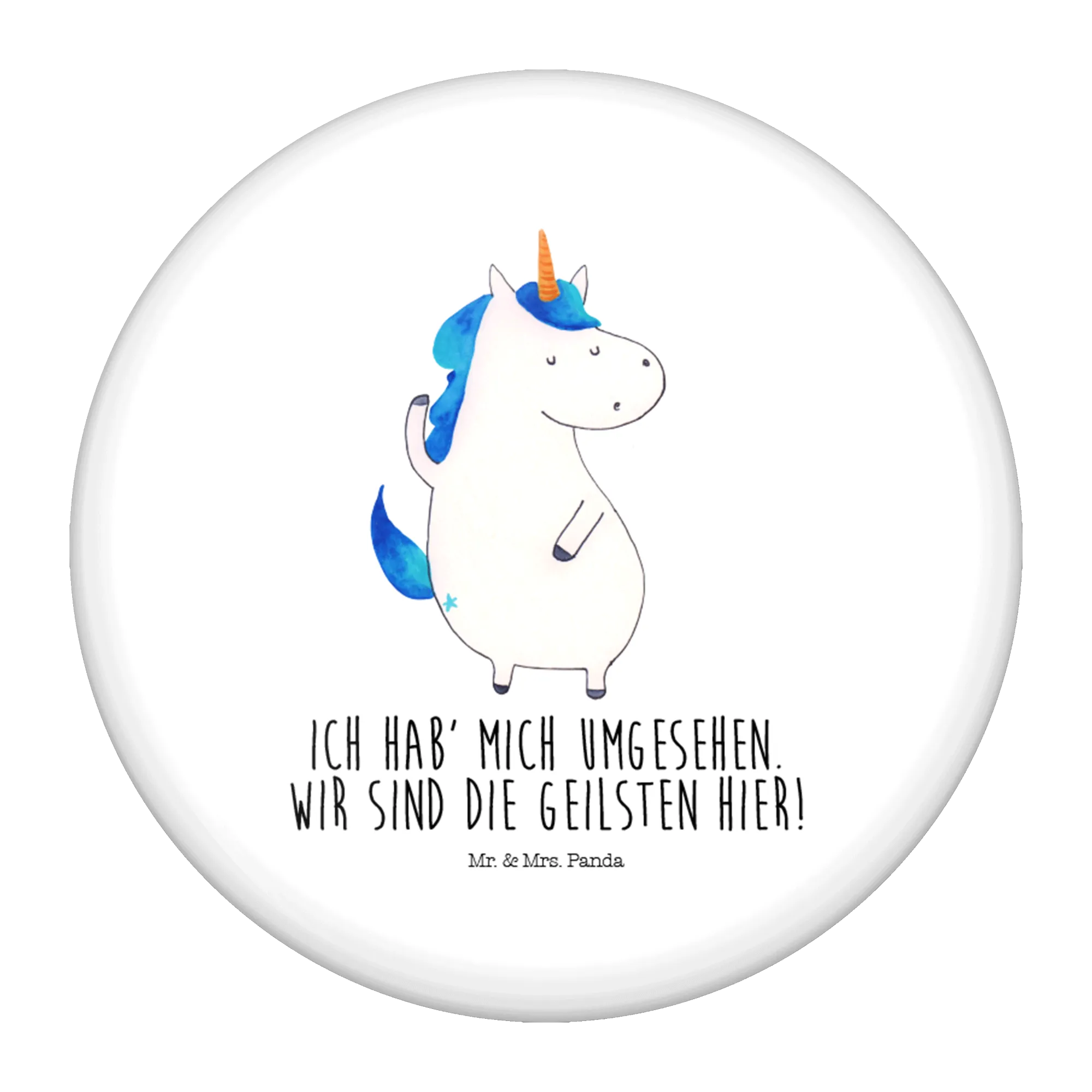 Der Button ist nicht nur schön, sondern auch aus hochwertigem, mattem Papier hergestellt, das für seine intensive Farbwiedergabe bekannt ist. Jedes Motiv wurde von der talentierten Mrs. Panda handgezeichnet. So kannst du sicher sein, dass du ein Unikat erhältst, das mit viel Liebe zum Detail gefertigt wurde. Ob als Deko-Element bei deiner nächsten Feier oder als kreatives Accessoire im Alltag – der 50mm Button Einhorn Mann sorgt immer für gute Laune und positive Vibes.
