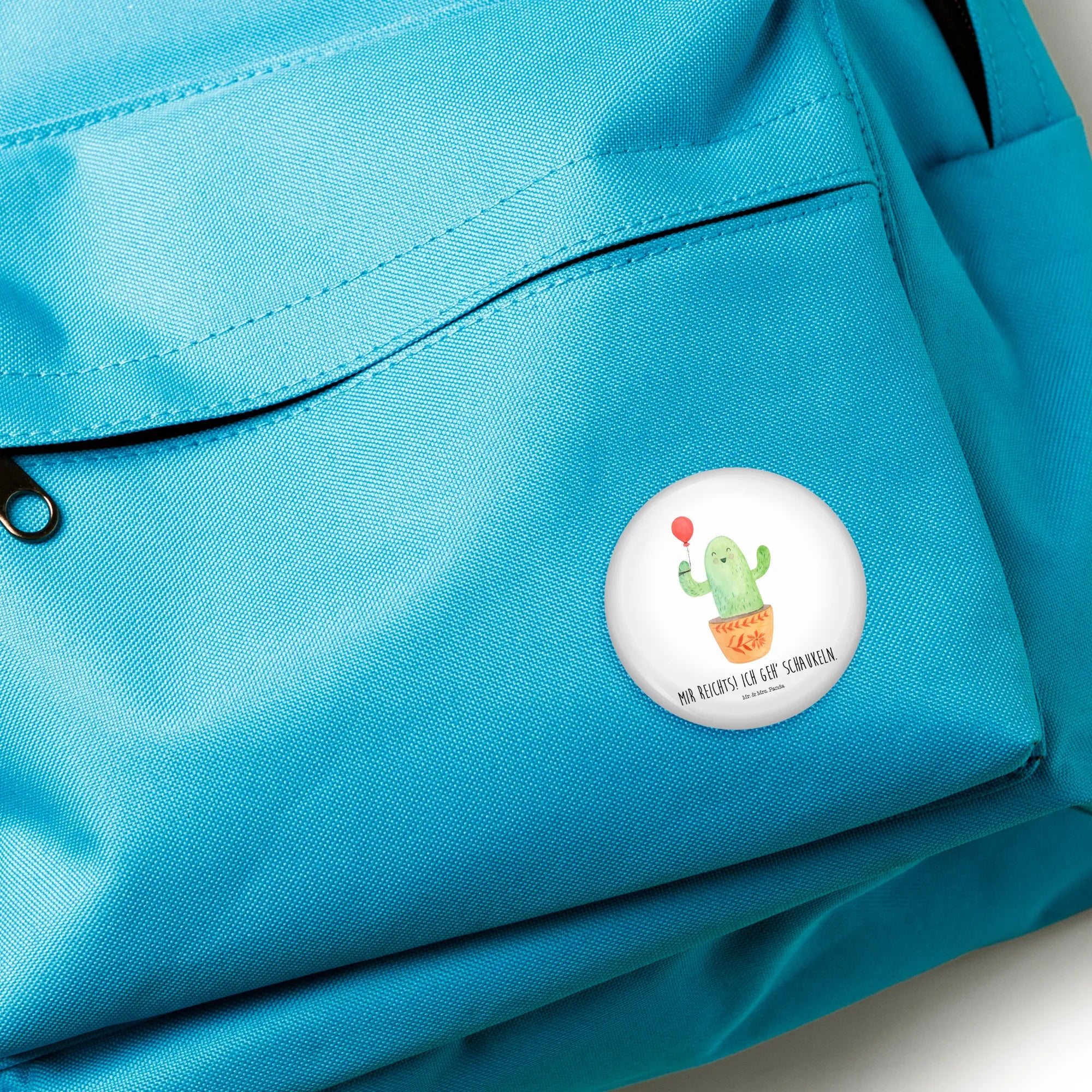 Mit seinem fröhlichen Kaktus, der einen bunten Luftballon hält, zaubert er jedem ein Lächeln ins Gesicht. "Mir reicht’s! Ich geh‘ schaukeln" steht auf diesem tollen Button und bringt den Spruch ideal zur Geltung. Perfekt für all die Lebenshungrigen, die sich eine Auszeit vom stressigen Alltag wünschen.