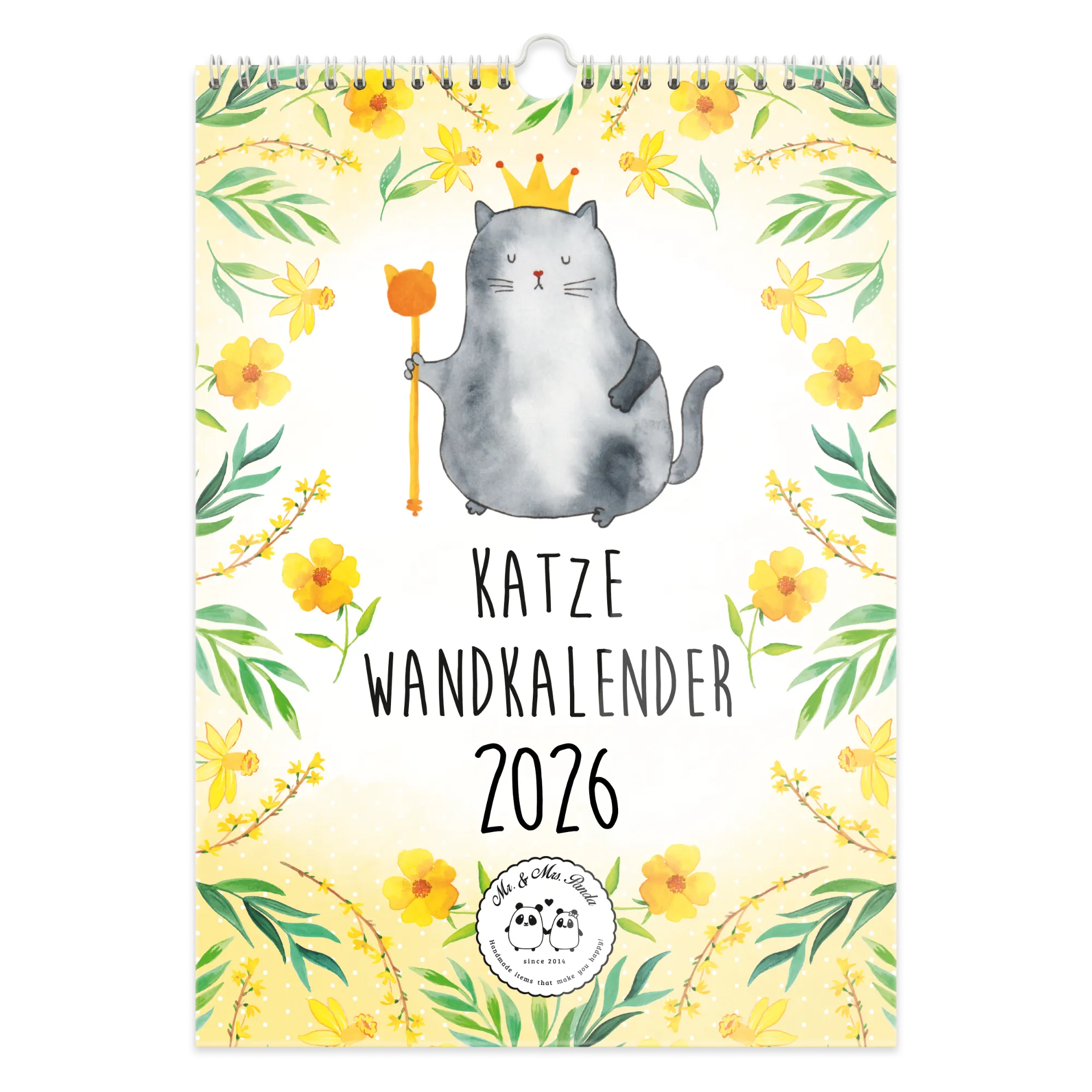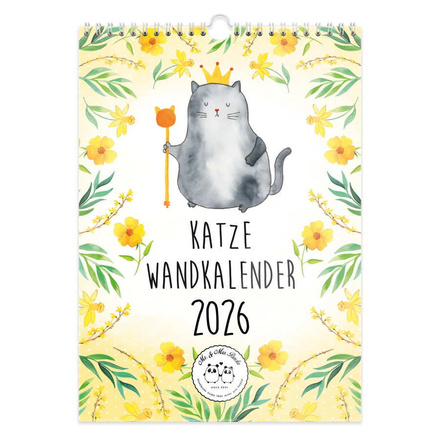 Unser liebevoll gestalteter A3 Wandkalender 2026 aus der Katzen - Kollektion ist der perfekte Mix aus Design Kalender und praktischem Wandplaner. Mit zwölf handgemalten Katzenmotiven und monatlichen, motivierenden Sprüchen von Mrs. Panda begleitet dich dieser Jahreskalender durch jeden Monat und bringt etwas Katzenglück in deinen Alltag.