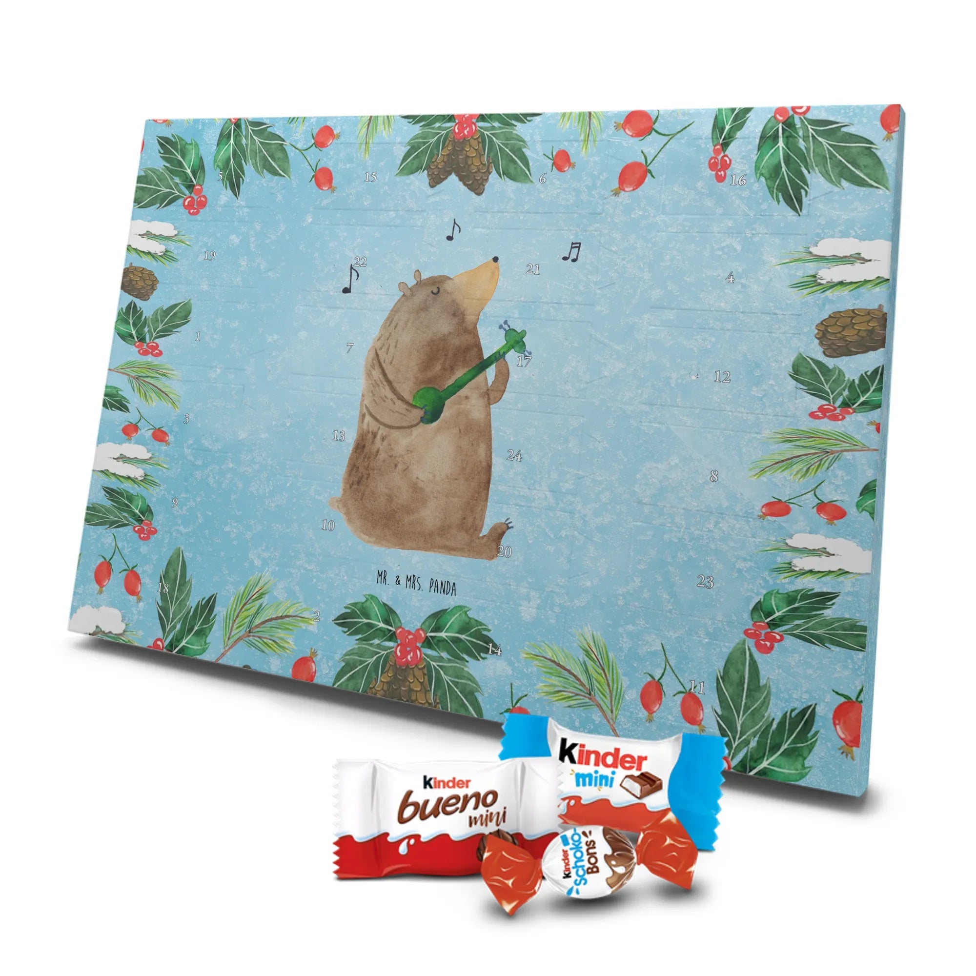 Unser Schokoladen Adventskalender von Mr. & Mrs. Panda bringt Charme und süße Überraschungen in deine Adventszeit. Liebevoll bedruckt mit wunderschönen Motiven & Sprüchen von Mr. & Mrs. Panda, ist dieser Kalender nicht personalisierbar, dafür aber mit hochwertiger Verarbeitung und stimmigem Design. Die brillante Druckqualität mit seidenmatter Oberflächenveredelung verleiht jedem Motiv eine edle Optik, und die bedruckten Seitenflächen runden das Gesamtbild ab. Maße: 355 mm x 245 mm x 11 mm. Eine praktische Besonderheit: kann aufgehängt oder aufgestellt werden – so passt er perfekt in jede Deko. Gefüllt mit Markenname Schokolade: Adventskalender gefüllt mit kinder® Schokolade. Inhalt: kinder® Schoko-Bons, kinder® Bueno mini und kinder® Schokolade mini. Mit 24 kleinen Leckereien hinter den Türchen ist dieser Kalender ideal für Kinder und alle Naschkatzen. Er eignet sich wunderbar als Adventsgeschenk oder als liebevolle Aufmerksamkeit für Kollegen und Freunde. Gönn dir oder anderen eine süße Adventszeit mit diesem bezaubernden Schokoladen Adventskalender!