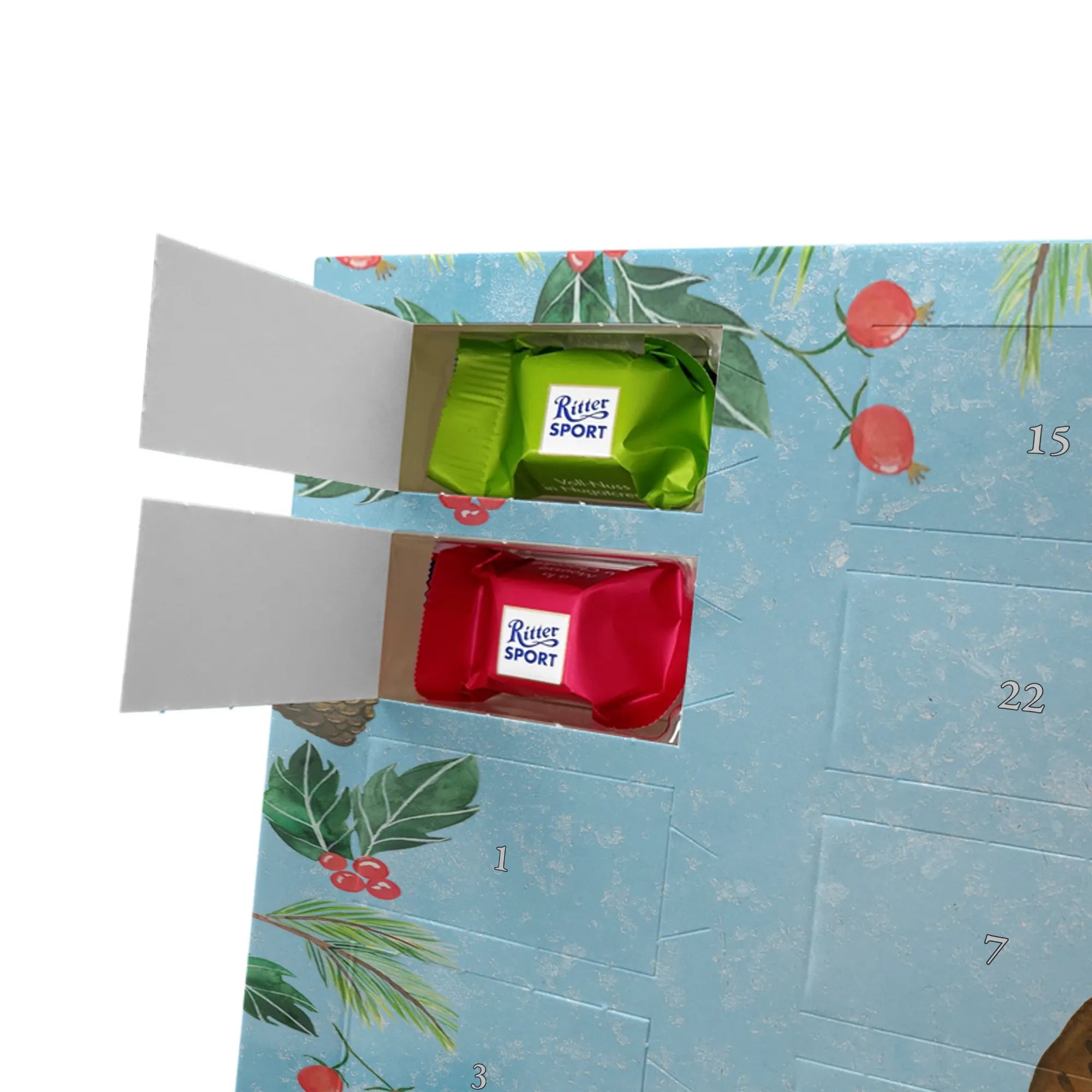🐼 24 Türchen gefüllt mit Ritter Sport Schokowürfeln – perfekte Adventsüberraschungen.