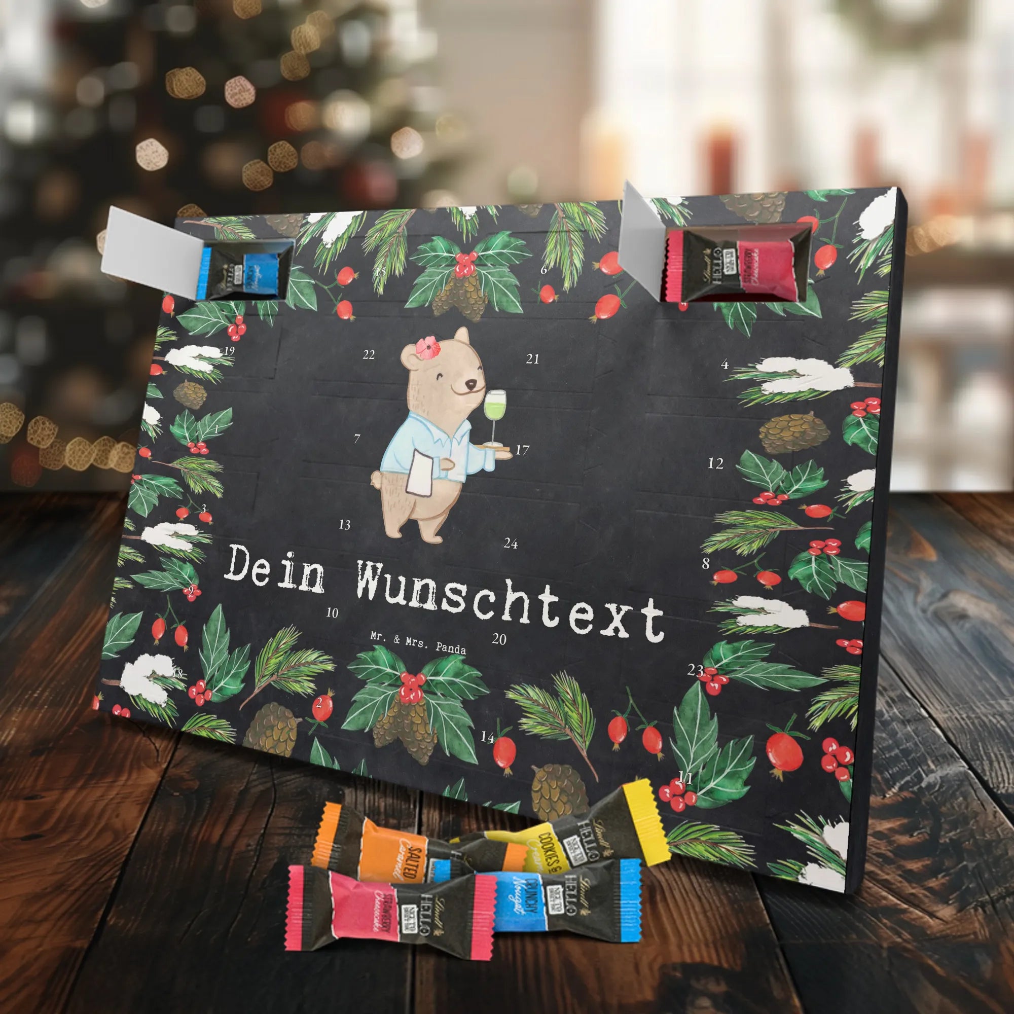 🐼 Schoko Adventskalender personalisiert mit Wunschtext, seidenmatt, gefüllt mit Lindt Hello.
