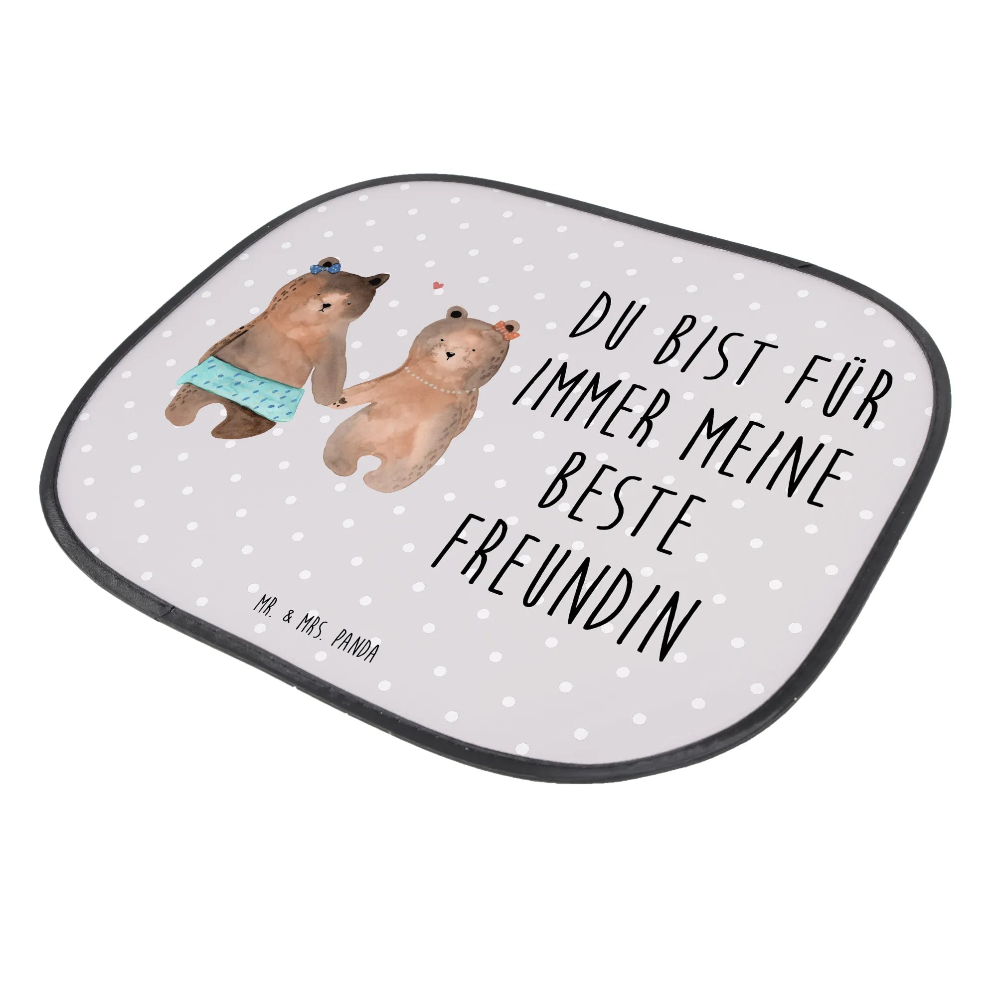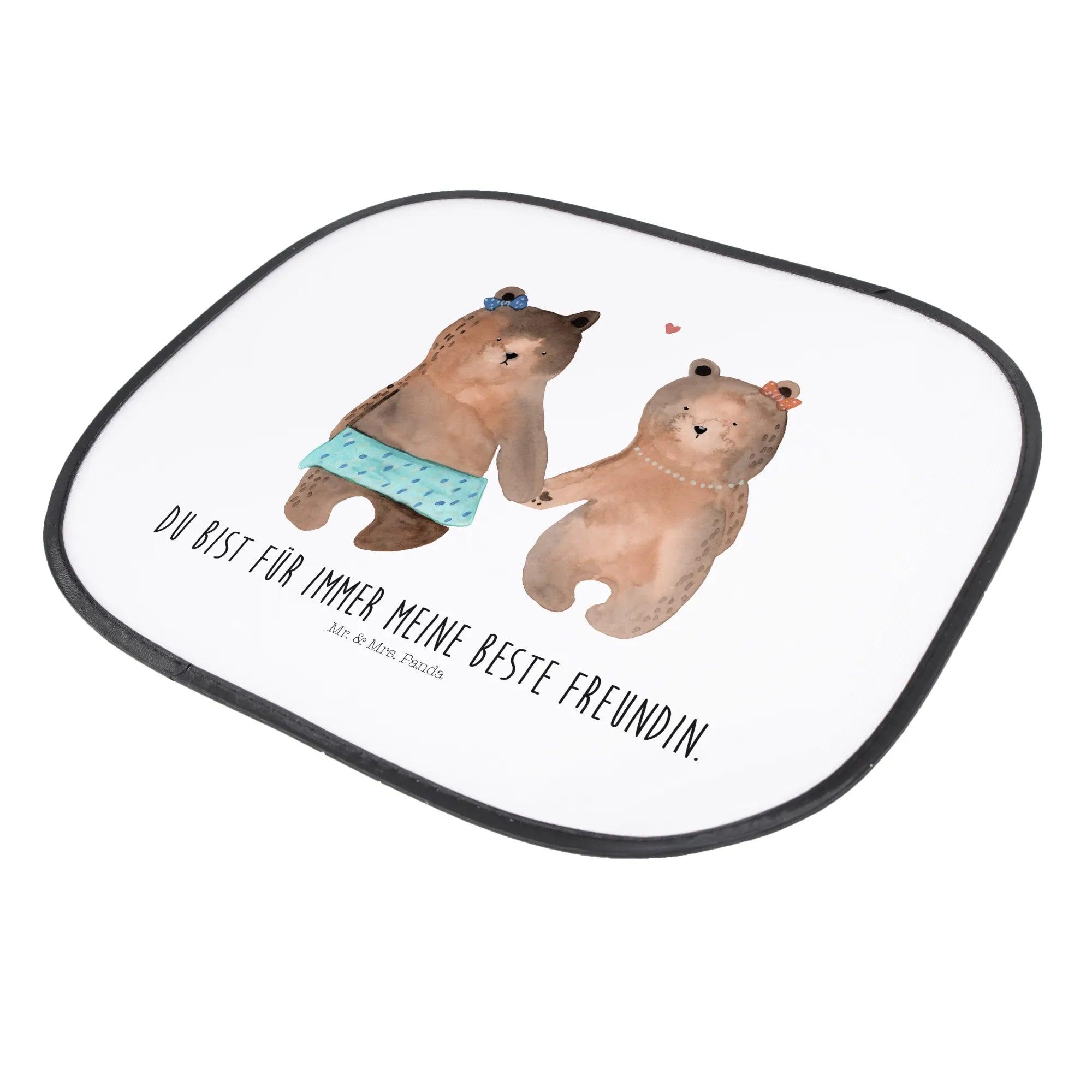Der Auto Sonnenschutz Bär Freundin von Mr. & Mrs. Panda ist das perfekte Geschenk für alle, die ihre Kleinen im Auto vor direkter Sonneneinstrahlung schützen möchten. Mit seinem liebevollen Motiv zwei süß geschnitzter Bärenmädchen, die sich an den Händen halten, ist dieser Sonnenschutz nicht nur praktisch, sondern auch eine wunderbare Möglichkeit, deine Wertschätzung für Freunde und Familie zu zeigen.