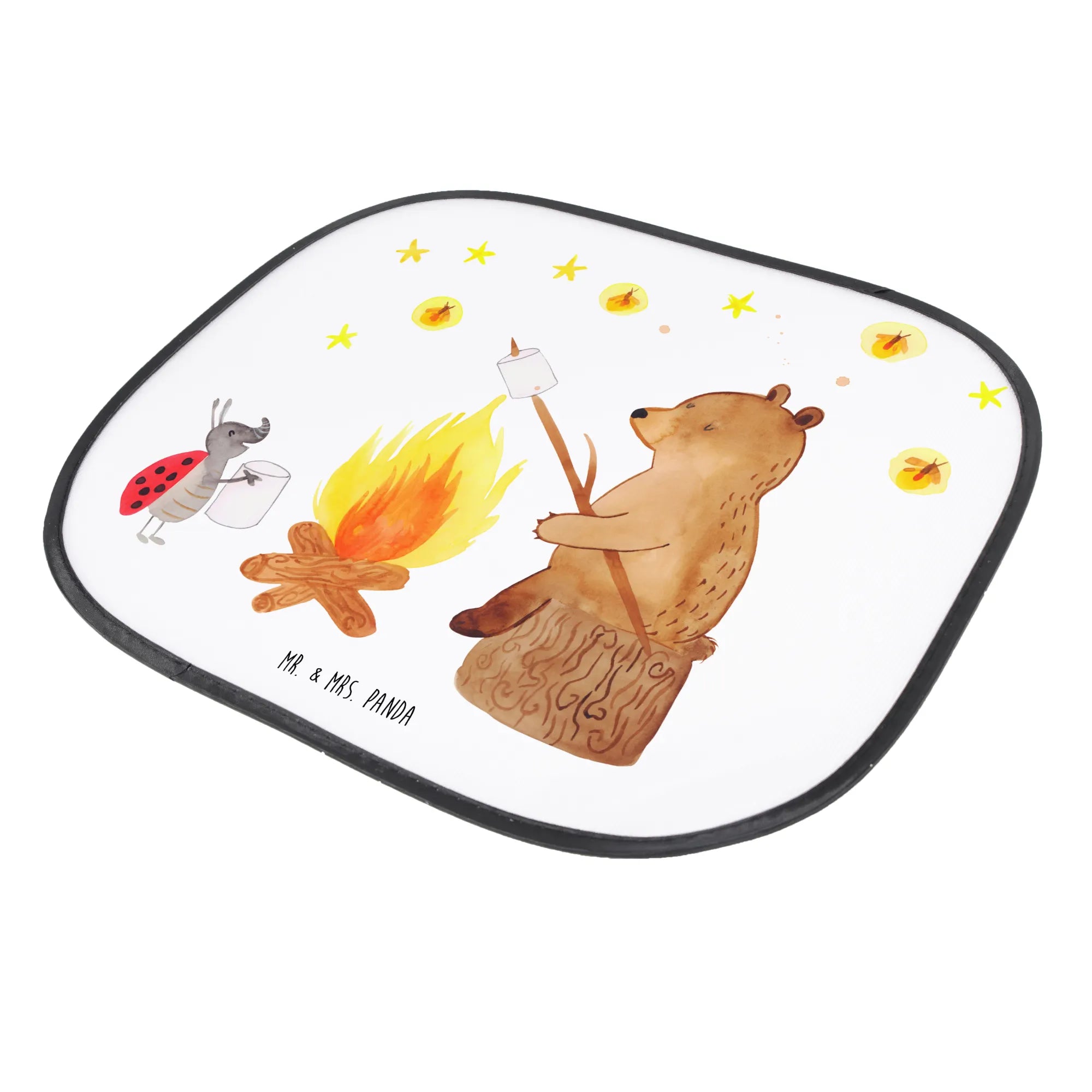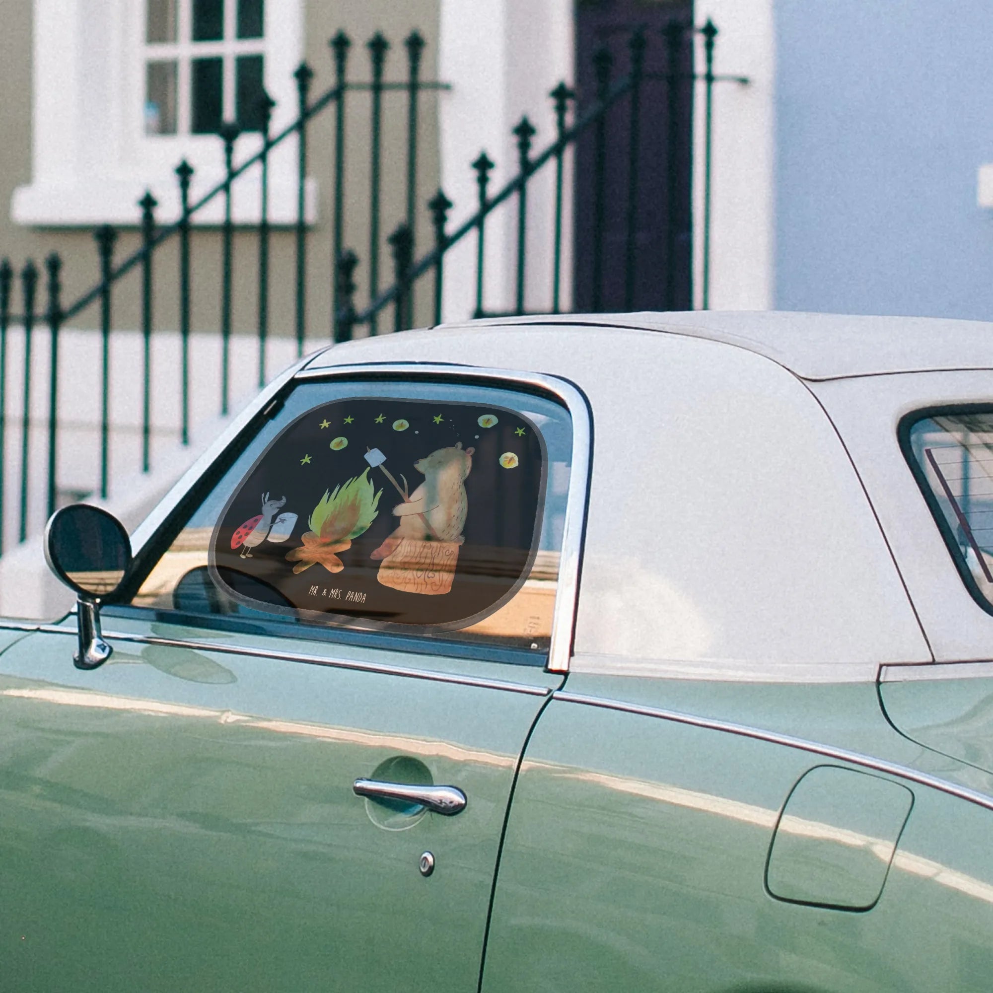 Sonnenschutz Auto Bär & Marienkäfer Lagerfeuer - mit Spruch - Weiß