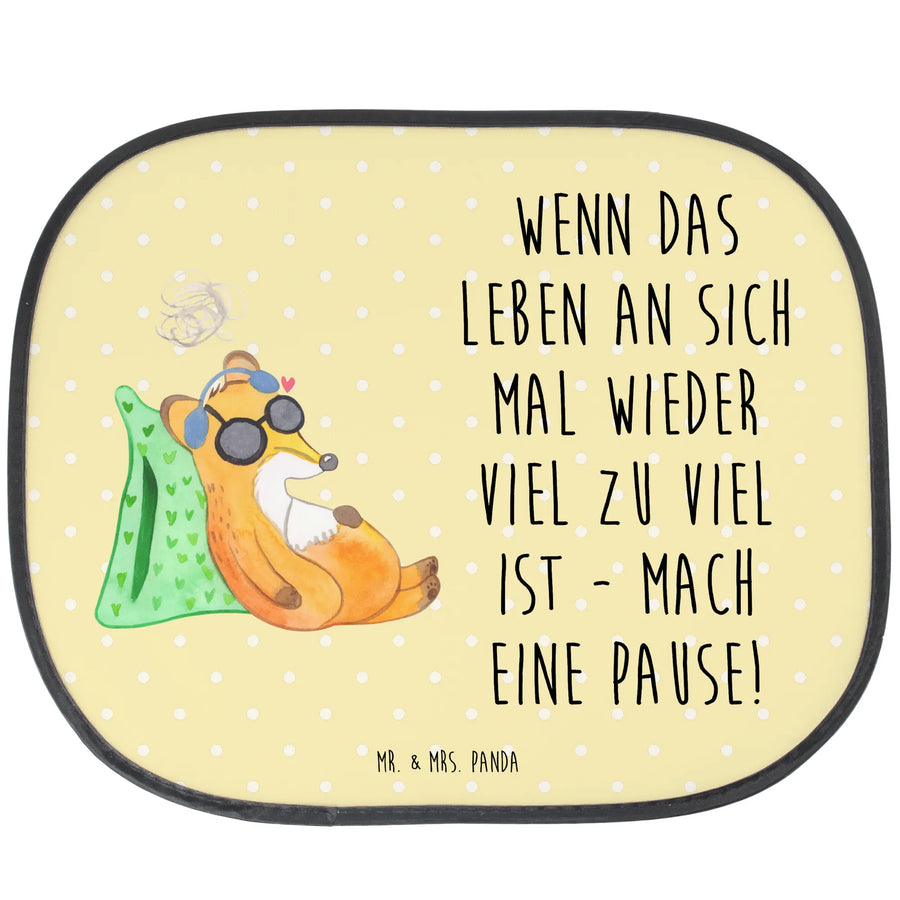 Unser Sonnenschutz Auto von Mr. & Mrs. Panda zeigt den Fuchs Lasse Baguette aus der Kollektion „Tiere mit Superkräften“. Das Motiv trägt die Botschaft: Wenn das Leben an sich mal wieder viel zu viel ist - mach eine Pause! – eine respektvolle und klare Erinnerung für alle, die ihren Alltag mit Fatigue, PEM oder Neurodiversität gestalten.