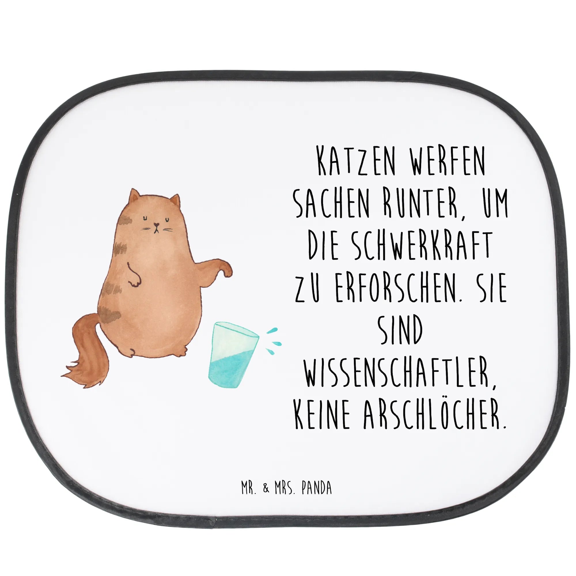 Sonnenschutz Auto Seitenscheibe Katze Wasserglas - mit Spruch - Weiß