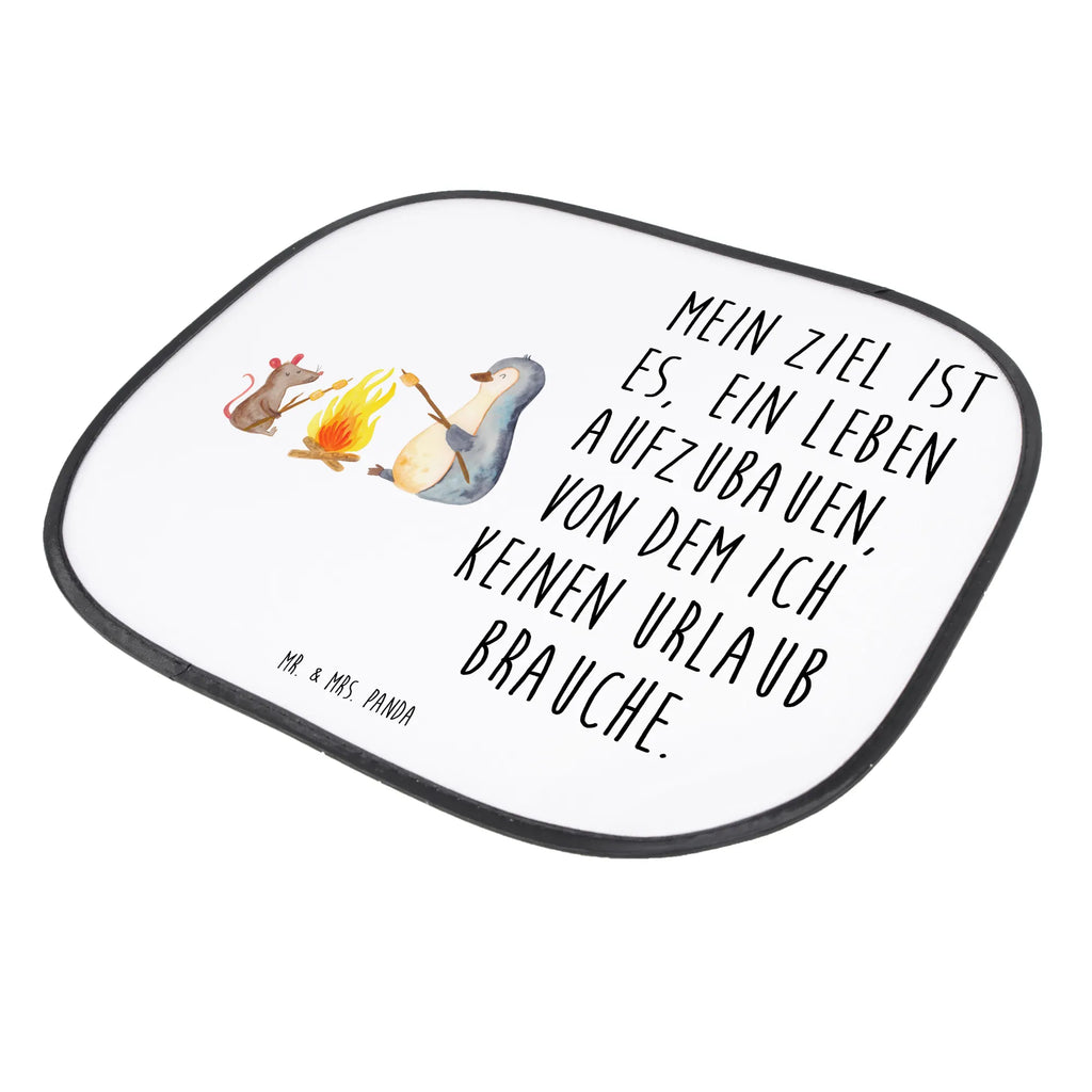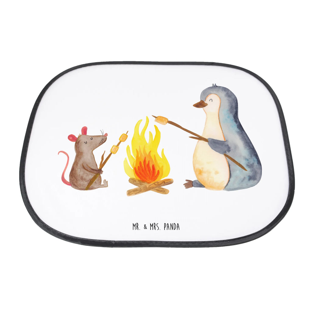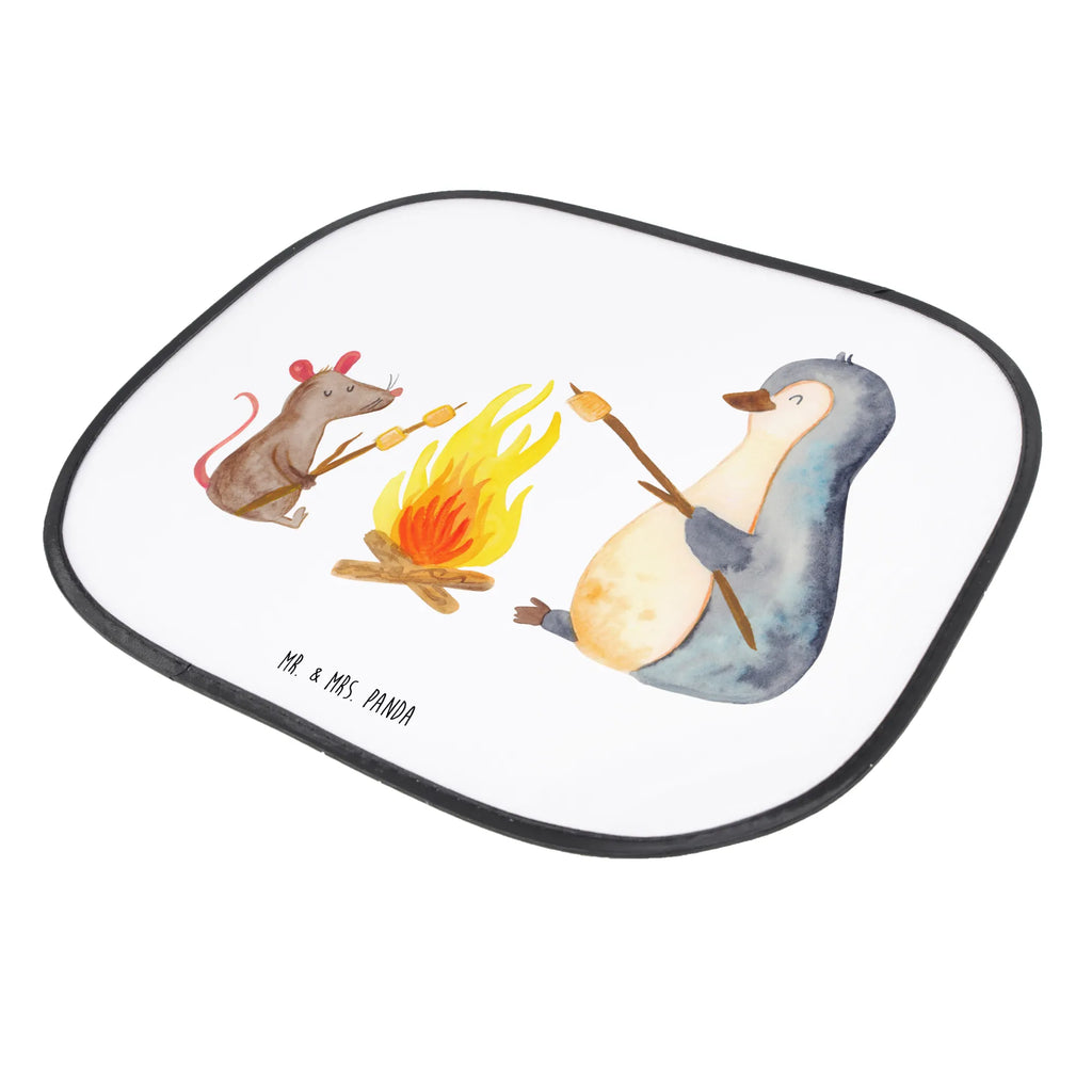 Autosonnenschutz Pinguin Lagerfeuer - mit Spruch - Weiß