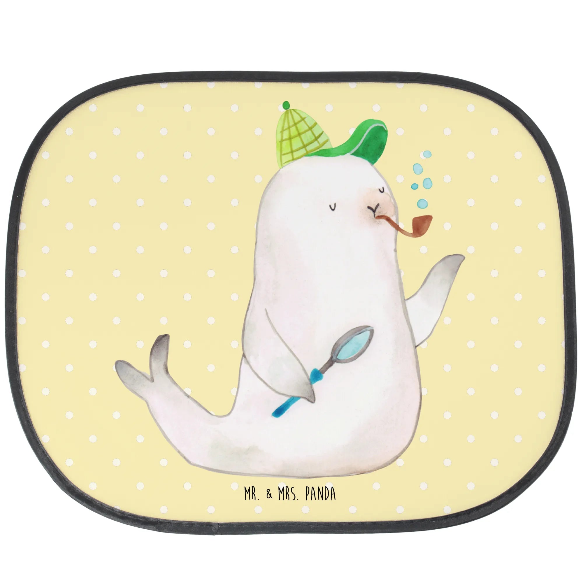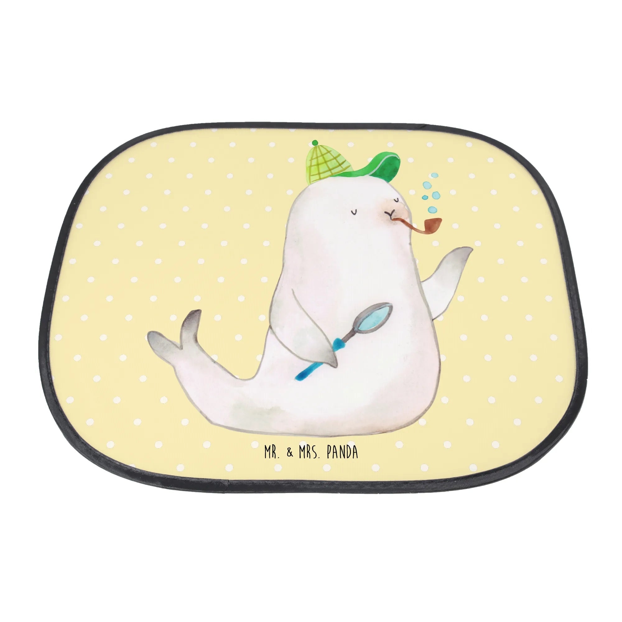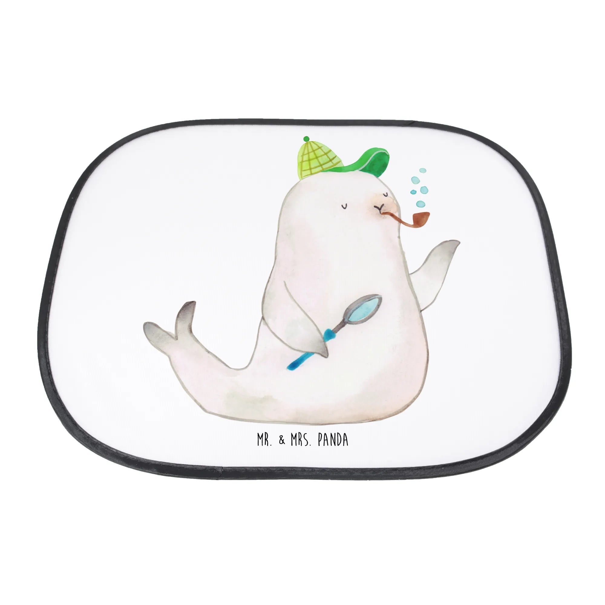 Ein wunderschöner Sonnenschutz fürs Auto von Mr. & Mrs. Panda: Die Robbe Sherlock aus der Small World-Kollektion kombiniert liebevolles Design mit praktischem Nutzen. Dieser seitliche Sonnenschutz ist ideal als Sonnenschutz Auto und Hitzeschutz Auto und schützt vor greller Sonne und unangenehmer Hitzeentwicklung.