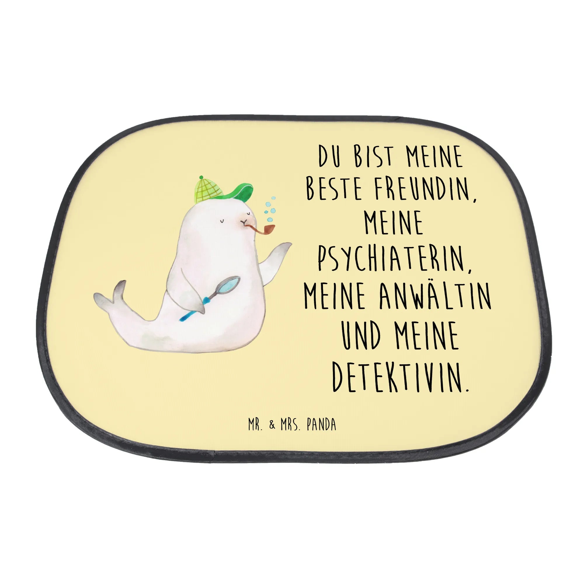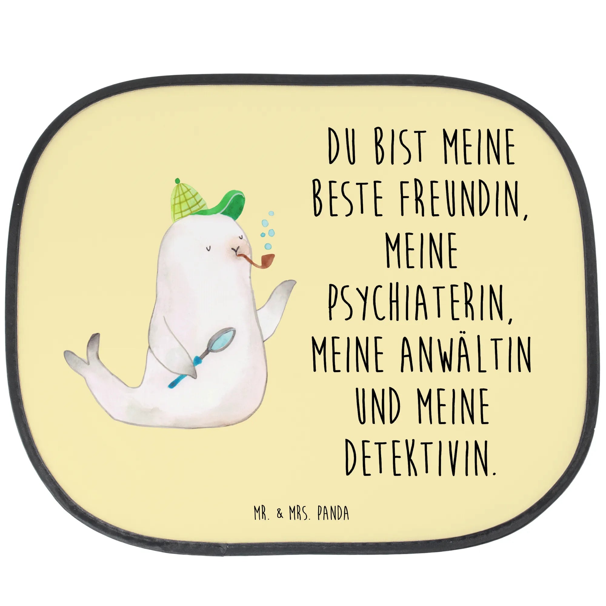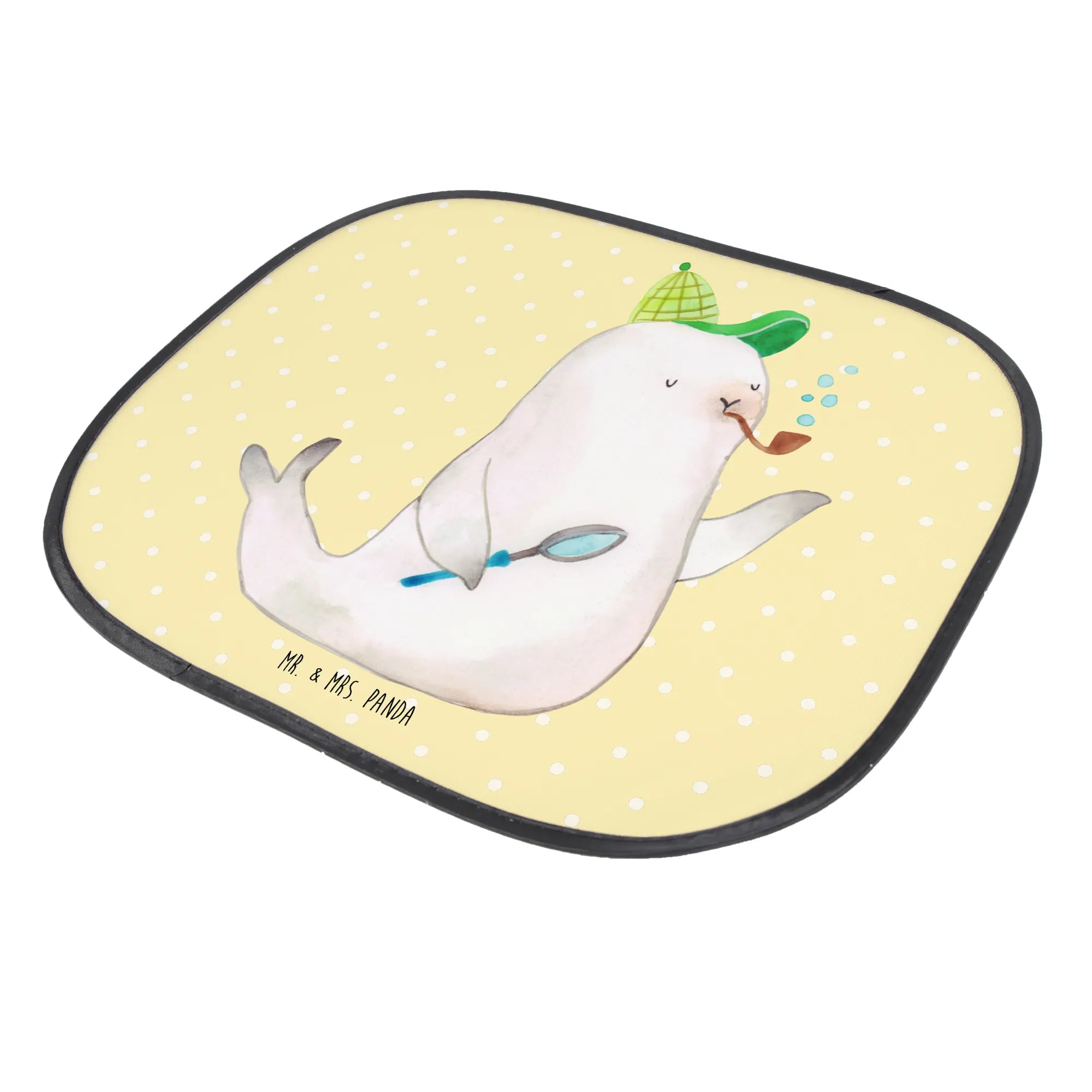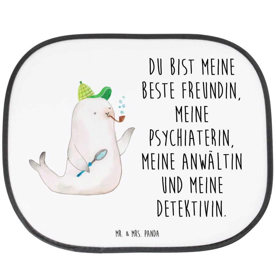 Ein wunderschöner Sonnenschutz fürs Auto von Mr. & Mrs. Panda: Die Robbe Sherlock aus der Small World-Kollektion kombiniert liebevolles Design mit praktischem Nutzen. Dieser seitliche Sonnenschutz ist ideal als Sonnenschutz Auto und Hitzeschutz Auto und schützt vor greller Sonne und unangenehmer Hitzeentwicklung.
