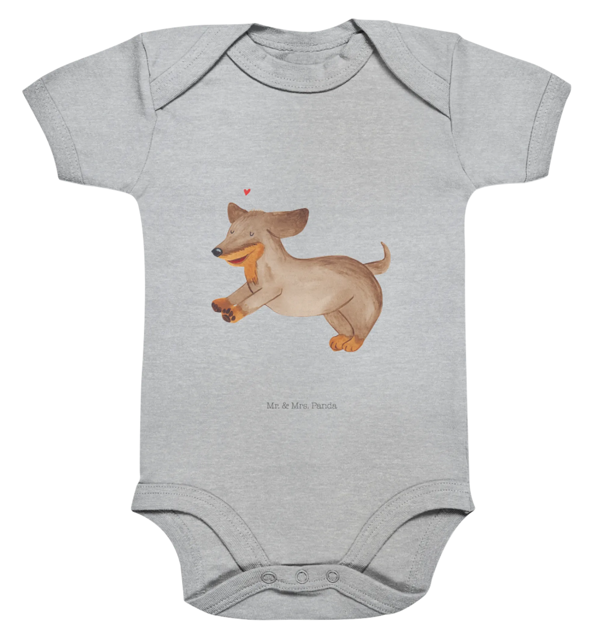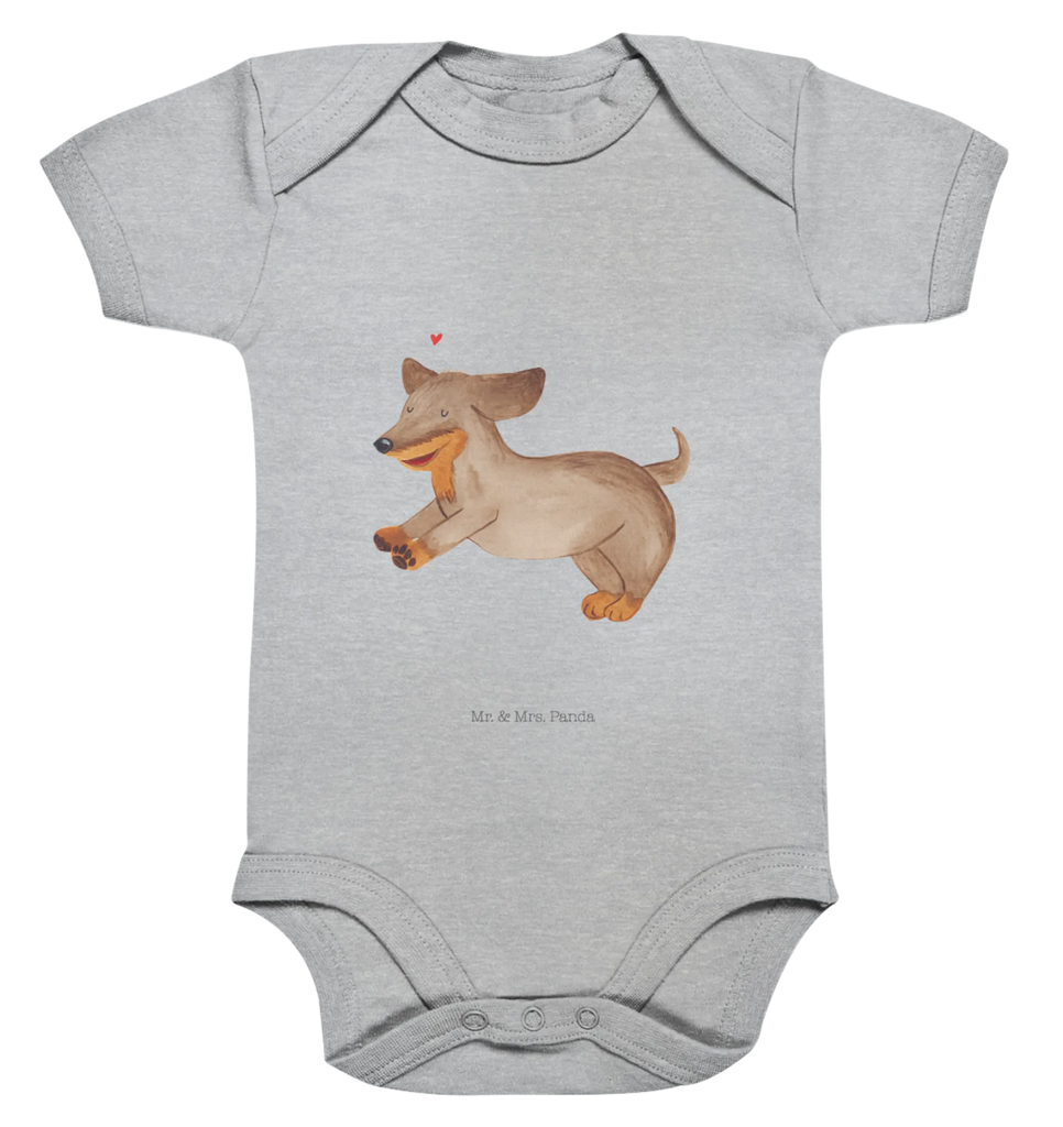 Das niedliche Motiv zeigt einen fröhlichen Dackel, der durch die Gegend springt – ideal für alle, die einen besonderen Platz in ihrem Herzen für diese charmante Hunderasse haben. Der Body im Farbton Heather Grey passt perfekt zu jeder Erstausstattung und ist damit sowohl für Jungen als auch für Mädchen geeignet. Die sanften Farben und das liebevolle Design machen ihn zum idealen Begleiter für Tage voller Spiel, Spaß und Freude.