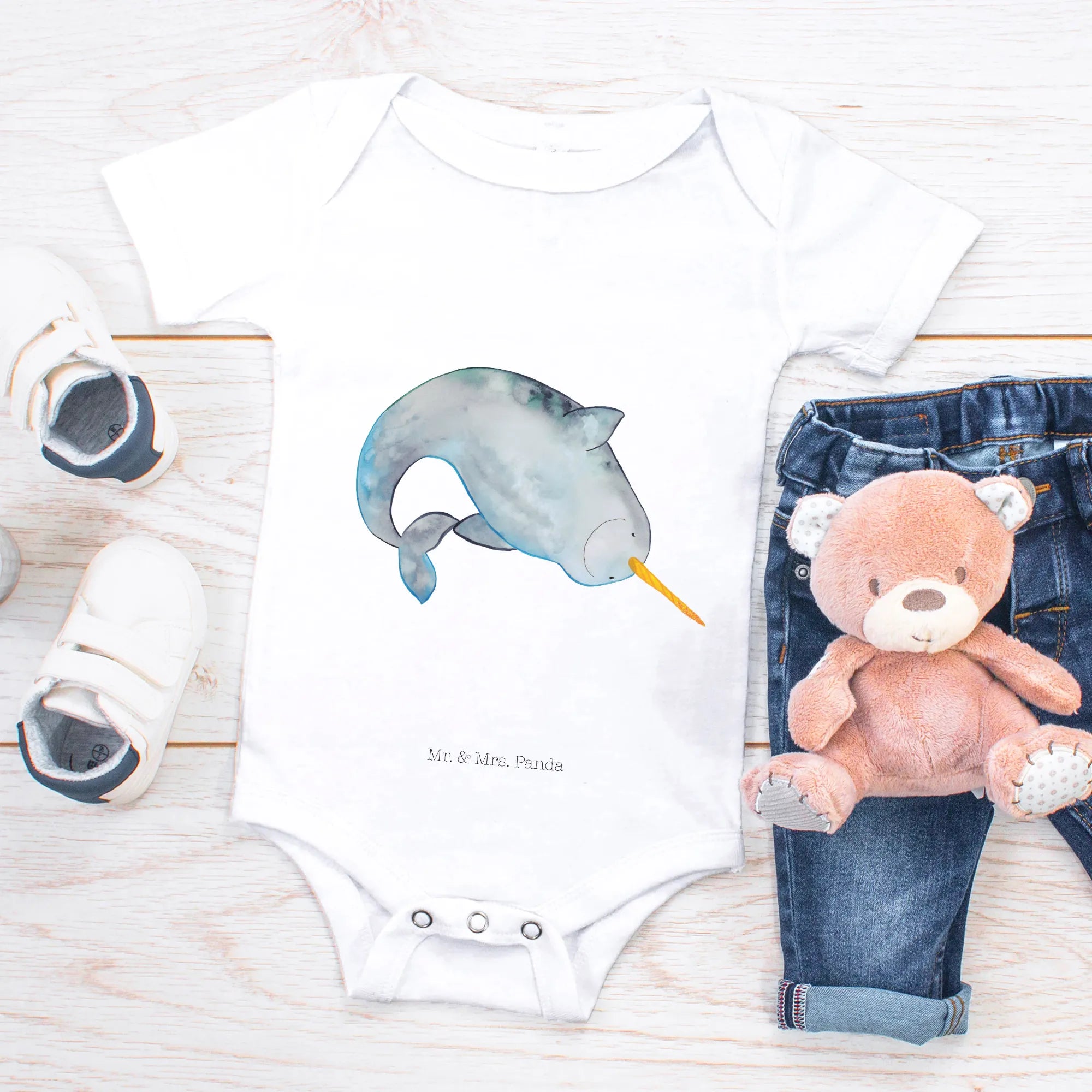 Der Organic Baby Body mit dem niedlichen Narwal-Motiv aus der Meerestiere Kollektion von Mr. & Mrs. Panda ist das perfekte Geschenk für frischgebackene Eltern und ihre kleinen Schatzis.